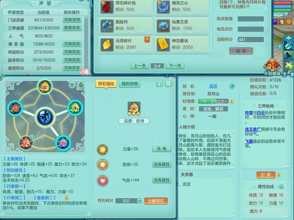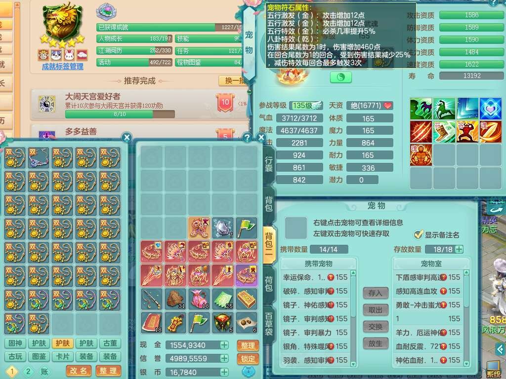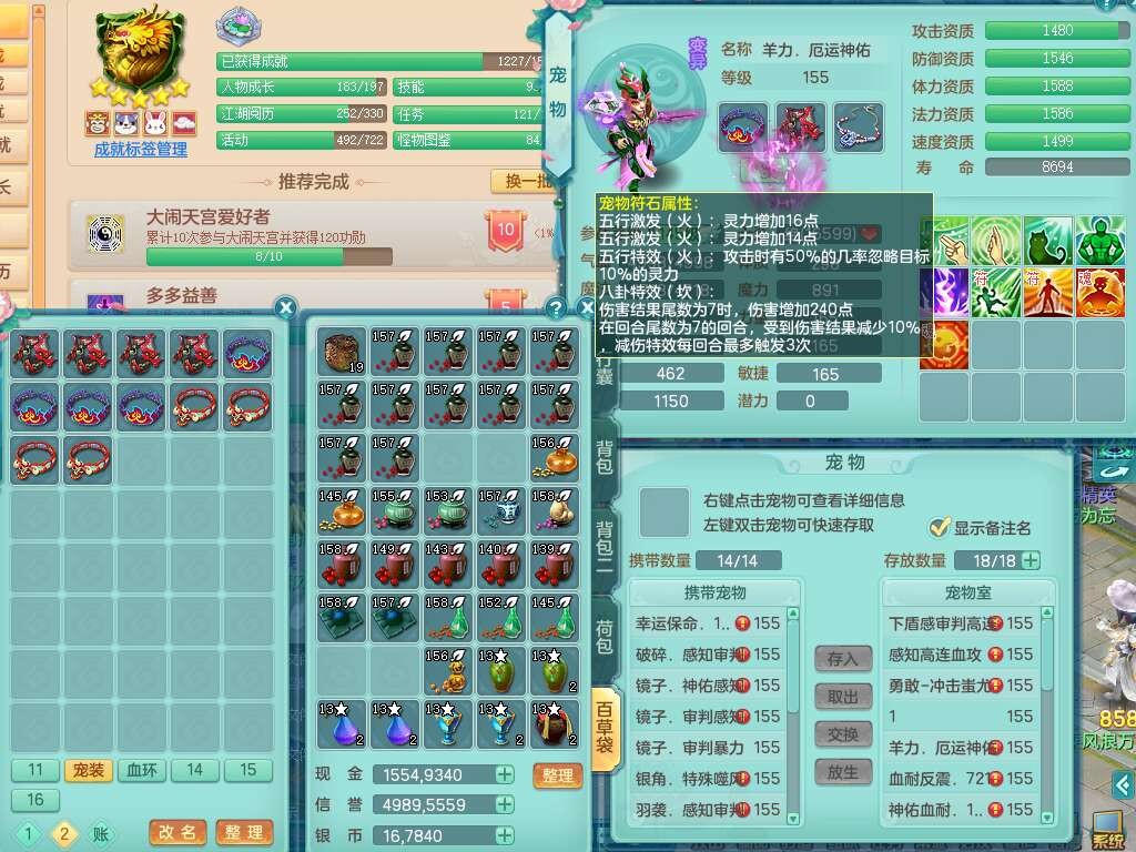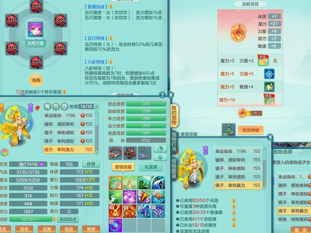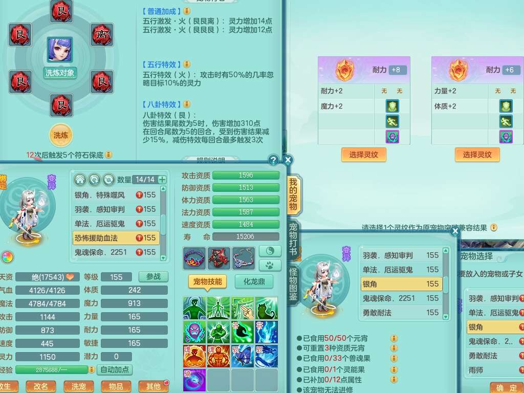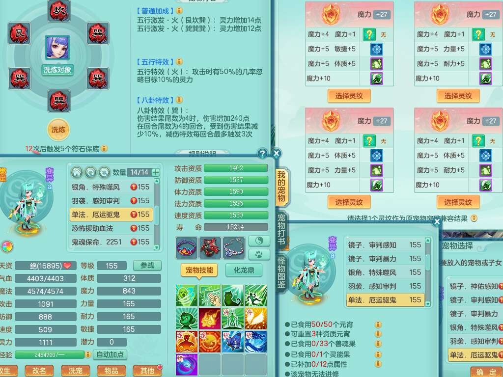 J22064生日快乐159男天魔里,精灵舞,1龙没内,1内胆神,6觉醒,1宠皮,2特殊(噬风斩,羽袭),3只六技能镜花灵,易成长晶清单加51头,易成长群安神衣服,愤怒四海单加57腰带,迅捷单加45鞋子,五特,有263坚毅单加55项链,4.5基础鼎+70攻,5个纯六字,3个五字,10只满果子,成就在榜,40个神兽内胆碎片。