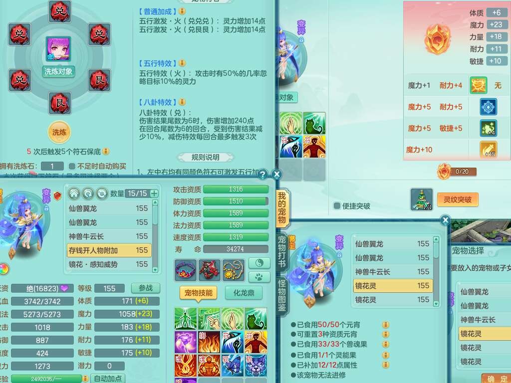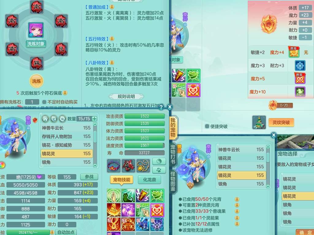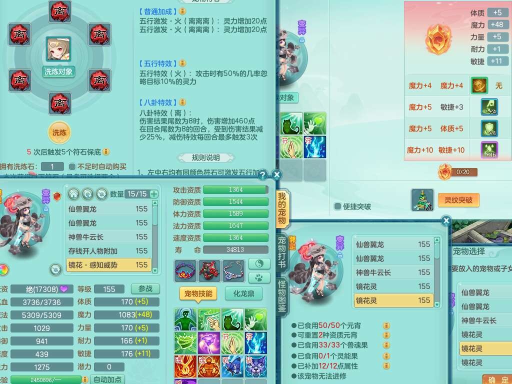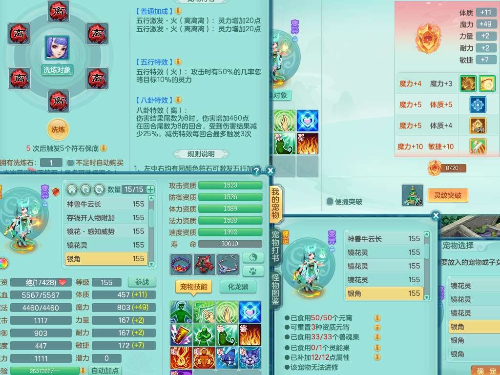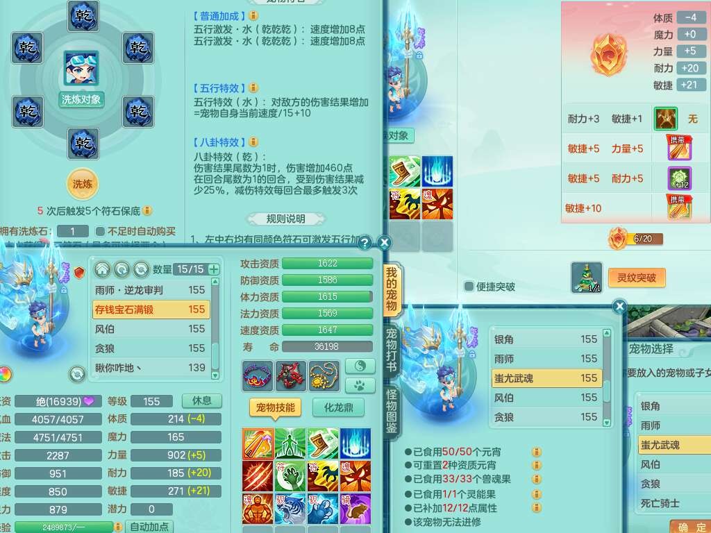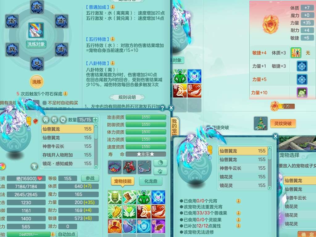 S22060少年游159男五庄,精灵舞,2龙(1龙没内),1内胆神,【12觉醒,已潜龙】,8宠皮,5特殊(坠天,勇猛,双星闪,月光,逆龙),3只六技能镜花灵,愤怒单加55腰带,五特,有932易成长单加54武器, 易成长单加57头,5.5基础鼎+70攻+280血,13个永久格字,7个纯六字,16个满果子,仓库还有30个果子,宠排在榜,修炼在榜,2只坐骑,30个神兽内丹碎片,178天月卡。