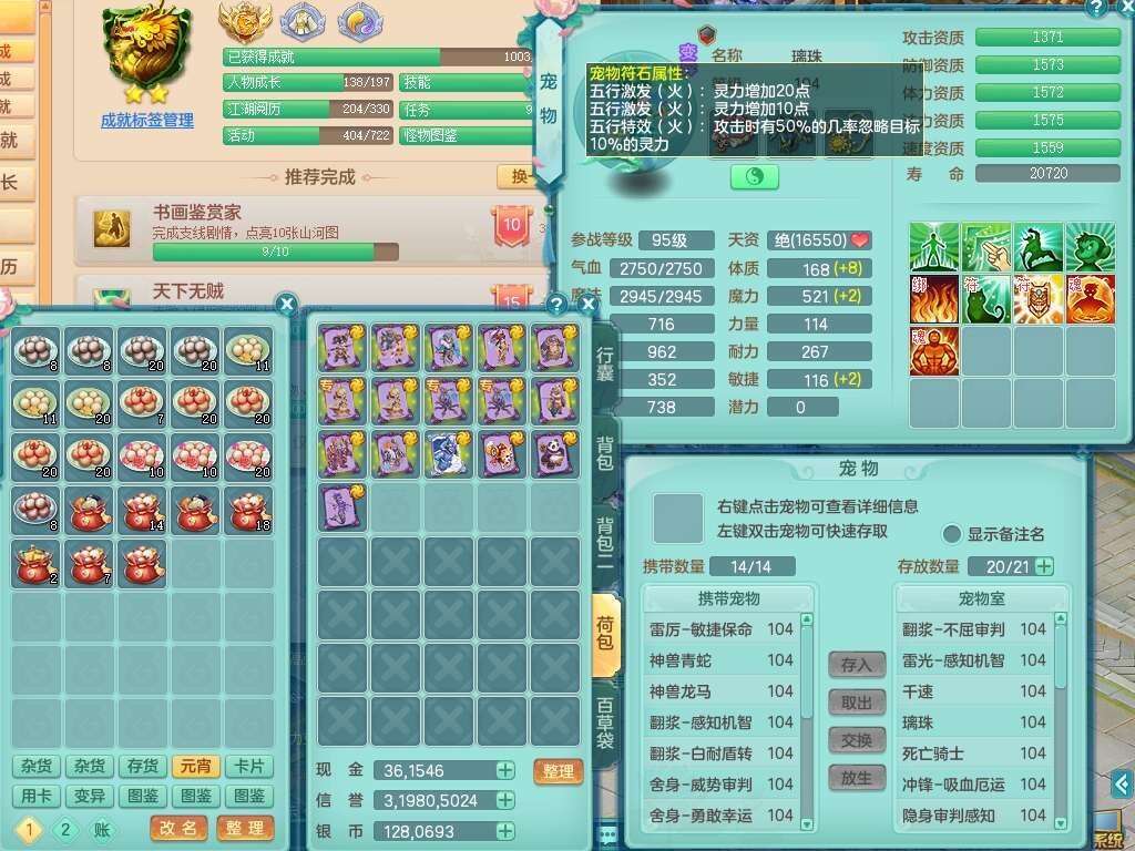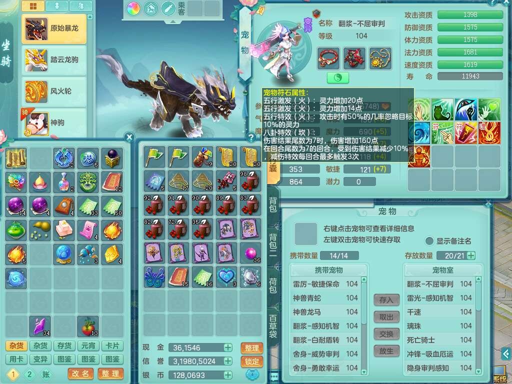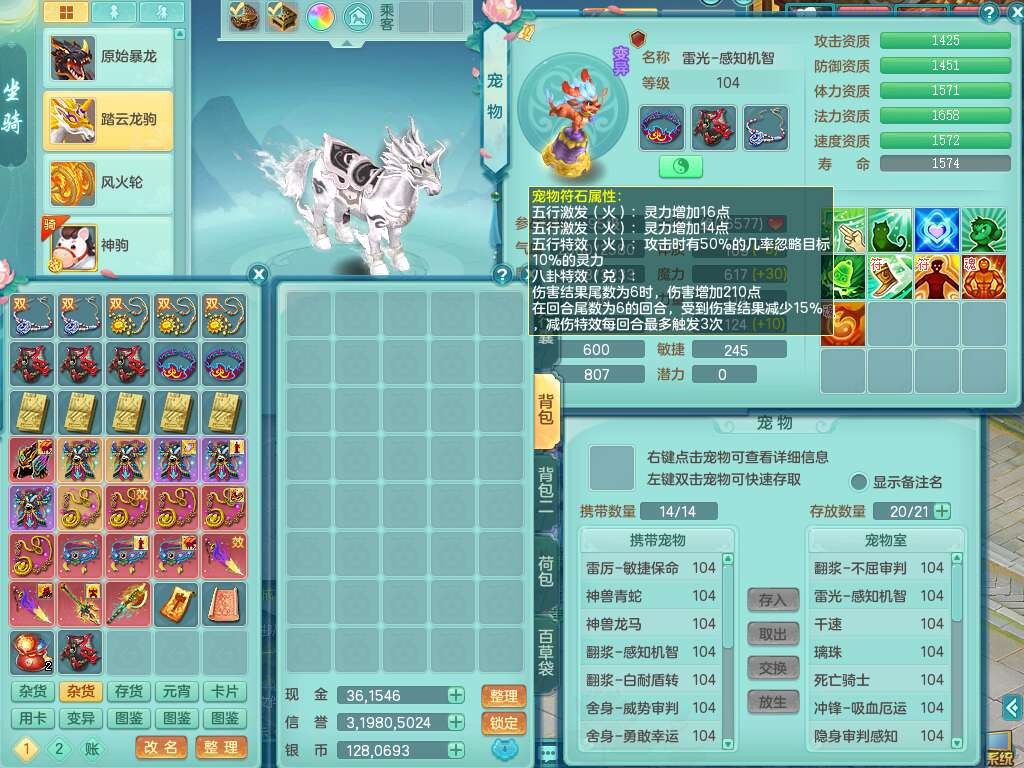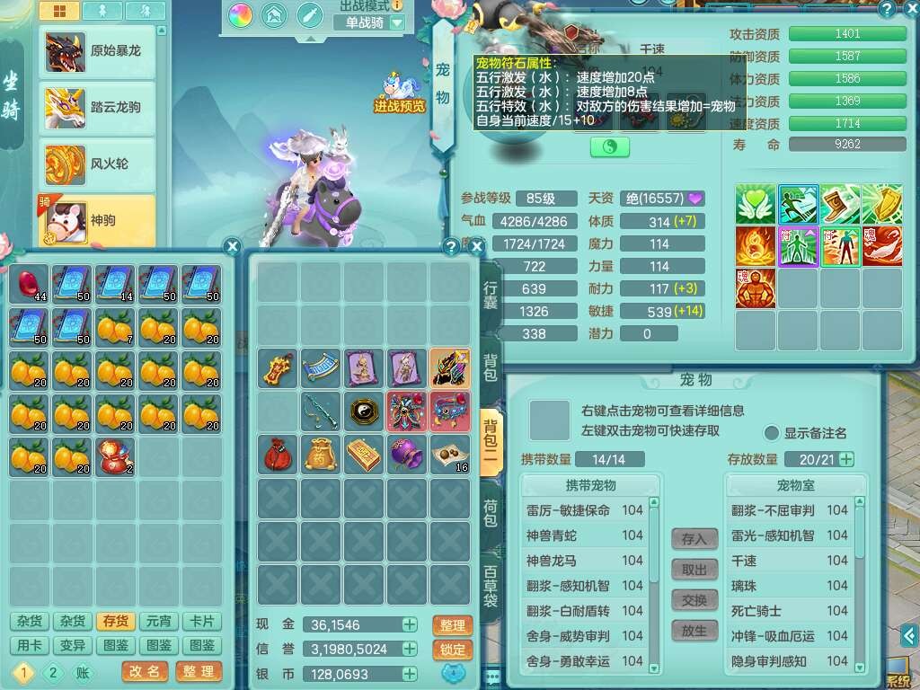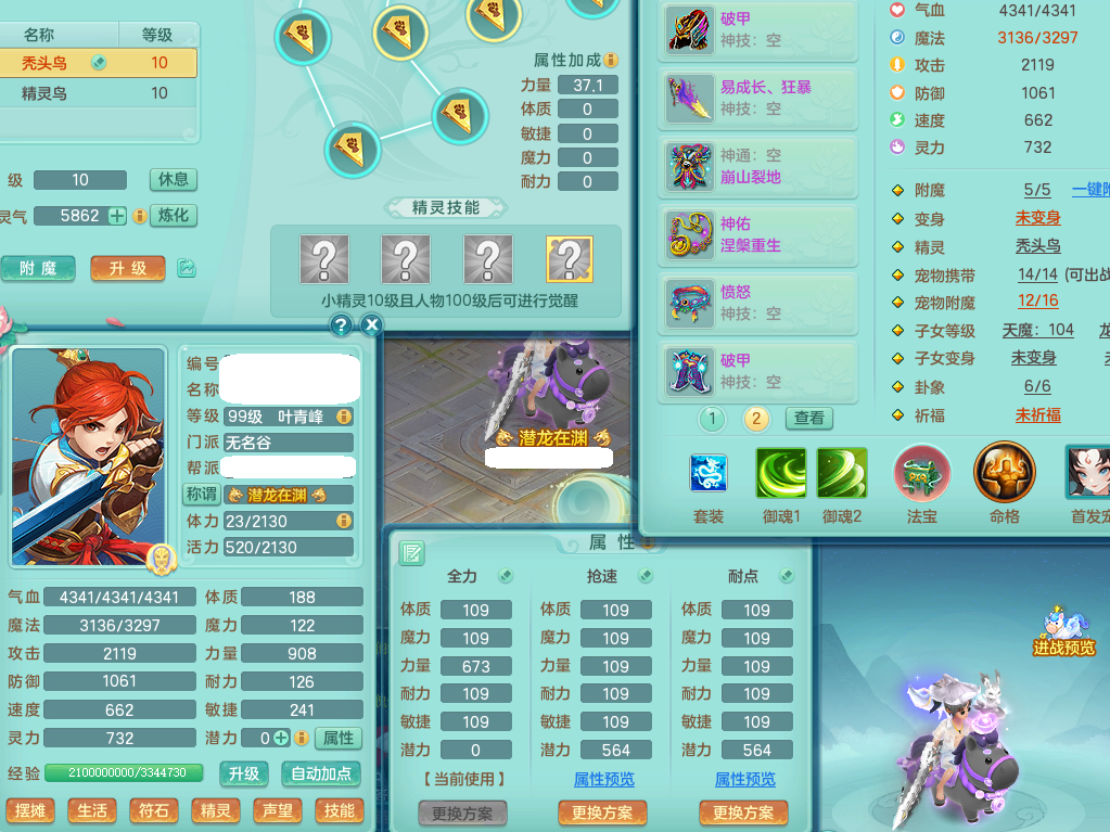 P22061风华绝代99男无名谷,1龙没内,1内丹神,【11觉醒,已潜龙】,3宠皮,双破甲,破甲单加31头,破甲单加鞋子,541狂暴易成长武器,崩山单加衣服,神佑慈航项链,愤怒腰带,3.0基础鼎+42攻+168血,9个纯六字,4个五字,22只满果子,宠排在榜,2只双人坐骑,暴龙洪荒+神驹马上发财+火焰之力武器+西瓜冰武器,34个神兽内丹碎片, 146天月卡。带99奶粉。