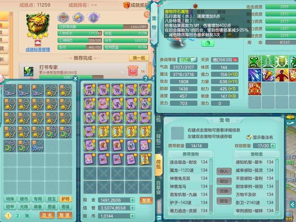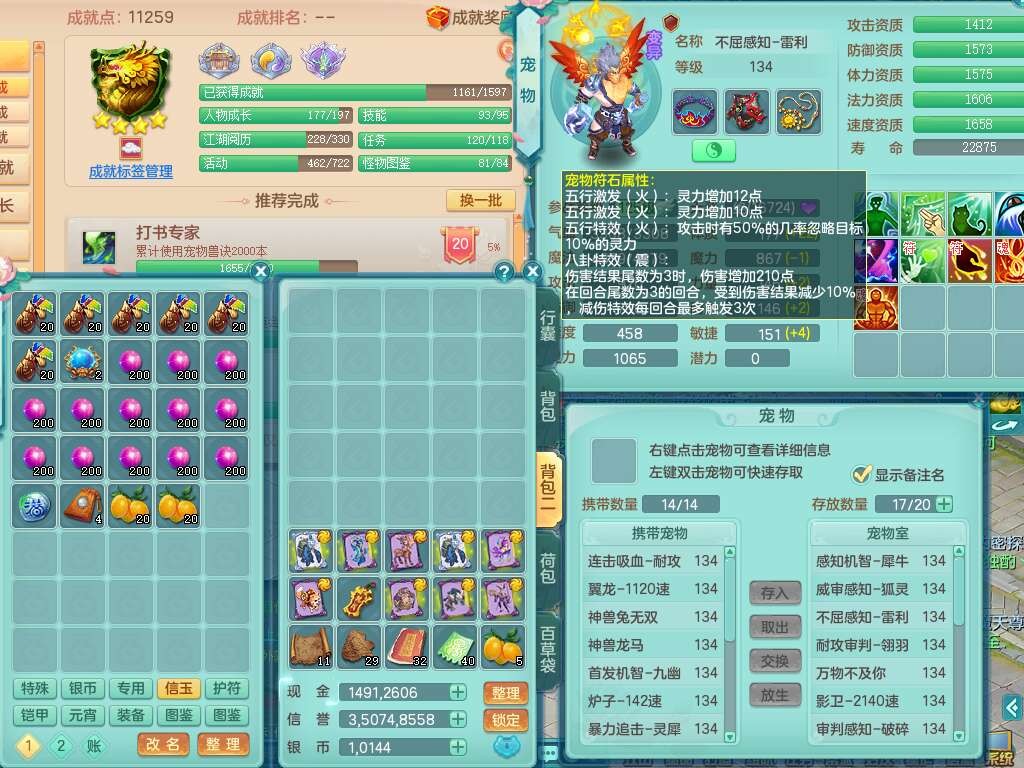K22058今年勇129男龙宫,精灵舞,2龙(1龙无内),1内胆神,8只觉醒,3宠皮,8位靓号不含4,星辰之拥,714法暴易成长单加45武器,法缭心神合一单加衣服,209易成长心神合一链子,五雷单加51腰带,愤怒易腰带腰带,可玩愤怒5特,有回春单加44武器,破甲单加44鞋子,4.0基础鼎,15只满果子,仓库39神兽内丹碎片,双人白马,月卡还有128天。带2个150奶粉。