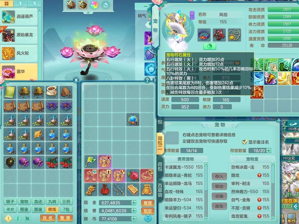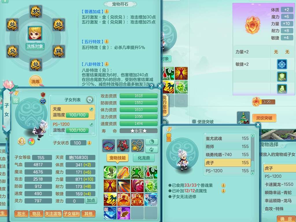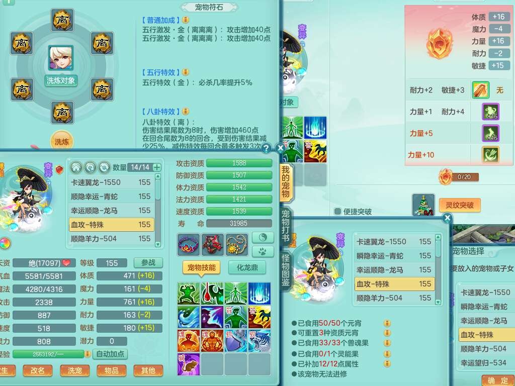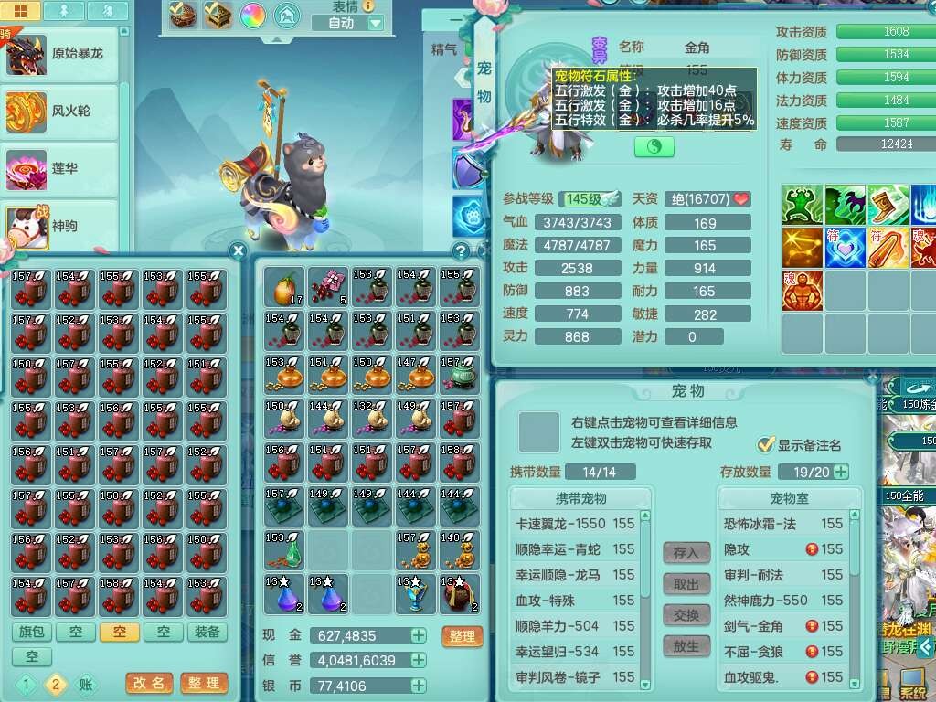 S22055笑傲江湖159男灵月山,精灵舞+怒,1内丹龙+68仙兽灵,2内胆神(1蛇1马),4位靓号不含4,2宠皮,5只觉醒,6特殊(上善,夺命,风卷,雷光,羽袭,锤子),1只六技能镜花灵,愤怒五特,5.5基础鼎+70攻,1个纯六字,16只满果子,经验在榜,成就在榜,永久称谓,6个坐骑,暴龙泰坦+神驹马到成功+火焰之力+西瓜冰,带196天月卡。