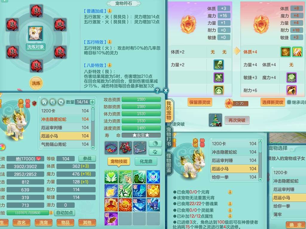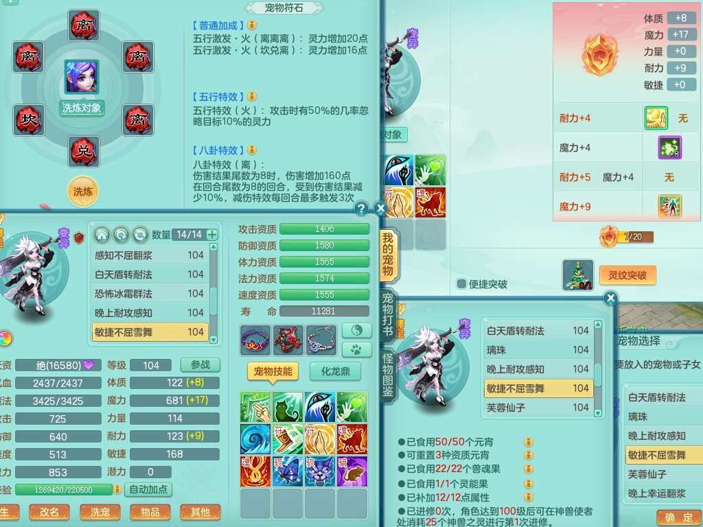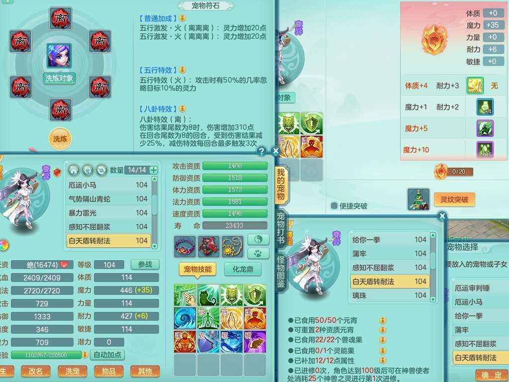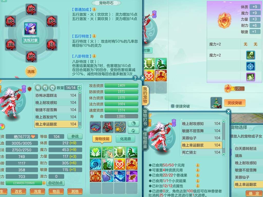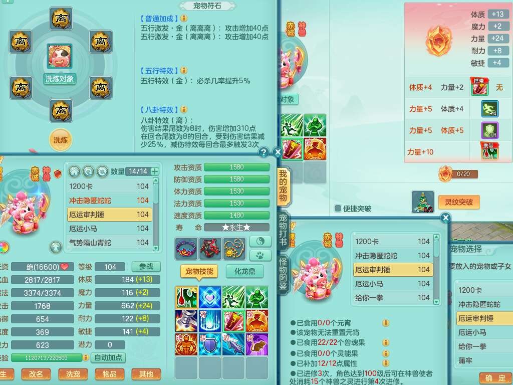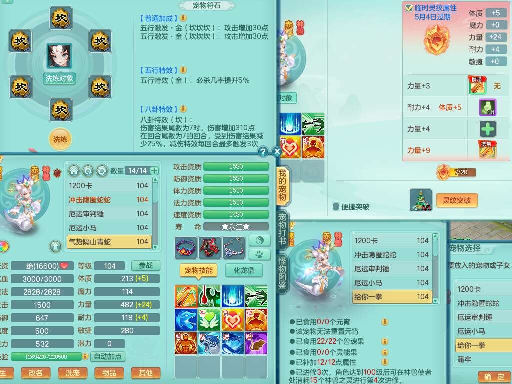 A22056清风明月99女灵月山,1龙4内胆神,1破镜,【物理已潜龙,辅助差4个气血可潜龙】,3宠皮,愤怒四海单加32腰带,6特,易成长笑里单加鞋子,有物理装备,551易成长单加武器,崩山单加30衣服,神佑易成长链子,易成长破血单加鞋子,3.0基础鼎,7个纯六字,2个5字,25只满果子,仓库61神兽内丹碎片,宠排在榜,3只染色坐骑,带4107金币,月卡还有30天。