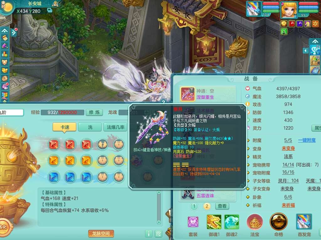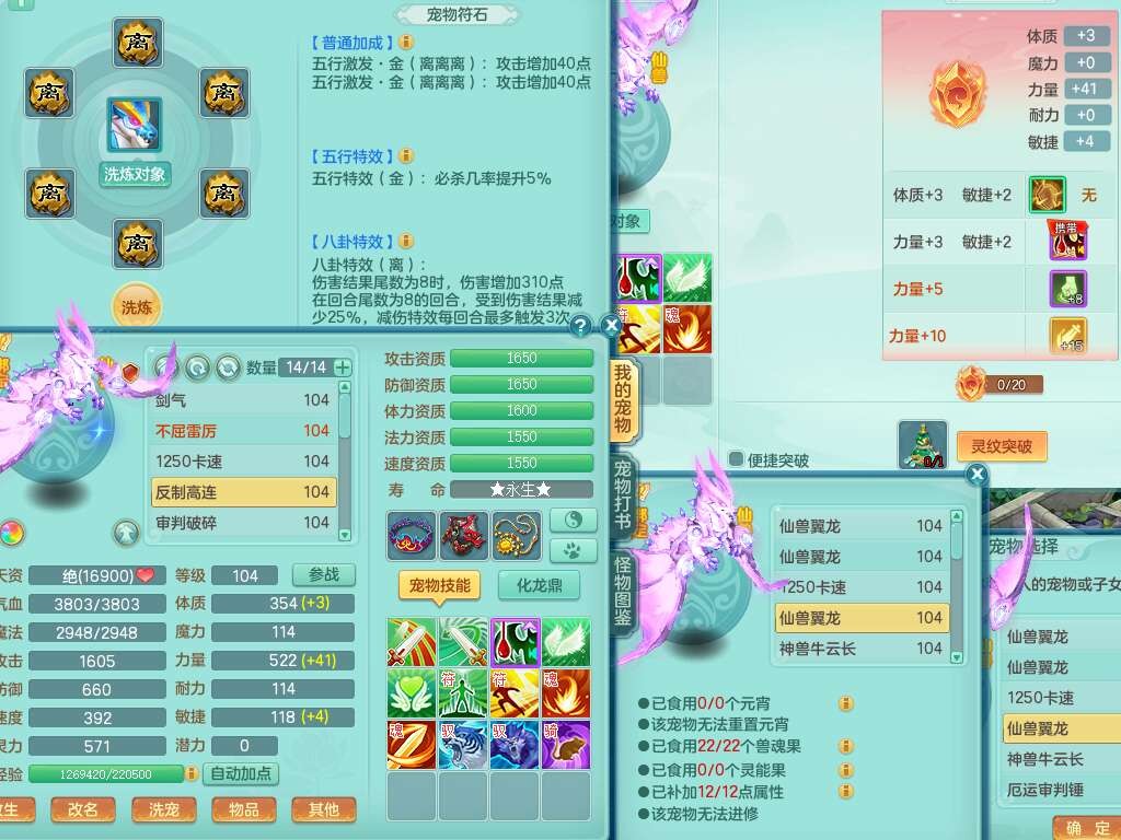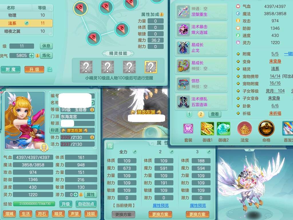 A22059江山如画99女龙宫,4龙2内胆神,2破镜,【10只觉醒,已潜龙】,8位靓号不含4,3宠皮,法爆烽火单加34武器,愤怒单加34腰带,法缭五雷鞋子,有套物理装备,555易成长移魂单加35武器,神佑单加34项链,破甲单加33鞋子,5.0法爆,2.0基础鼎+40攻+168血,7个纯六字,2个五字,17只满果子,宠排在榜,3个双人坐骑。