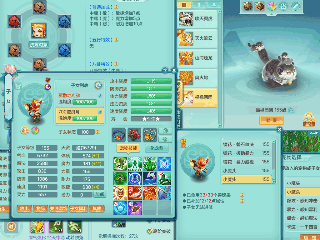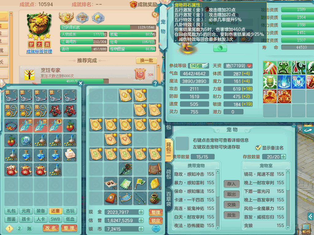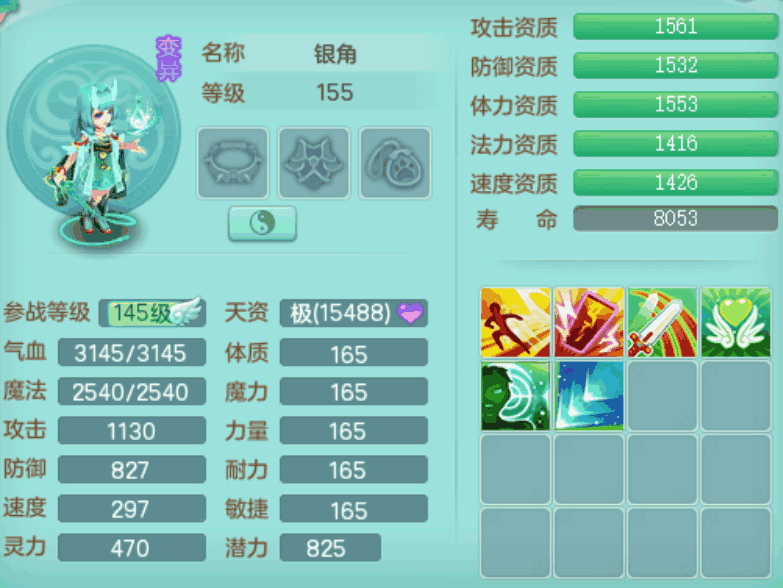 J22057风驰电掣159男无量,精灵舞,7龙1龙皮,4内胆神,2破镜,【11只觉醒,已潜龙】,4位靓号ABCB,2宠皮,5只六技能镜花灵,1特殊(雷光),愤怒五特,5.5基础鼎+70攻,280血,15个格子,12个纯六字,4个五字,综合28只满果子,宠排在榜,4只坐骑,永久称谓,现在带800swb。