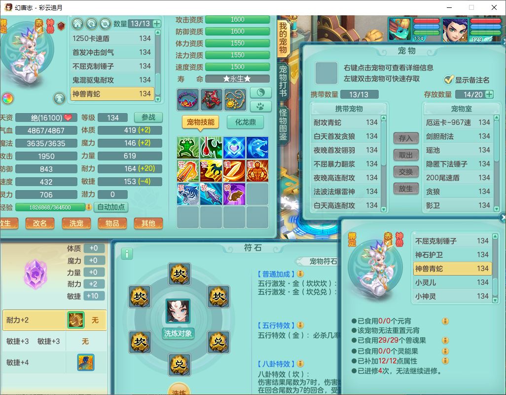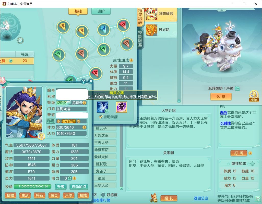 71457YB彩云追月129男龙宫【潜龙号】精灵舞,2青蛇(1无内)3贪狼1神石,9觉醒10六字1五字8四字21只满果子,全单加装备,法爆武器,196Y项链,五雷鞋子,法爆魔音武器,指挥破体腰带,鼎4.0+56+224,庭院159房屋160,永久外观、精灵皮肤,1双人坐骑