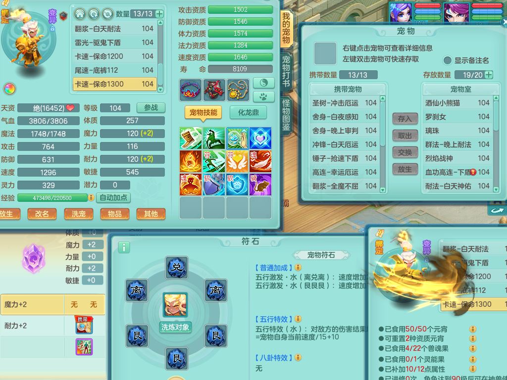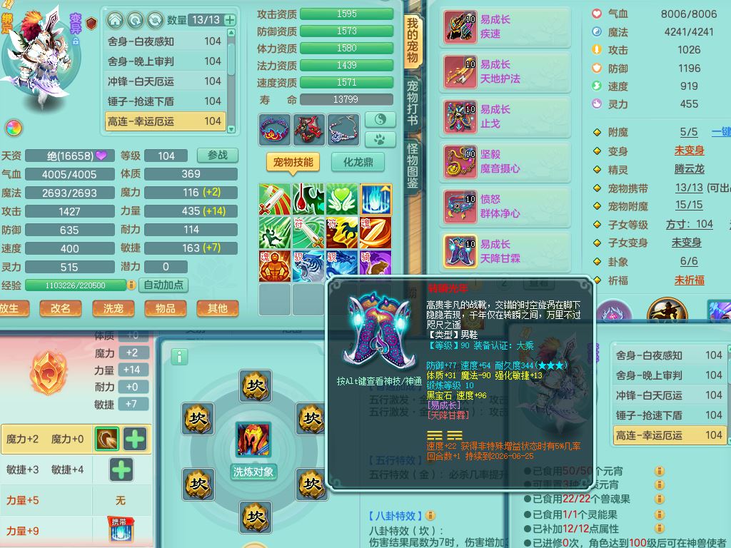 24254今年勇99男盘丝【准潜龙,只差1只宝宝,2条附加潜龙】敏耐精灵,1内丹神,综合16只满果子6觉醒7个纯6字,12红,愤怒6特,Y流云头,Y罗汉武器,Y止戈衣服,坚毅绝幻项链,愤怒晶清腰带,Y四海鞋,鼎2.5+42+168,3套符石,57天月卡,永久外观精灵皮肤,27仙兽灵,19内丹碎片,宠排在榜,2坐骑(1只双人)