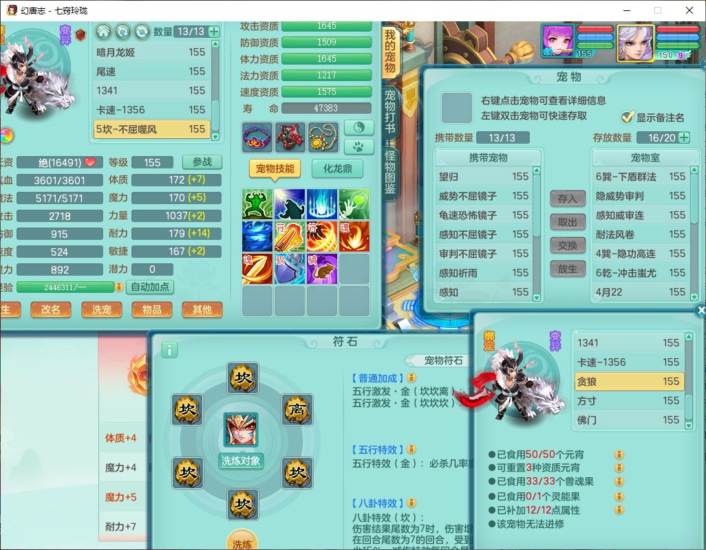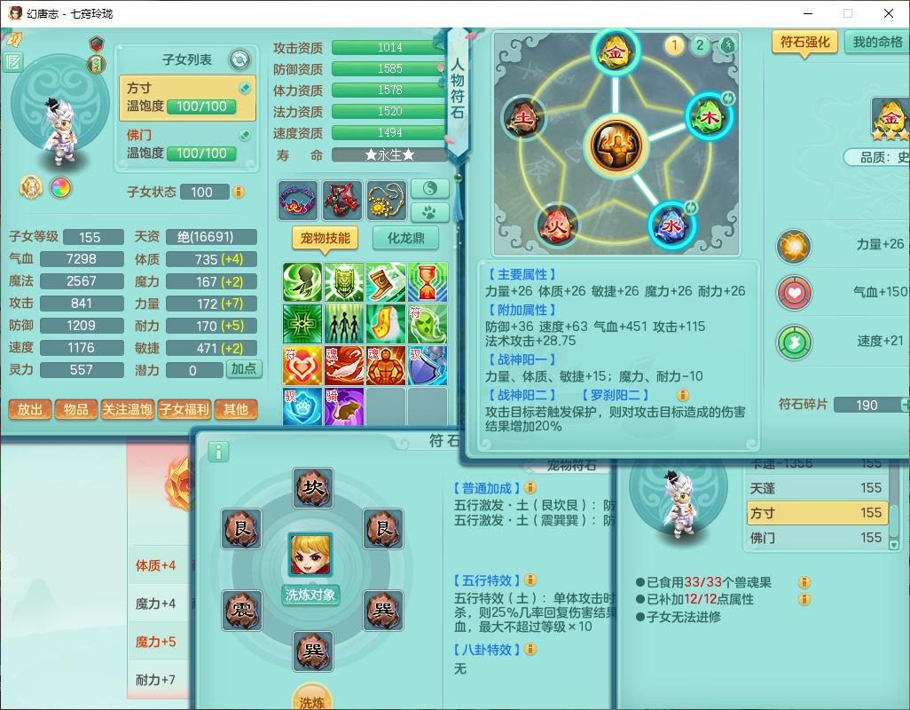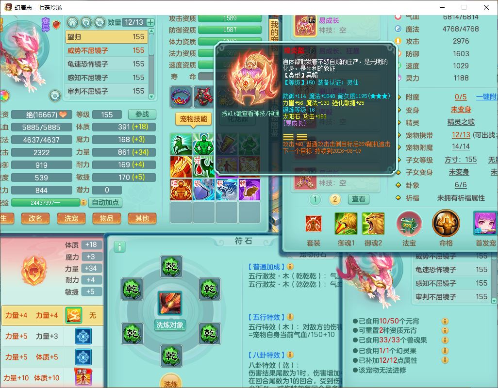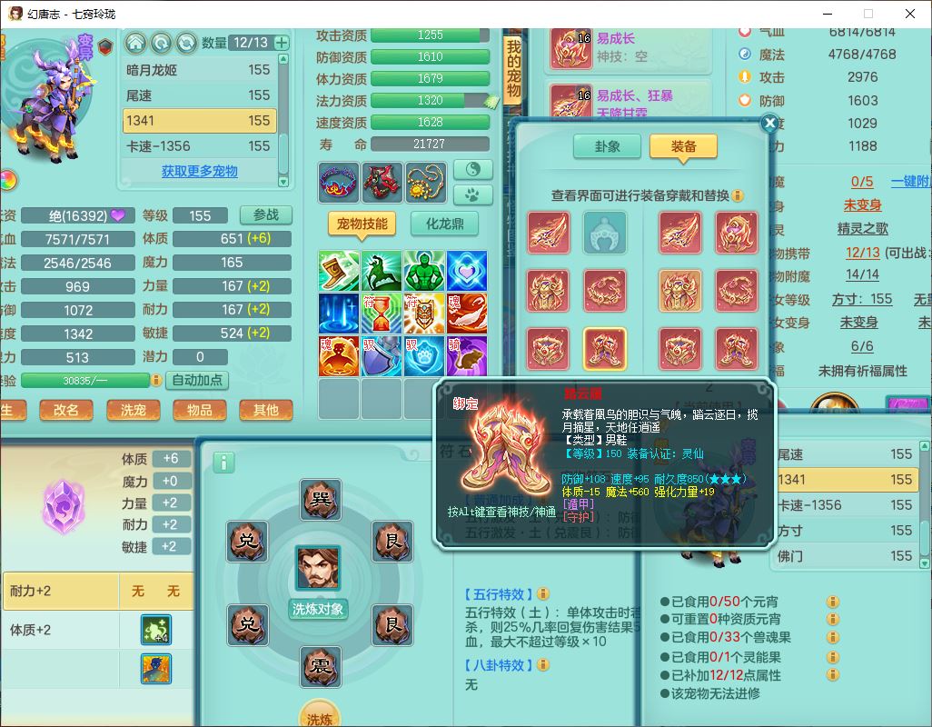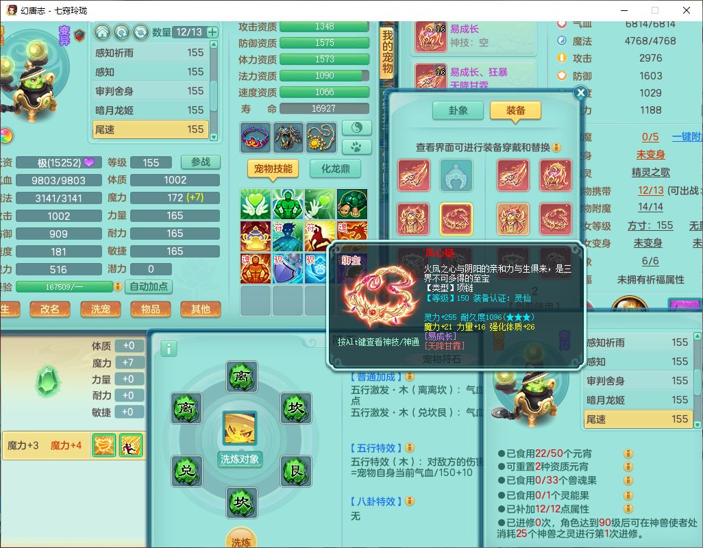 71452WH七窍玲珑159男万兽【潜龙+马上发财+火焰之力】精灵歌,1内丹青蛇1望归4镜花4特殊(祈雨、舍身,兽决禁锢、夺命)2龙姬1金炉,8觉醒3宠皮12六字1五字3四字17只满果子,8红装备,Y狂暴四海武器,崩山衣服,坚毅项链,一套辅助装备,Y晶清腰带,Y四海项链,鼎5.5+70+280,2套符石,138天月卡,庭院165房屋148,永久外观、精灵皮肤,28个仙兽灵,21个内丹碎片,1双人坐骑