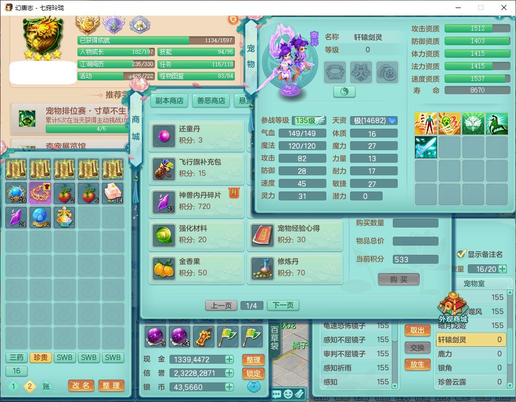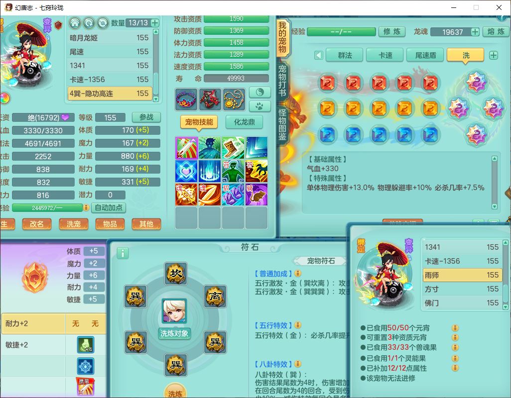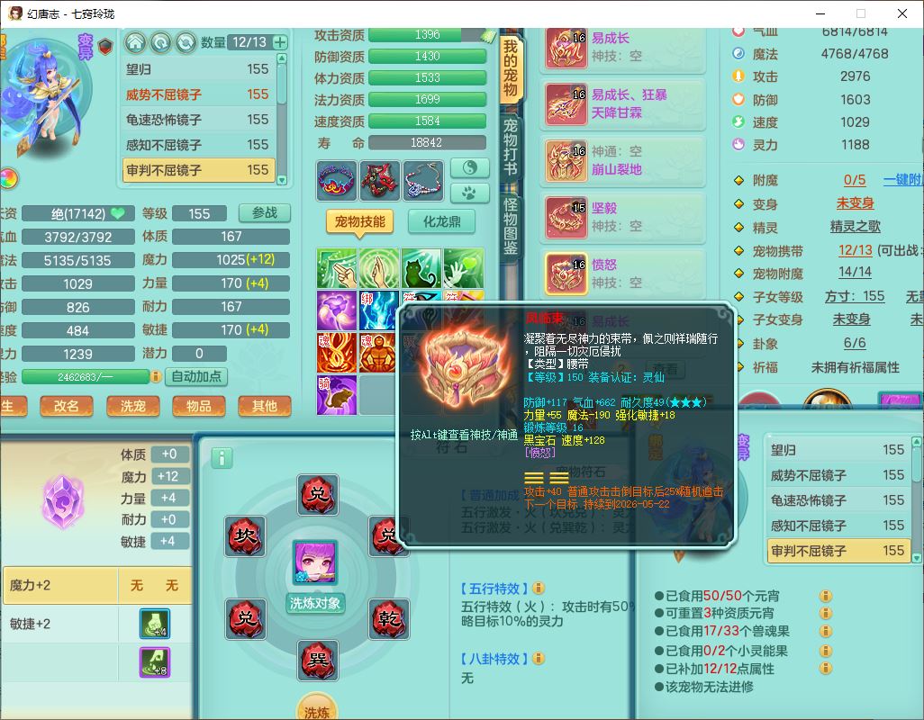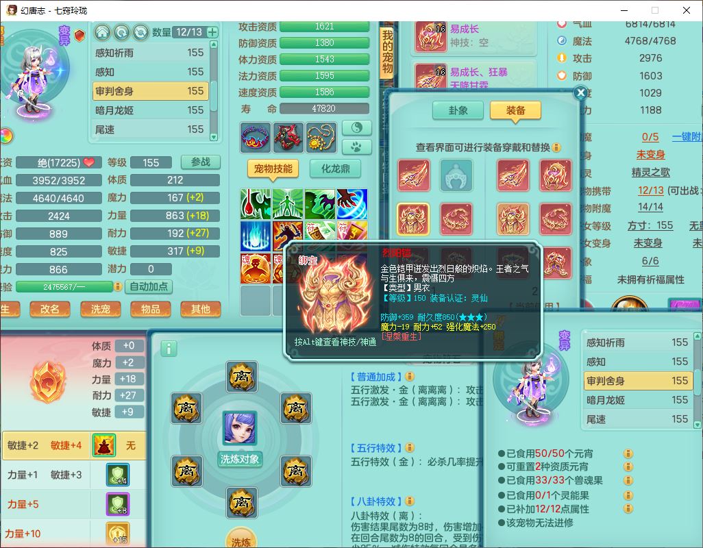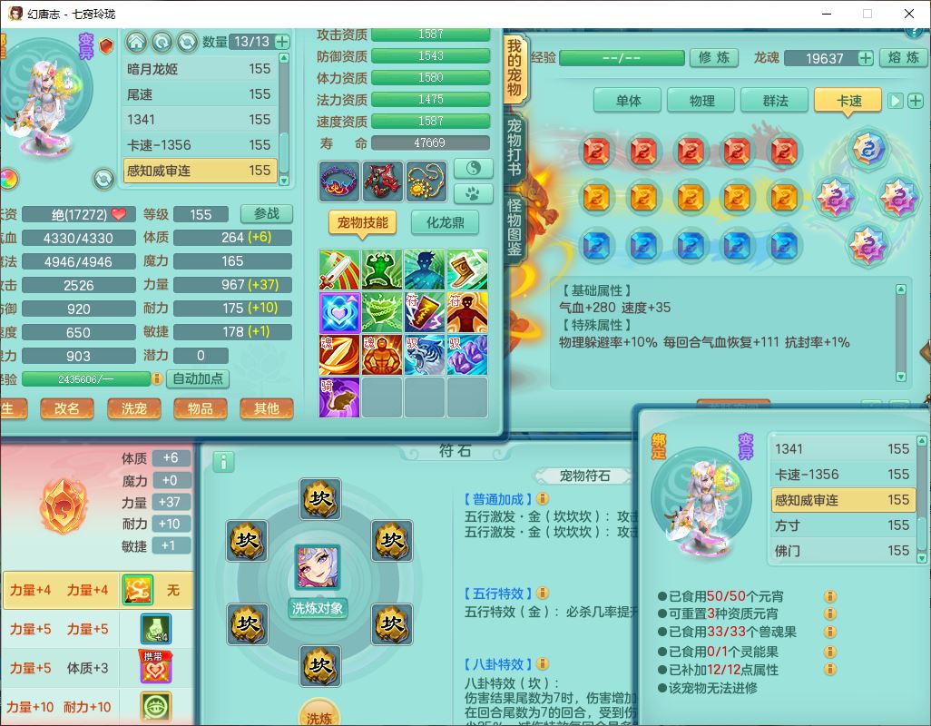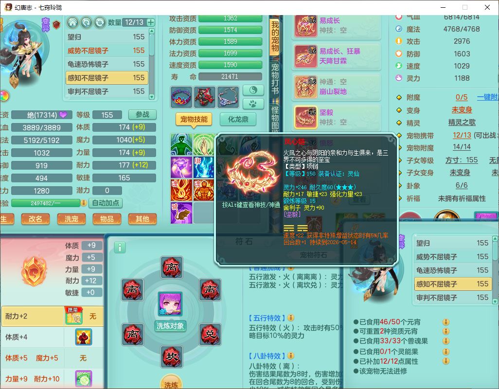 71452WH七窍玲珑159男万兽【潜龙+马上发财+火焰之力】精灵歌,1内丹青蛇1望归4镜花4特殊(祈雨、舍身,兽决禁锢、夺命)2龙姬1金炉,8觉醒3宠皮12六字1五字3四字17只满果子,8红装备,Y狂暴四海武器,崩山衣服,坚毅项链,一套辅助装备,Y晶清腰带,Y四海项链,鼎5.5+70+280,2套符石,138天月卡,庭院165房屋148,永久外观、精灵皮肤,28个仙兽灵,21个内丹碎片,1双人坐骑