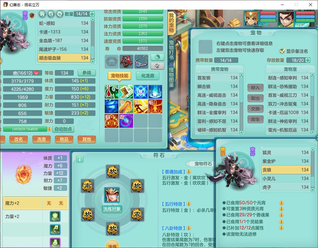 71453YB扬名立万129男方寸【暴龙逍客+西瓜冰+潜龙过半】精灵歌,1龙(换)2内(1青蛇1小马)1金炉3贪狼,10觉醒3宠皮2六字2五字12四字20只满果子,10红双法缭星辰之拥装备,五雷帽子,法爆罗汉武器,Y法缭烽火衣服,神佑群体止戈项链,法缭鞋子,一套10红物理装,破甲帽子,Y狂暴破血武器,崩山衣服,迅捷Y鞋子,鼎4.0+56,永久外观、精灵皮肤,14个内丹碎片,1双人飞行坐骑