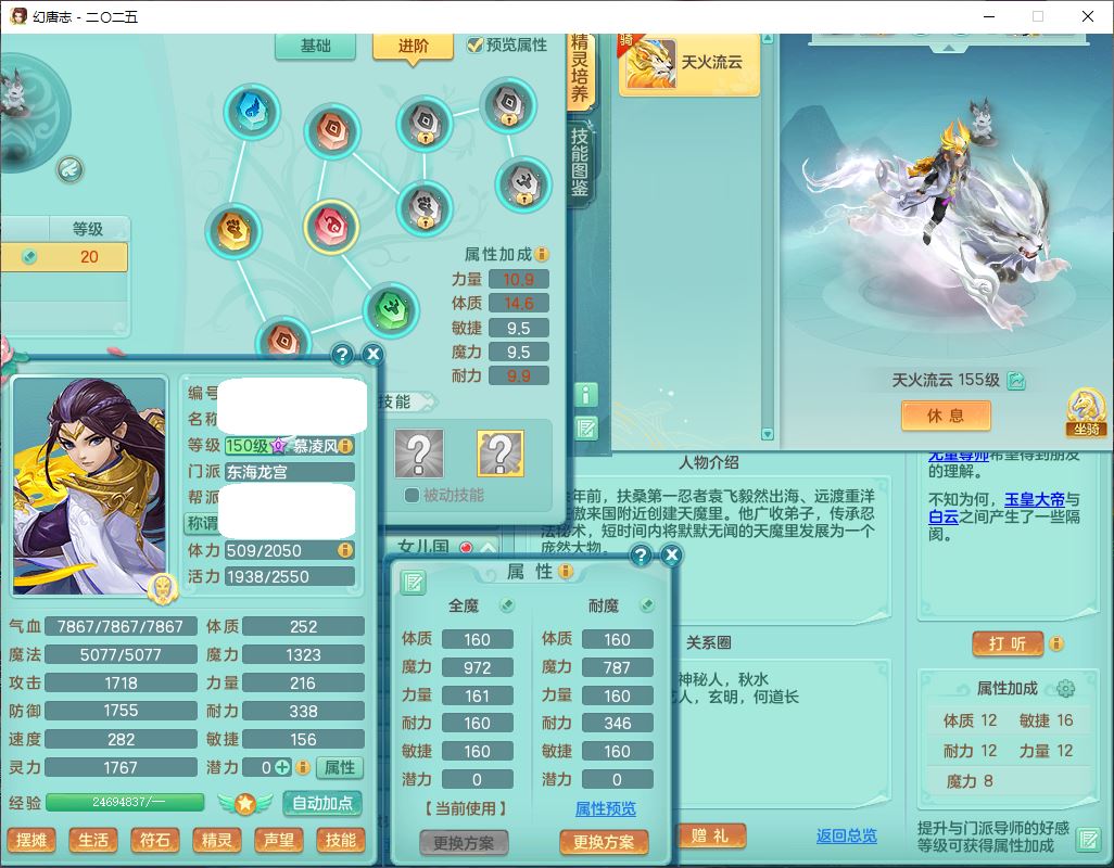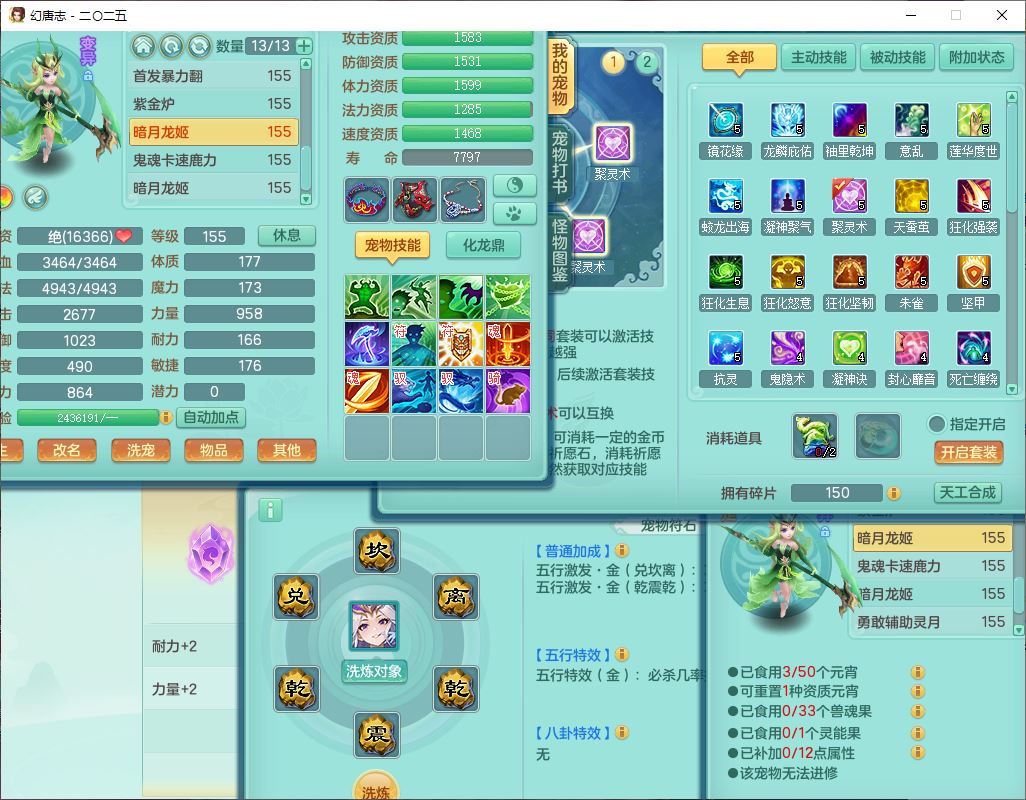99764,2025区150男龙宫准精灵舞,1内丹龙马1青蛇(无内)1望归3镜花2龙姬1金炉,1觉醒,宝宝种类齐全,装备齐全,烽火武器,法缭鞋子,聚灵五件套,43天月卡,永久外观、精灵皮肤,16个内丹碎片,1双人坐骑