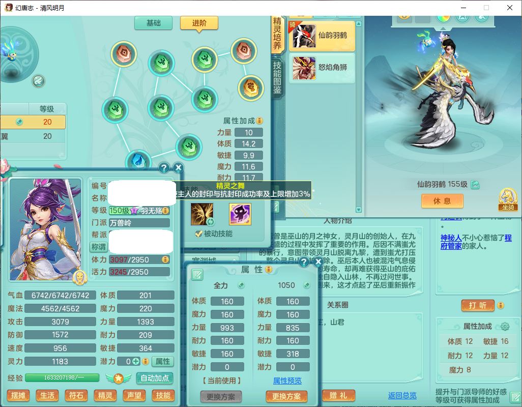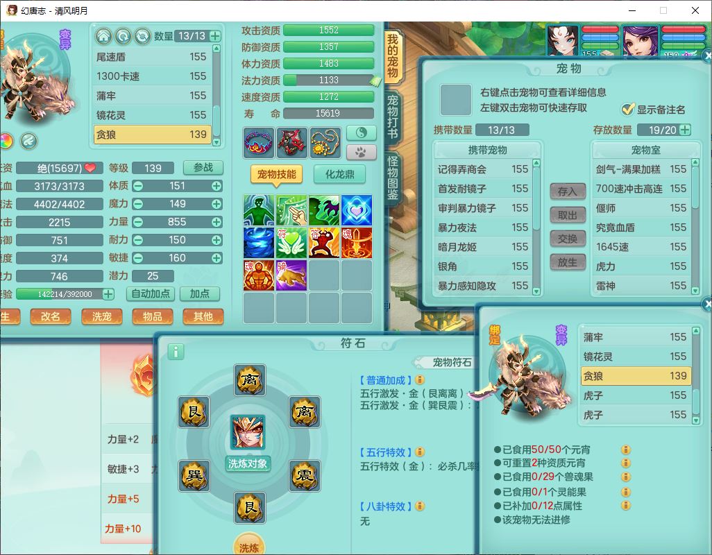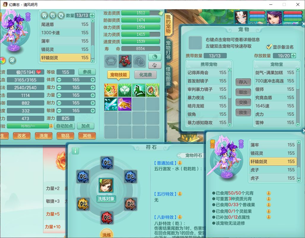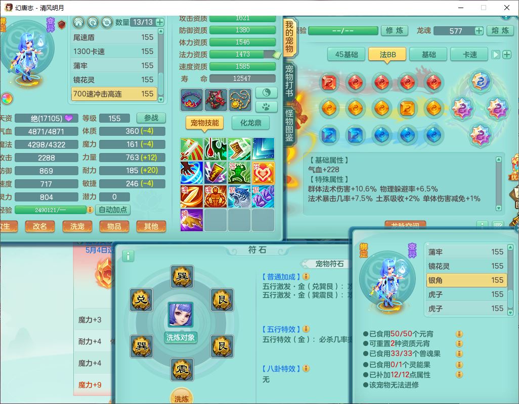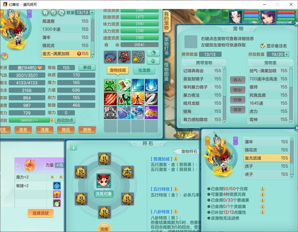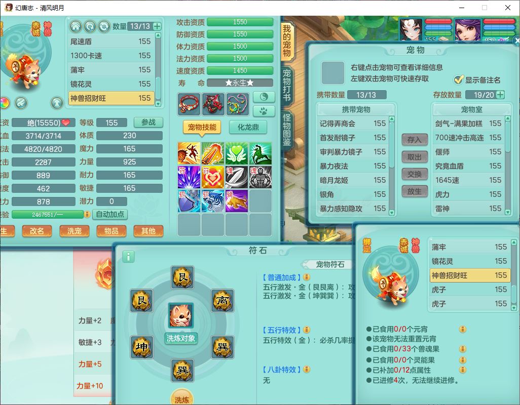 4349清风明月159女万兽精灵舞,1内丹青蛇5镜花1龙姬1金炉2特殊兽决(怒破、雷利),8觉醒3六字1五字3四字(1洗练珠)12只满果子,7红装备,必杀武器,神佑项链,Y蓄力腰带,一套8红辅助装,愤怒群体激励腰带,Y罗汉鞋子,鼎4.5+70,64天月卡,20个仙兽灵,48个内丹碎片,1飞行坐骑