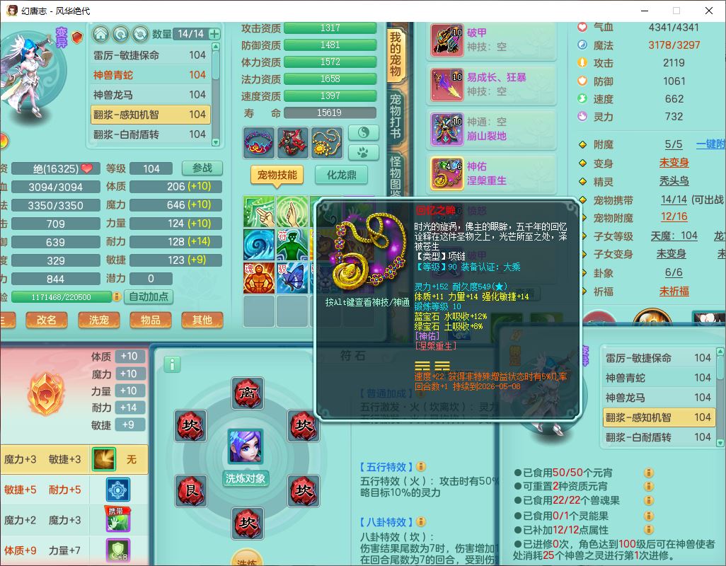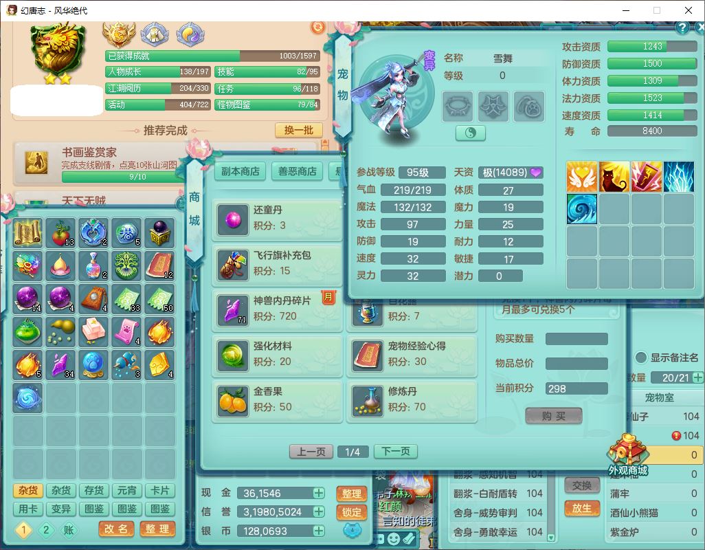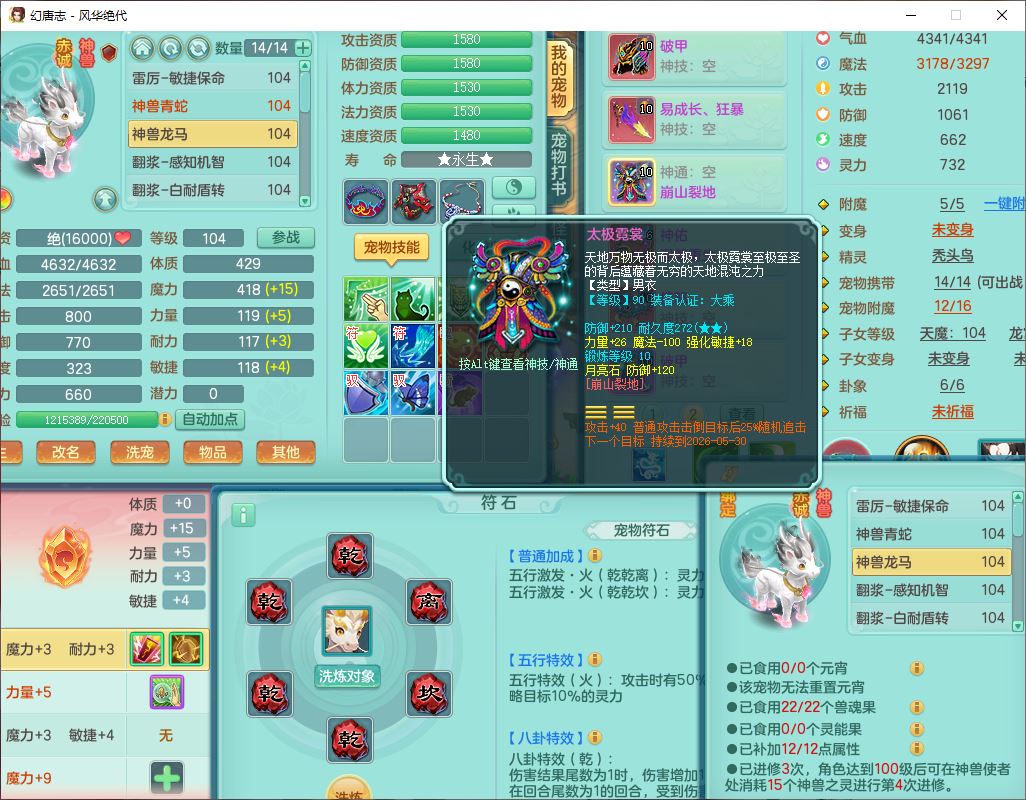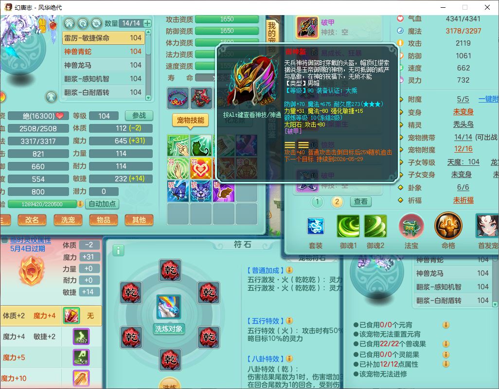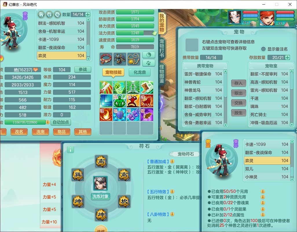 24248风华绝代99男无名【潜龙+马上发财+暴龙洪荒+火焰之力+西瓜冰】全力精灵,1龙(换、无内)1内丹青蛇1龙马(无内)4翻江4舍身1童子1金炉,11觉醒3宠皮10六字3五字8四字23只满果子,8红双破甲装备,破甲帽子、鞋子,Y狂暴武器,迅捷笑里鞋子,仓库多装备,有辅助装,回春武器,鼎3.0+42+168,2套符石,146天月卡,永久外观、精灵皮肤,120多w神武币,34个内丹碎片,2双人坐骑