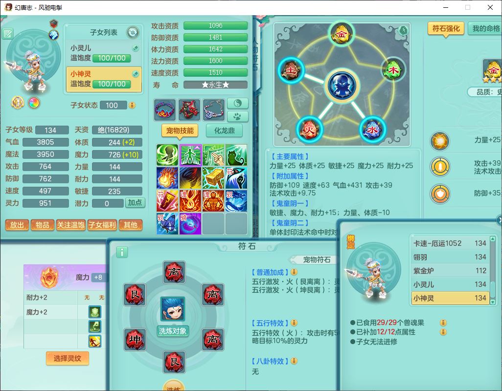 71451YB风驰电掣129男方寸【暴龙洪荒+西瓜冰】精灵舞,1龙(无内)2内(1青蛇1破境)2贪狼1七技能雷光霜狼1七技能雷光妖鬼1神石1金炉,7觉醒2宠皮3六字9四字(1洗练珠)9只满果子,8红装备,Y玉清衣服,愤怒Y腰带,一套7红物理装,Y狂暴武器,神佑项链,仓库一套辅助装,回春武器,匠心激励衣服,幸运慈航帽子,Y四海鞋子,鼎4.5+56,人物符石附加满足潜龙要求,113天月卡,永久外观、精灵皮肤,34个仙兽灵,1双人飞行坐骑