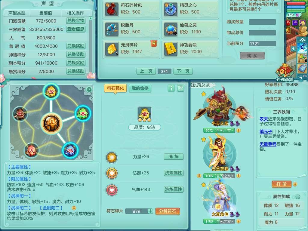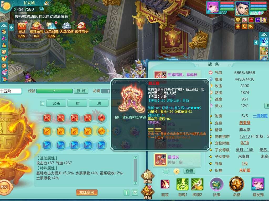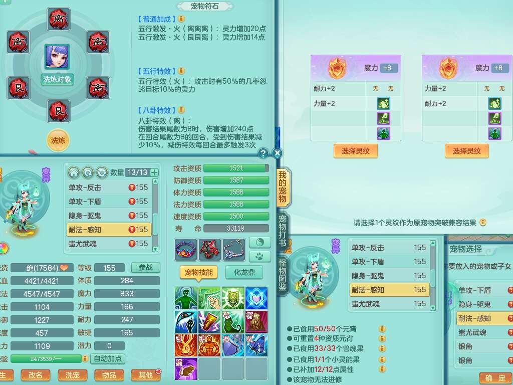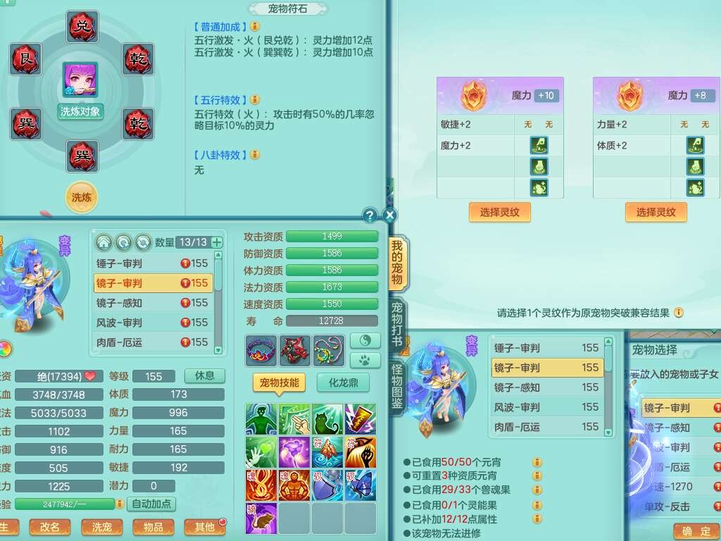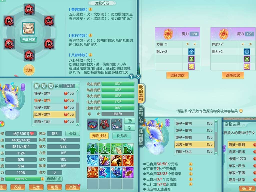 A22259超凡入圣159男天宫,精灵怒,1内胆神,4只觉醒。4宠皮+2幻灵果,2特殊(号角,上善),3只6技能镜花灵,易成长封印精通单加头,三红易成长奇珍崩山衣服,神佑单加链子,易成长破血单加腰带,易成长单加51鞋子,266易成长单加链子,5.0基础鼎,3个纯六字,2个5字,13只满果子,背包39仙兽蛋,2个染色坐骑,带百万银币。