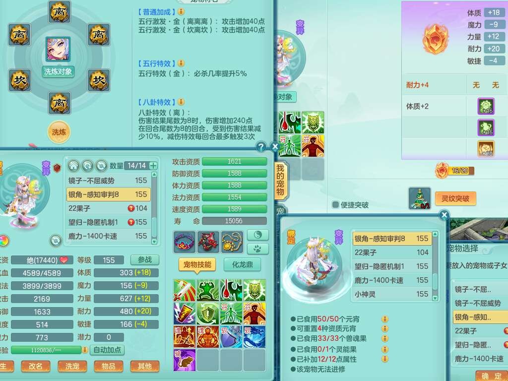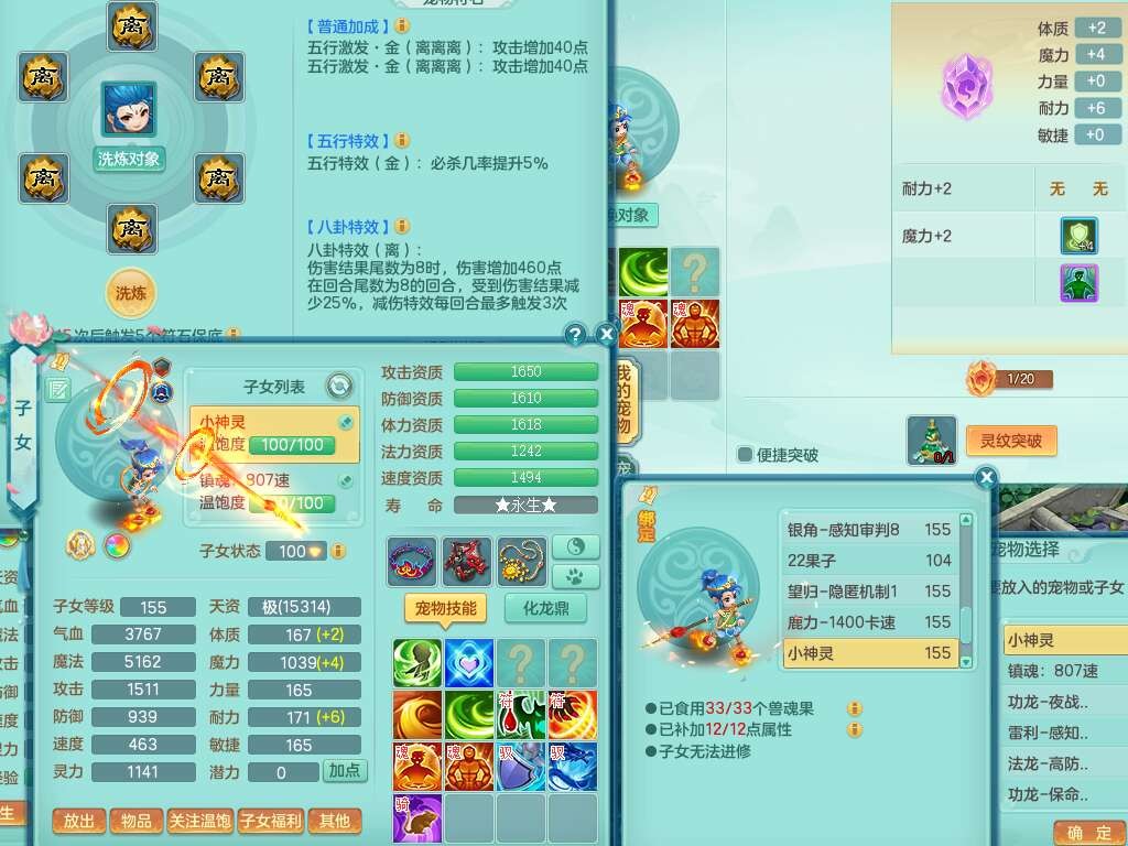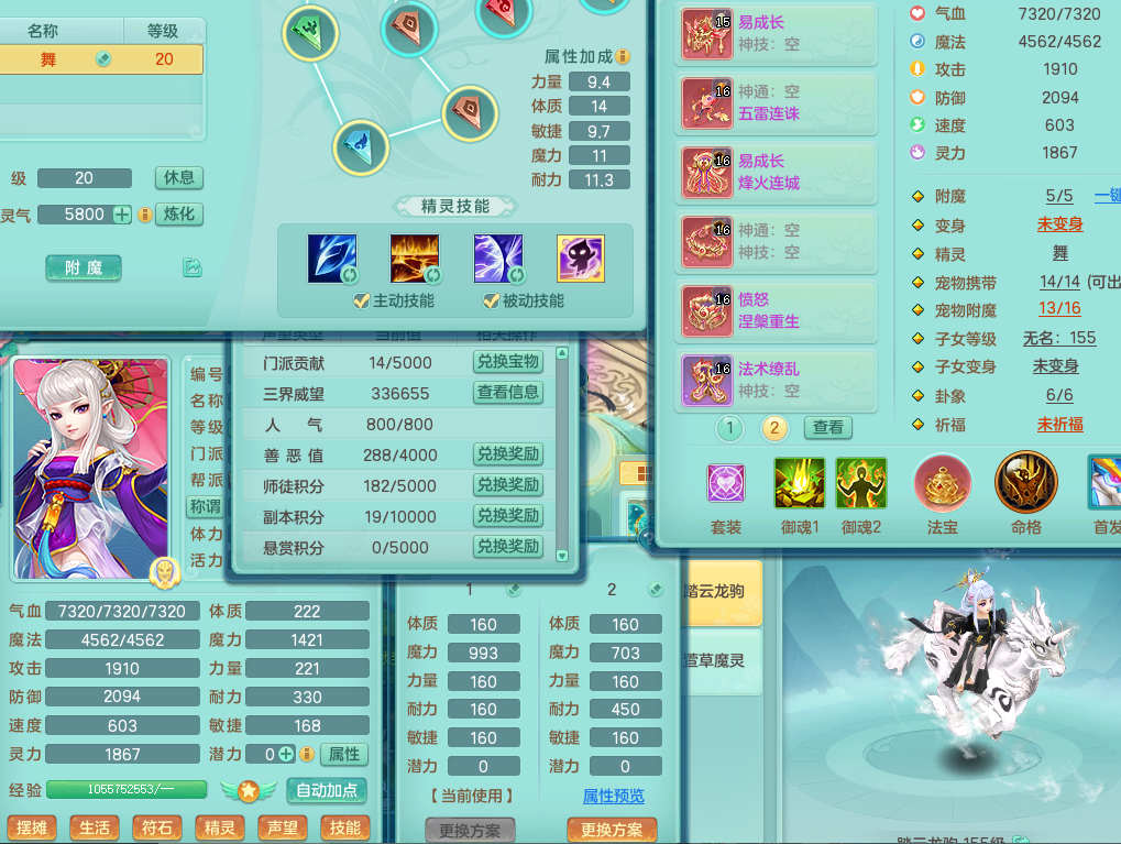 A22255浪淘沙159女魔王,精灵舞,5龙3内胆神,1破镜,9觉醒,4宠皮,4只六技能镜花灵,易成长单加54头,五雷单加56武器,易成长烽火单加50衣服,愤怒慈航单加57腰带,法缭单加51鞋子,5.0基础鼎+70攻+280血,3个纯六字,4个五字,16只满果子,宠排在榜,2只双人坐骑,带50天月卡。带4个153奶粉。