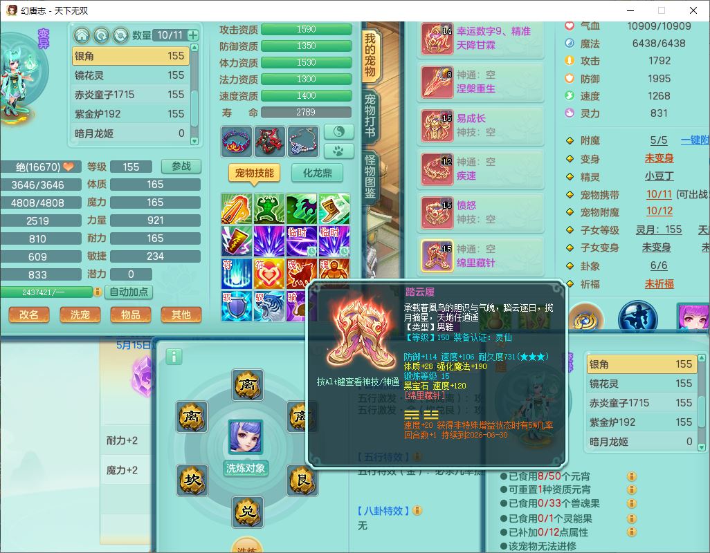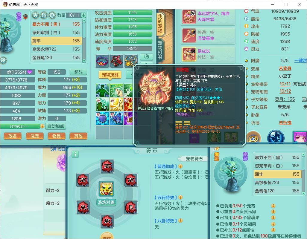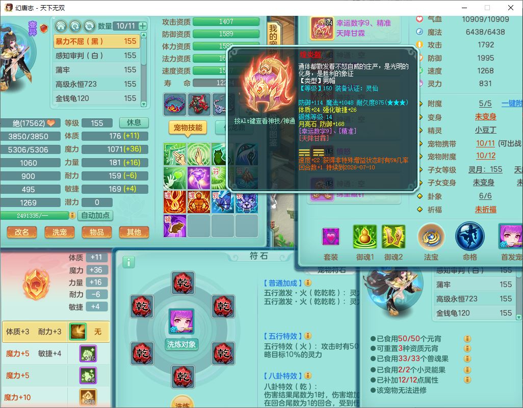 tx10364天下无双159男五庄【马到成功+暴龙洪荒+火焰之力】准精灵舞,3镜花1银角1金炉,2孩子(天魔+灵月),1觉醒1六字,8红装备,幸运精准四海帽子,愤怒腰带,鼎4.5+70+280,50天月卡,永久外观、精灵皮肤,34个内丹碎片,3坐骑