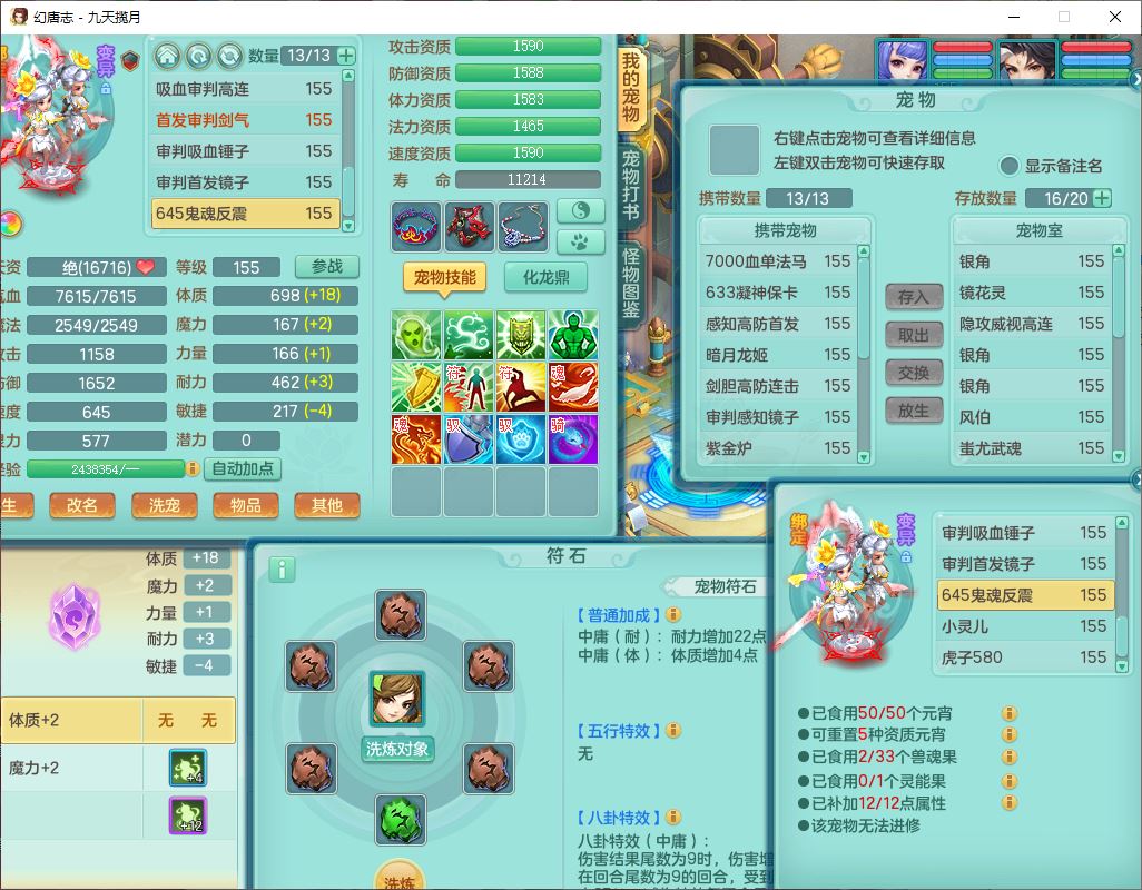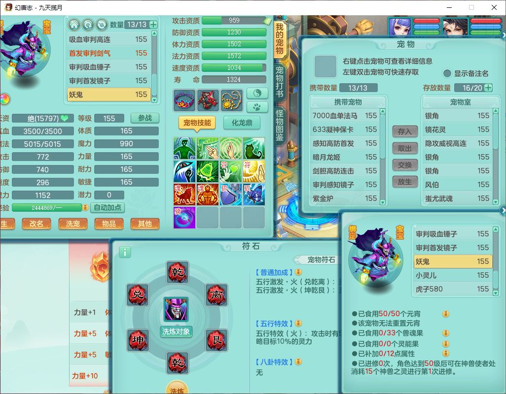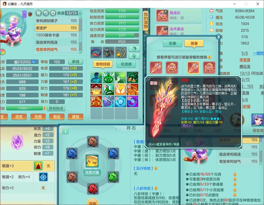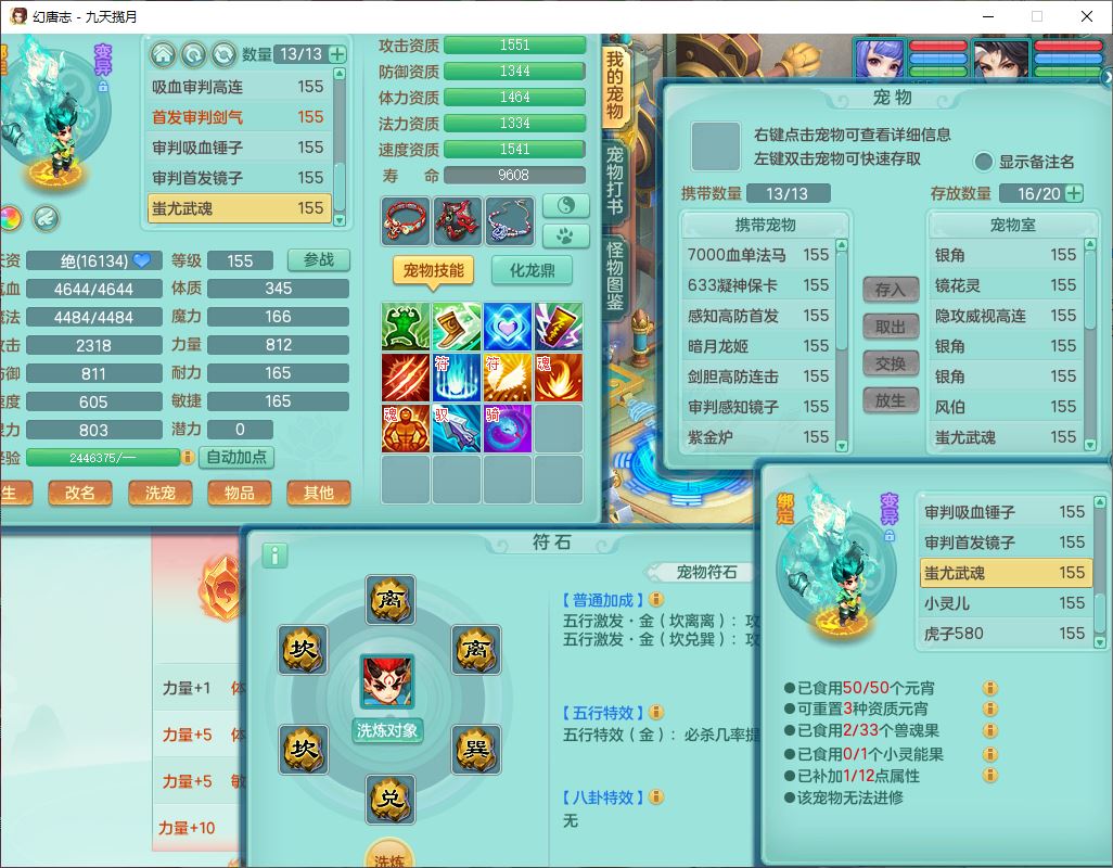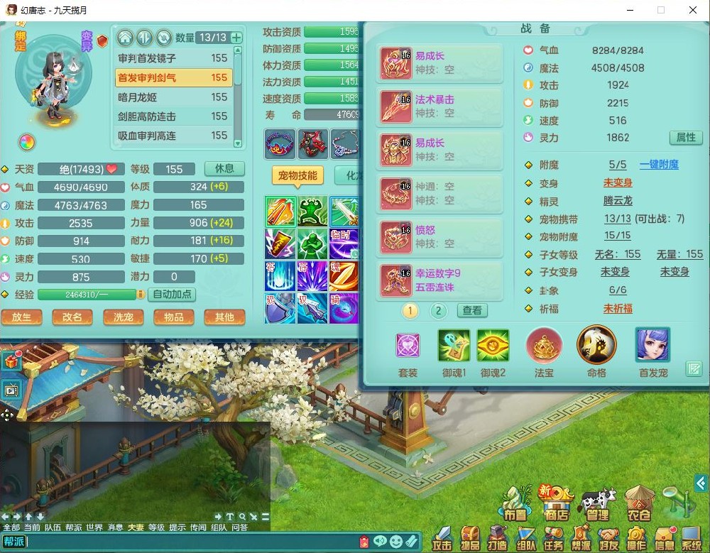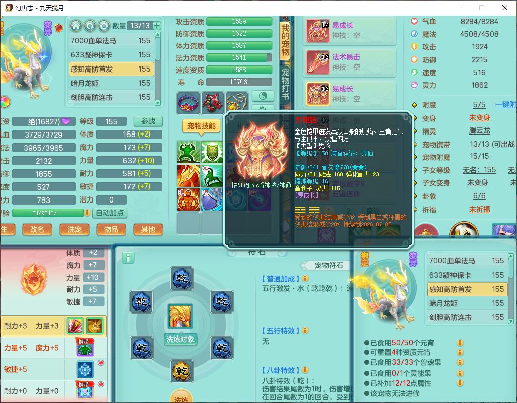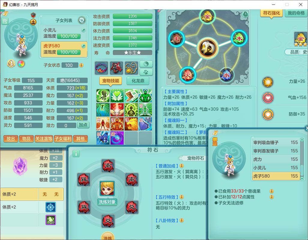 jt10360九天揽月159男天宫【潜龙+马到成功+火焰之力】精灵歌,1内丹龙马1望归1龙姬3特殊(剑胆、破碎、禁锢)3镜花1六技能雷光妖鬼1金炉,10觉醒8六字2五字6四字16只满果子,装备齐全,法爆武器,愤怒腰带,幸运五雷鞋子,一套8红物理装,932Y武器,崩山腰带,匠心破甲帽子,神佑项链,Y吸血鞋子,鼎6.0+70+280,69天月卡,永久头饰、精灵皮肤,57个仙兽灵,19个内丹碎片,1双人飞行坐骑,带150奶粉,有双重