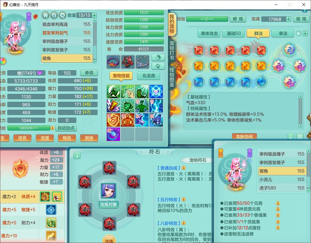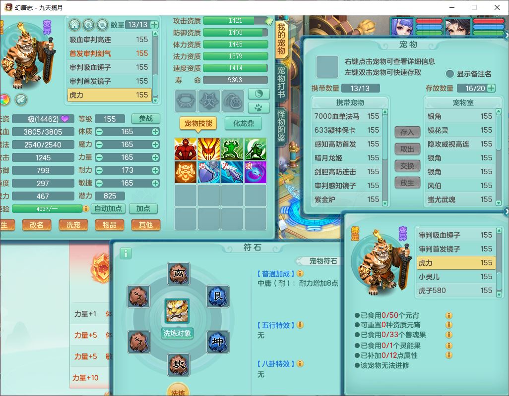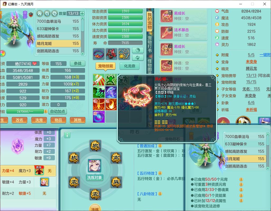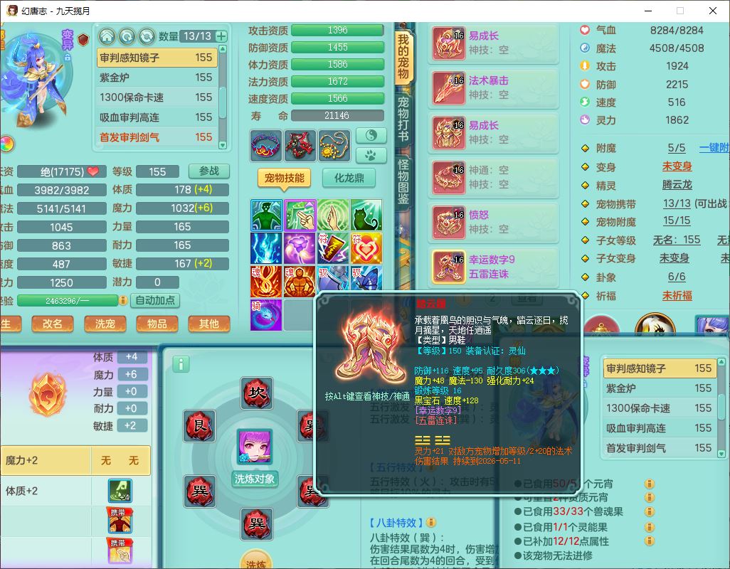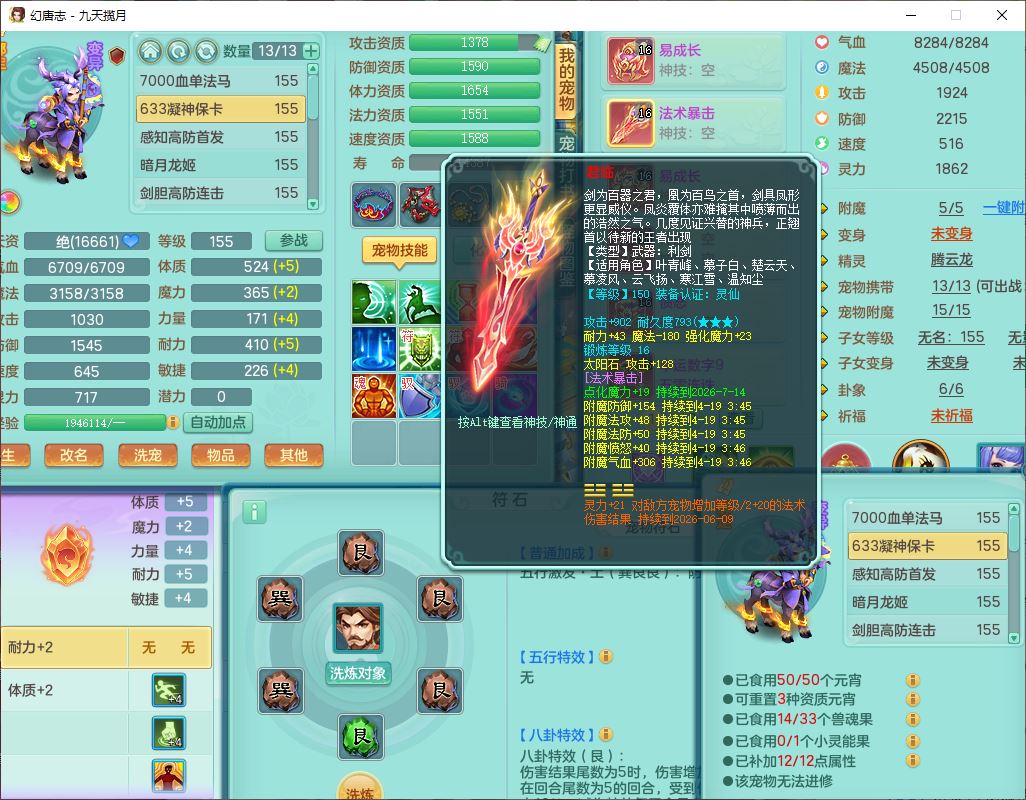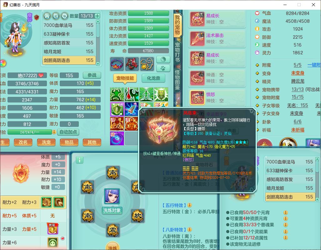 jt10360九天揽月159男天宫【潜龙+马到成功+火焰之力】精灵歌,1内丹龙马1望归1龙姬3特殊(剑胆、破碎、禁锢)3镜花1六技能雷光妖鬼1金炉,10觉醒8六字2五字6四字16只满果子,装备齐全,法爆武器,愤怒腰带,幸运五雷鞋子,一套8红物理装,932Y武器,崩山腰带,匠心破甲帽子,神佑项链,Y吸血鞋子,鼎6.0+70+280,69天月卡,永久头饰、精灵皮肤,57个仙兽灵,19个内丹碎片,1双人飞行坐骑,带150奶粉,有双重