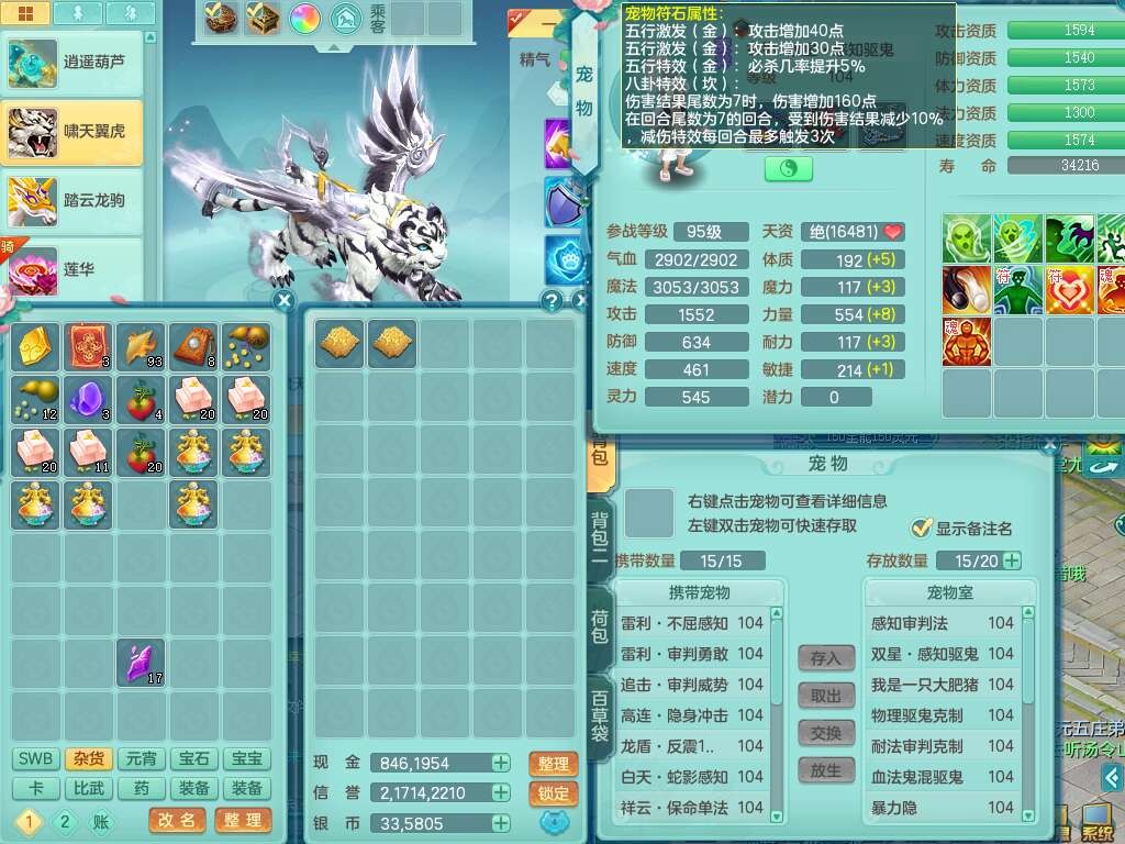p22260壮志凌云99男天宫,5龙4内胆神,【8只觉醒,已潜龙】,4位靓号不带4,5宠皮,554必杀破血单加武器,匠心移魂单加34头,崩山单加衣服,神佑单加34项链,愤怒易成长单加32腰带,有五雷头,法缭单加衣服,愤怒卸甲腰带,2.5基础鼎+42攻+168血,13个永久格子,9个纯六字,1个五字,20只满果子,宠排在榜,5个坐骑,带52天月卡。