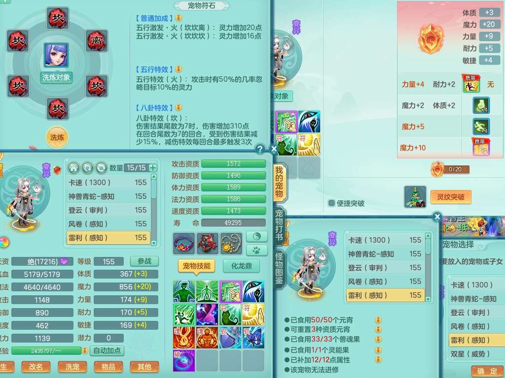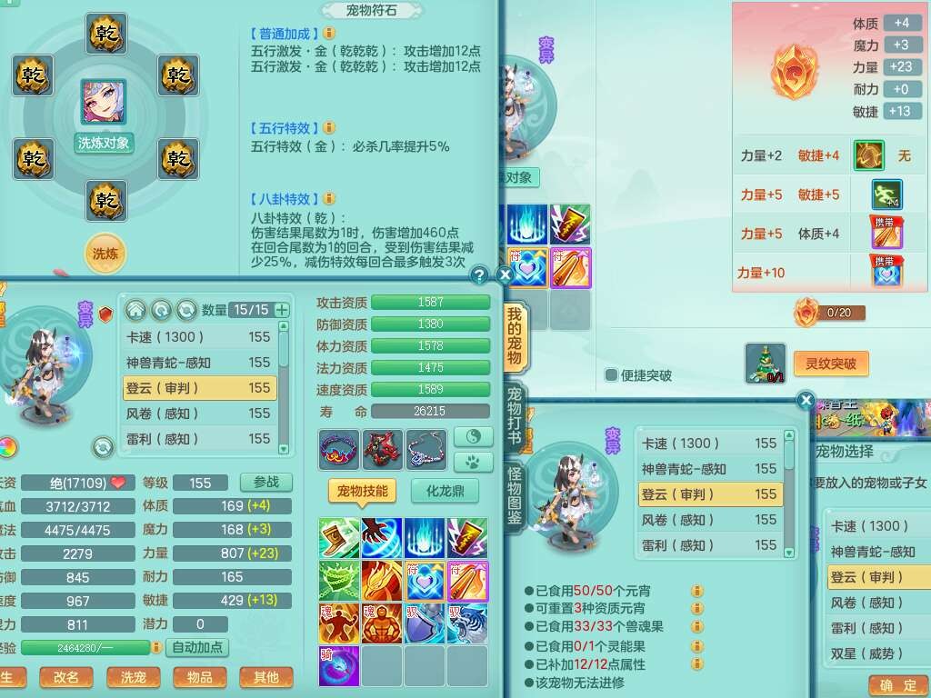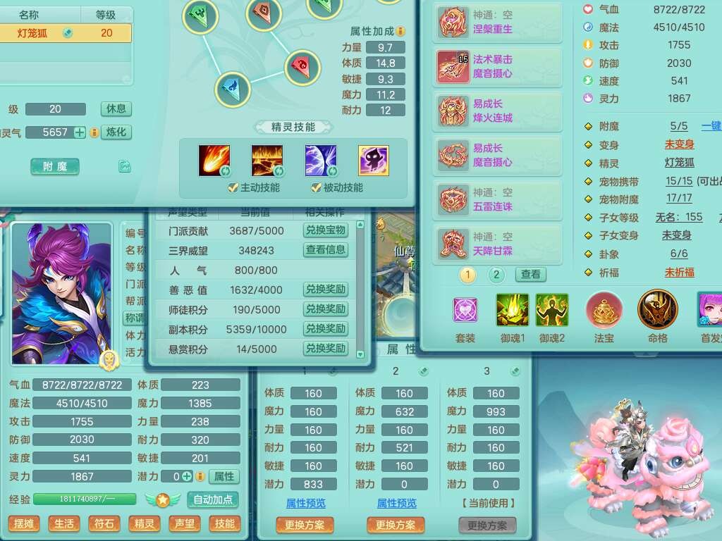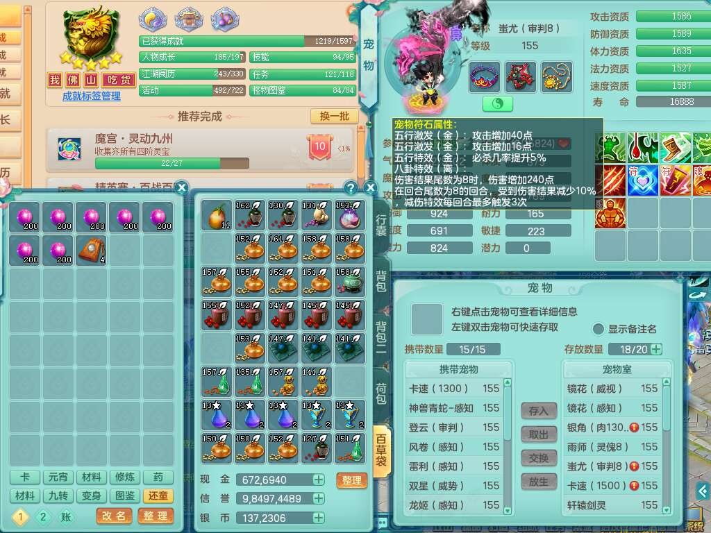 S22030笑傲江湖159男魔王,精灵舞,1龙无内,1内胆神,8只觉醒,2宠皮,4只六技能镜花灵,2只六技能龙姬,8特殊(登云,烈焰,锤子,雷厉,风卷,灵傀,虎虎,双星),五雷单加51腰带,易成长烽火单加52衣服,有匠心易成长单加55腰带,匠心易头,5.5基础鼎+70攻,13个格子,2个纯六字,7个五字,17只满果子,仓库45神兽内丹碎片,经验成就在榜,4只坐骑。