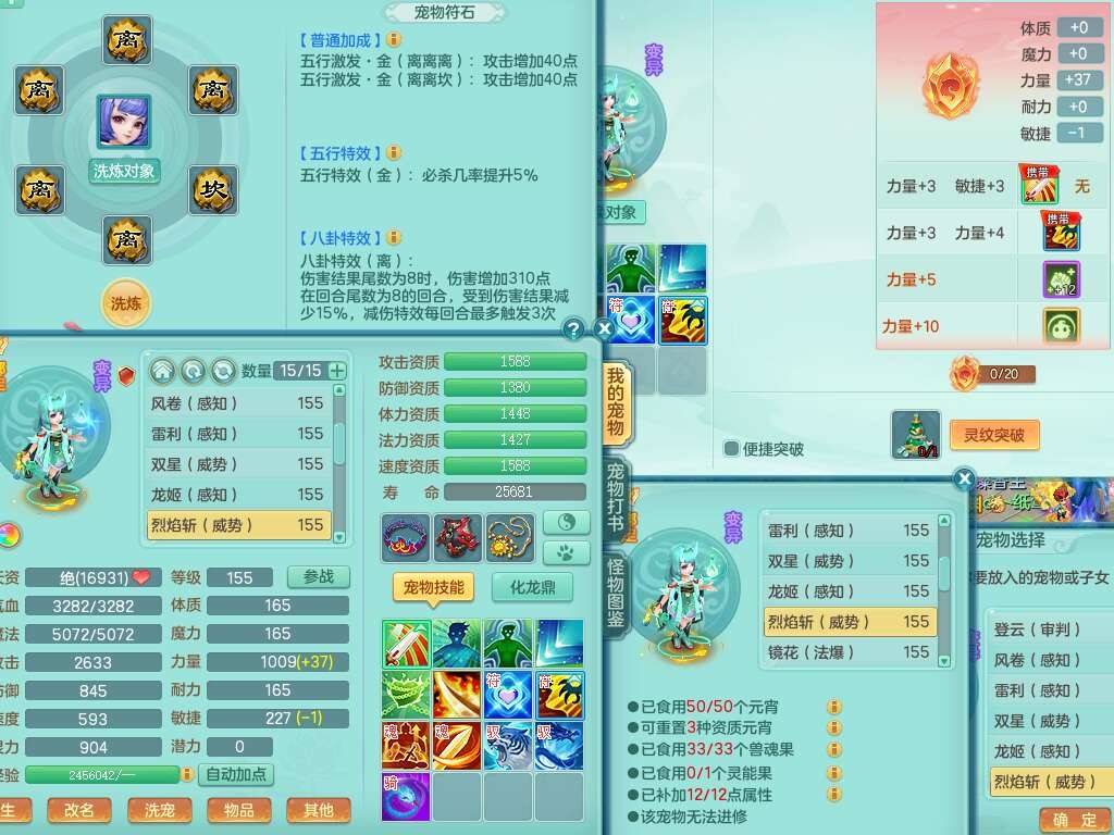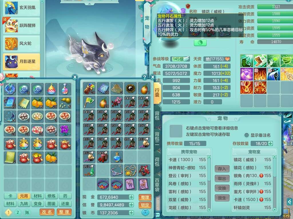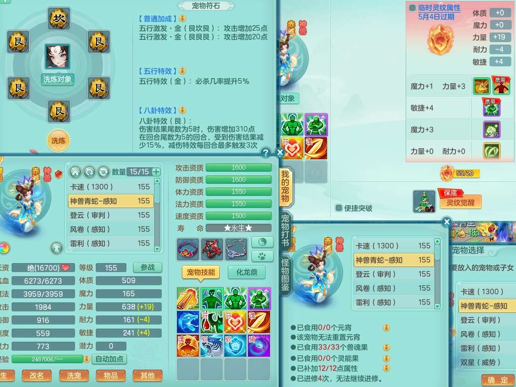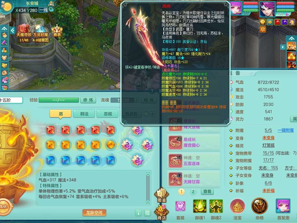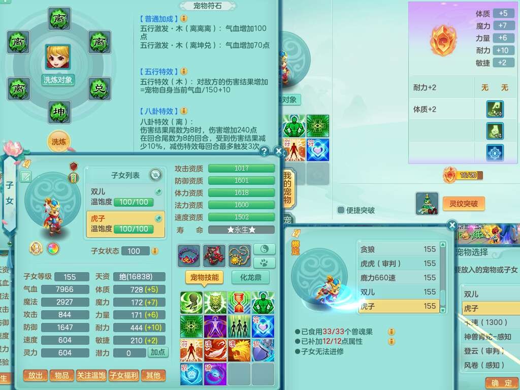 S22030笑傲江湖159男魔王,精灵舞,1龙无内,1内胆神,8只觉醒,2宠皮,4只六技能镜花灵,2只六技能龙姬,8特殊(登云,烈焰,锤子,雷厉,风卷,灵傀,虎虎,双星),五雷单加51腰带,易成长烽火单加52衣服,有匠心易成长单加55腰带,匠心易头,5.5基础鼎+70攻,13个格子,2个纯六字,7个五字,17只满果子,仓库45神兽内丹碎片,经验成就在榜,4只坐骑。