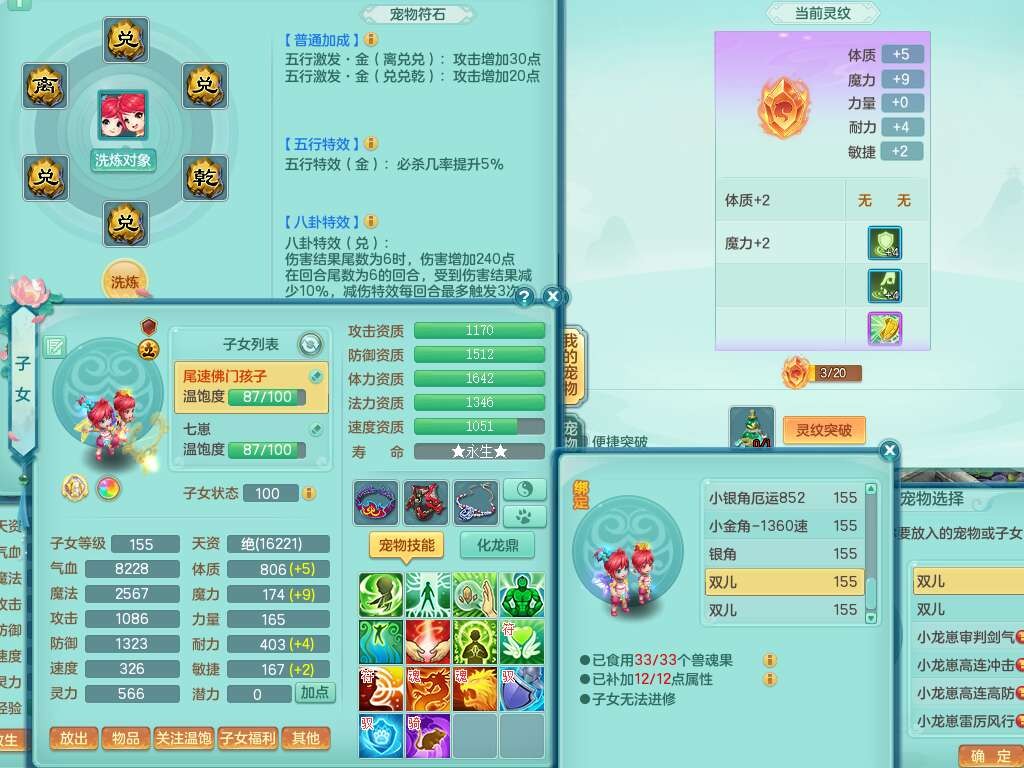 J22029醉生梦死159男五庄,精灵舞,4内丹龙+80仙兽灵,2内胆神+31神兽内胆碎片,1破镜,【准潜龙,只差1个附加属性,1个厚土龙纹】,4位靓号不含4,3只六技能镜花灵,7特殊(翻江,流星×2,噬风,琴音,逆龙,上善),易成长罗汉单加57鞋子,愤怒六特,物理狂暴武器,强化防御崩山单加56衣服,神佑项链,5.5基础鼎,13个永久格子,7个纯六字,1个五字,15只满果子,宠排在榜,经验修炼在榜,永久称谓,2个双人坐骑,带353万神武币。➕159女普陀,2只六技能镜花灵,回春迟滞武器,愤怒五特,4.5基础鼎,1800万神武币。➕159男天宫,1只六技能镜花灵,1只六技能龙姬,4.5基础鼎,317万神武币。➕159男无量,1只六技能镜花灵,977万神武币。
