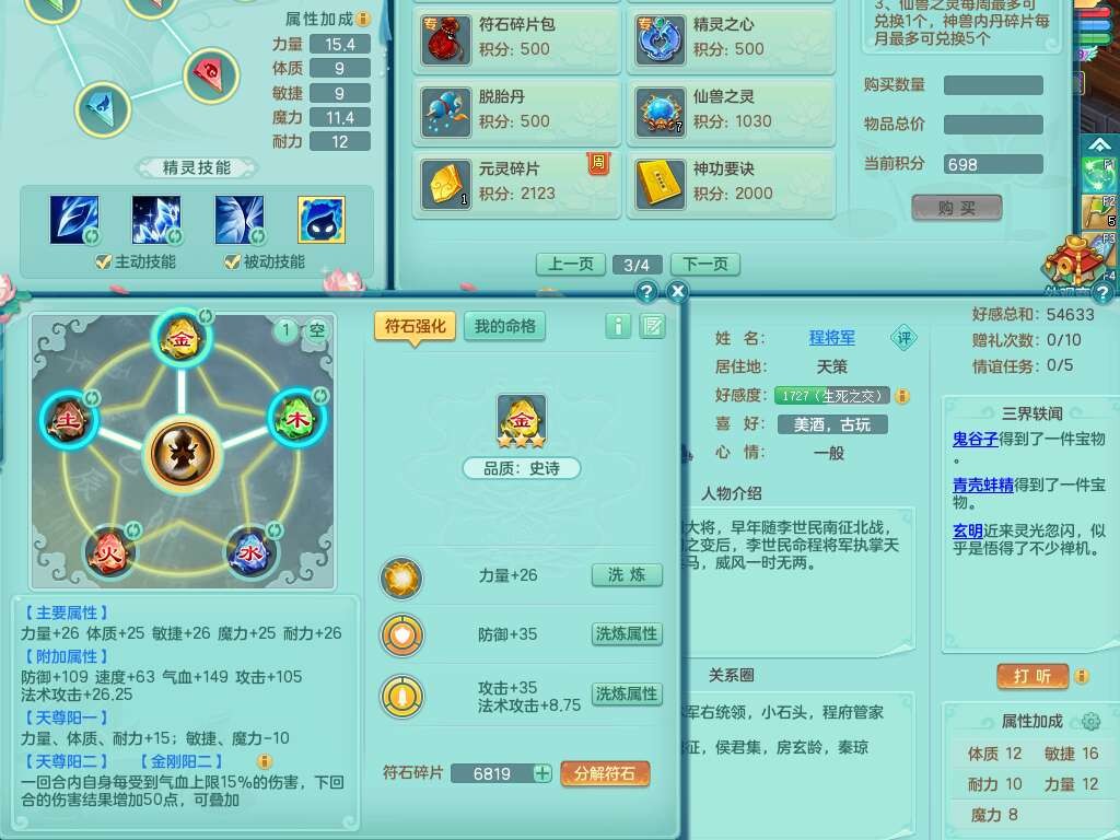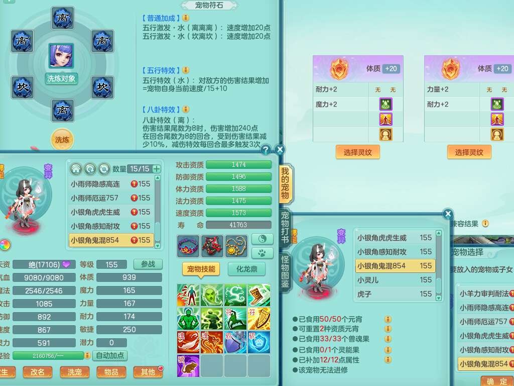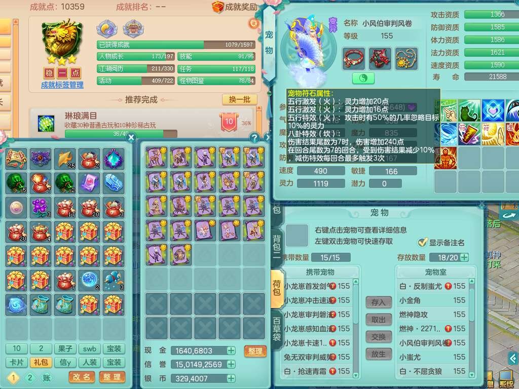 J22028醉生梦死159女五庄,精灵歌+悟,5内丹龙+80仙兽灵,2内胆神+34神兽内胆碎片,2只六技能镜花灵,1只六技能龙姬,2特殊(虎虎,守护),934易成长武器,崩山衣服,愤怒单加54腰带,5.5基础鼎,13个永久格子,6个纯六字,2个五字,综合13只满果子,宠排在榜,经验修炼在榜,永久称谓,2只双人坐骑,带329万神武币。