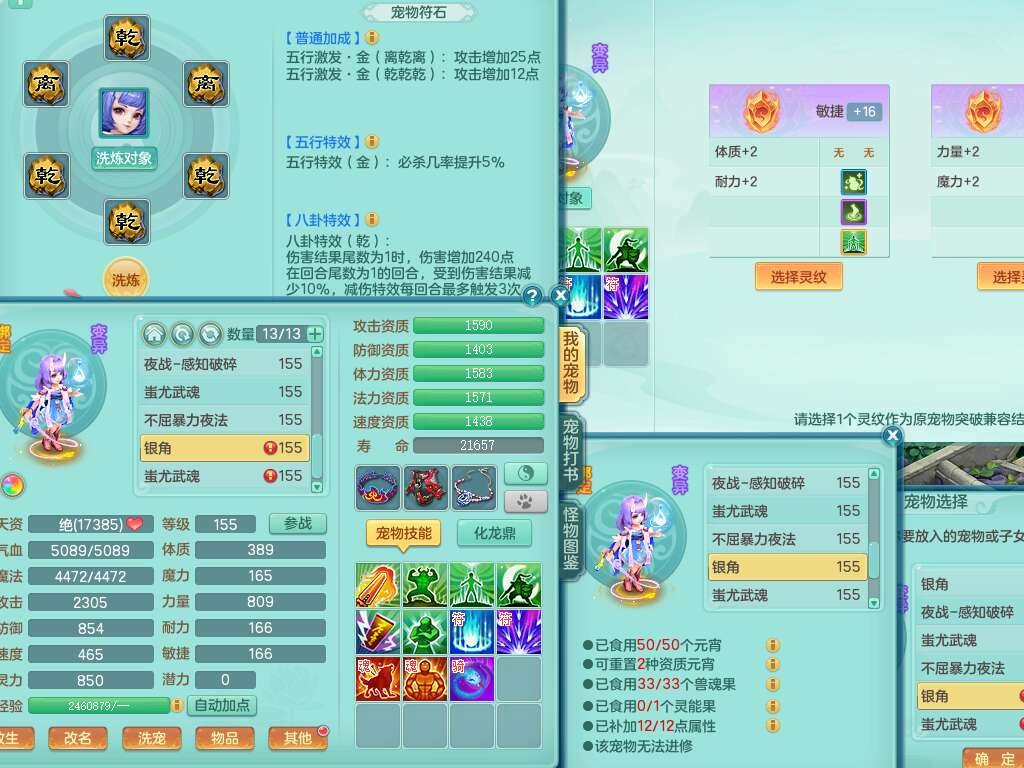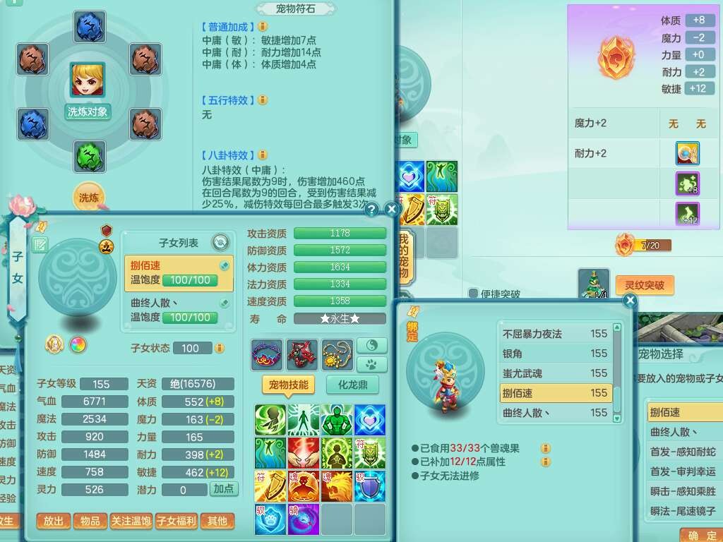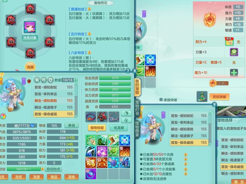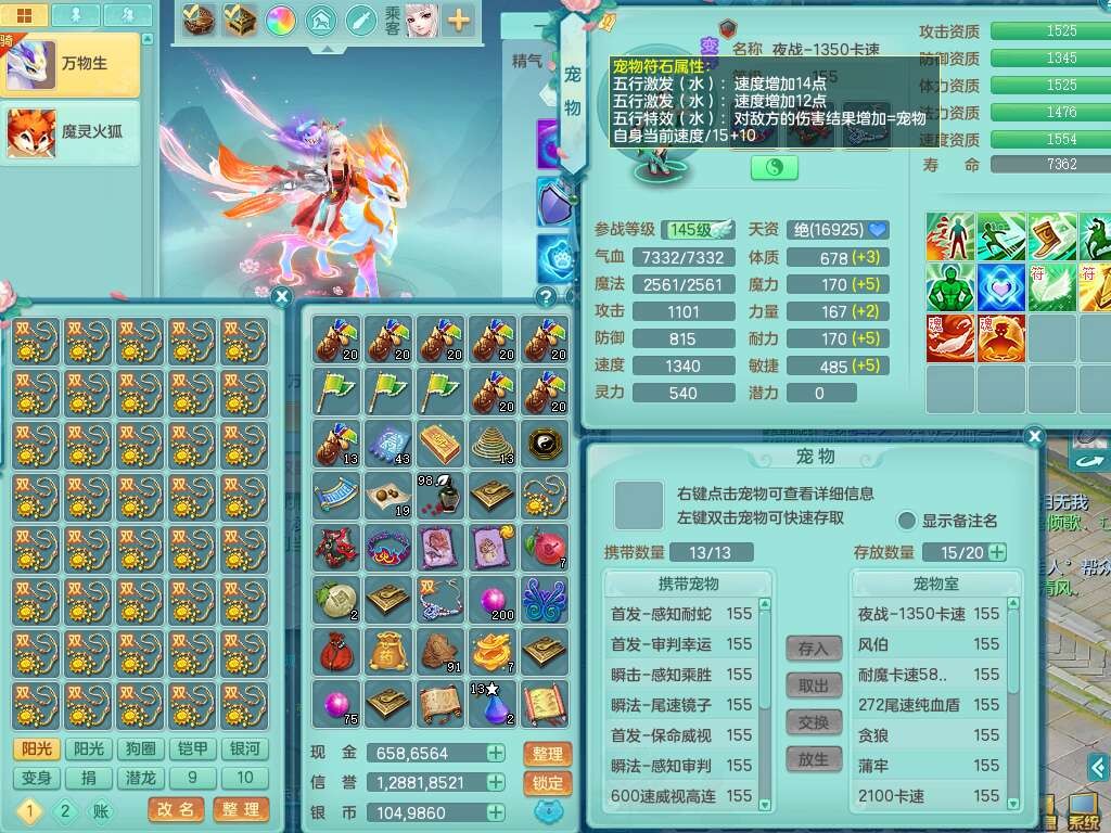 A22026彩云追月159女灵月山,精灵舞,1内胆神青蛇,3只神兽+33神兽内胆碎片,3只觉醒,1只六技能龙姬,3只六技能镜花灵,1特殊(舍身),三红易成长神佑罗汉项链,愤怒五特,躲避明镜单加50衣服,崩山衣服,狂暴破血武器,可转物理,2个五字,8只满果子,双人坐骑。