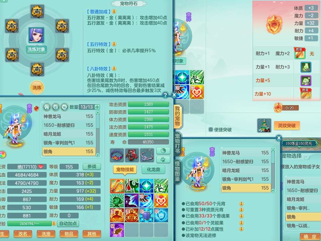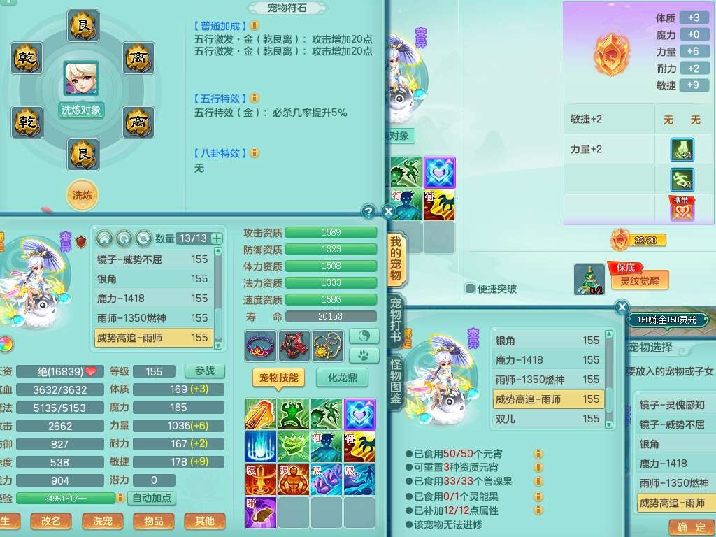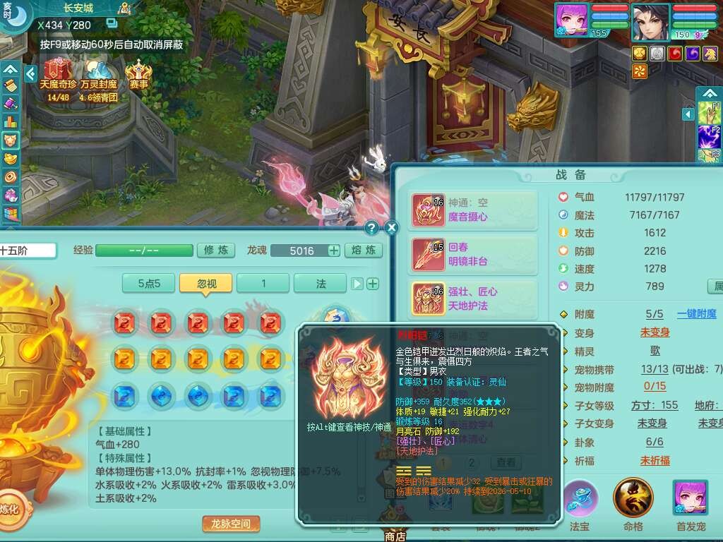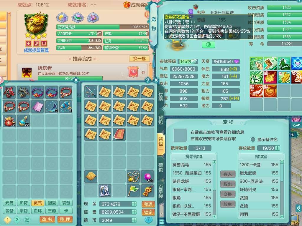 J22022龙腾九州159男普陀,精灵舞,1内胆神,5只觉醒(潜龙条件只差2只觉醒,1个6字),4特殊(以战,夺命,灵傀,虎虎),3只6技能镜花灵,1只6技能龙姬,三红愤怒易野兽腰带,回春愤怒6特,5.5基础鼎+70攻,280血,6个纯六字,1个5字,13只满果子,仓库24神兽内丹碎片,24仙兽蛋,双人坐骑。