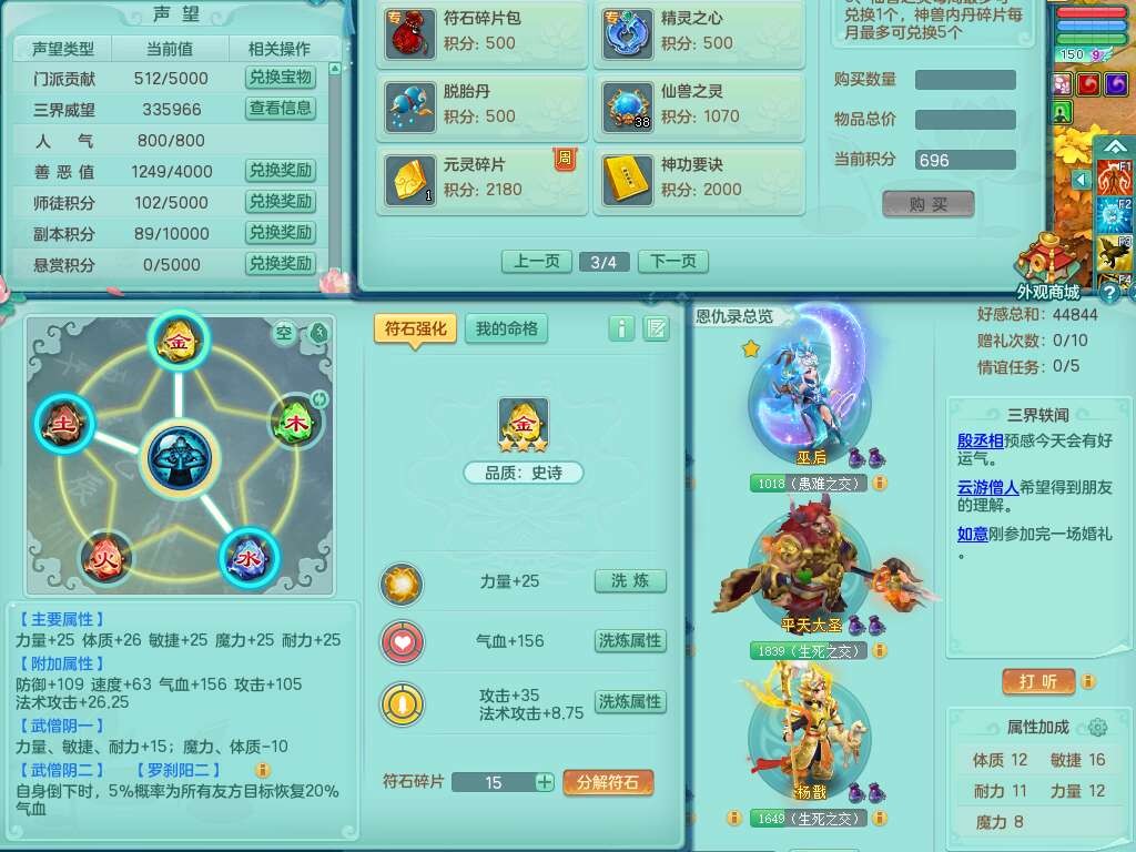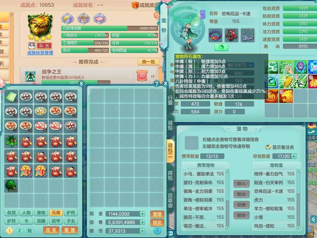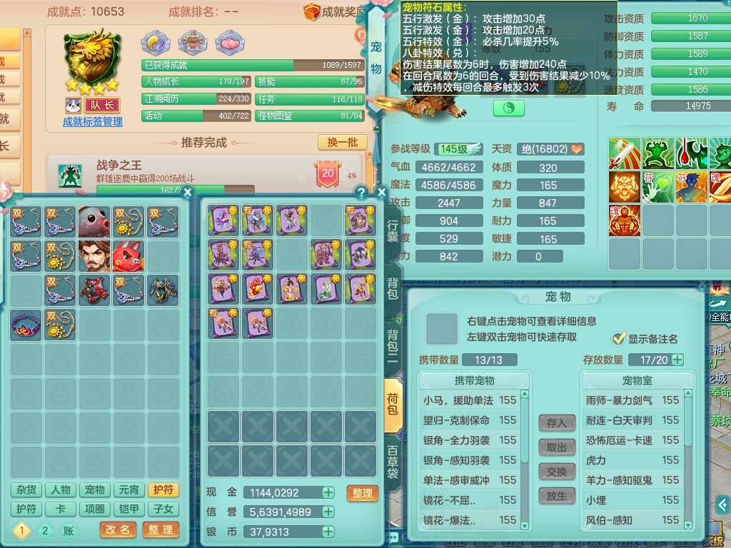 J22021龙腾九州159女万兽,精灵舞,1内胆神,2宠皮,10只觉醒,6特殊(羽袭2,翻江,以战,勇猛,堕天),3只6技能镜花灵,三红易成长疾速冷却群体守护单加帽子,911狂暴单加53武器,崩山裂地单加衣服,坚毅单加52链子,易成长四海单加54腰带,全身高单加,化龙鼎5.5+70攻,13只满果子,7个纯六字,宠排在榜,修炼在榜,纯白团团,原始暴龙洪荒,背包51仙兽蛋,月卡还有109天。