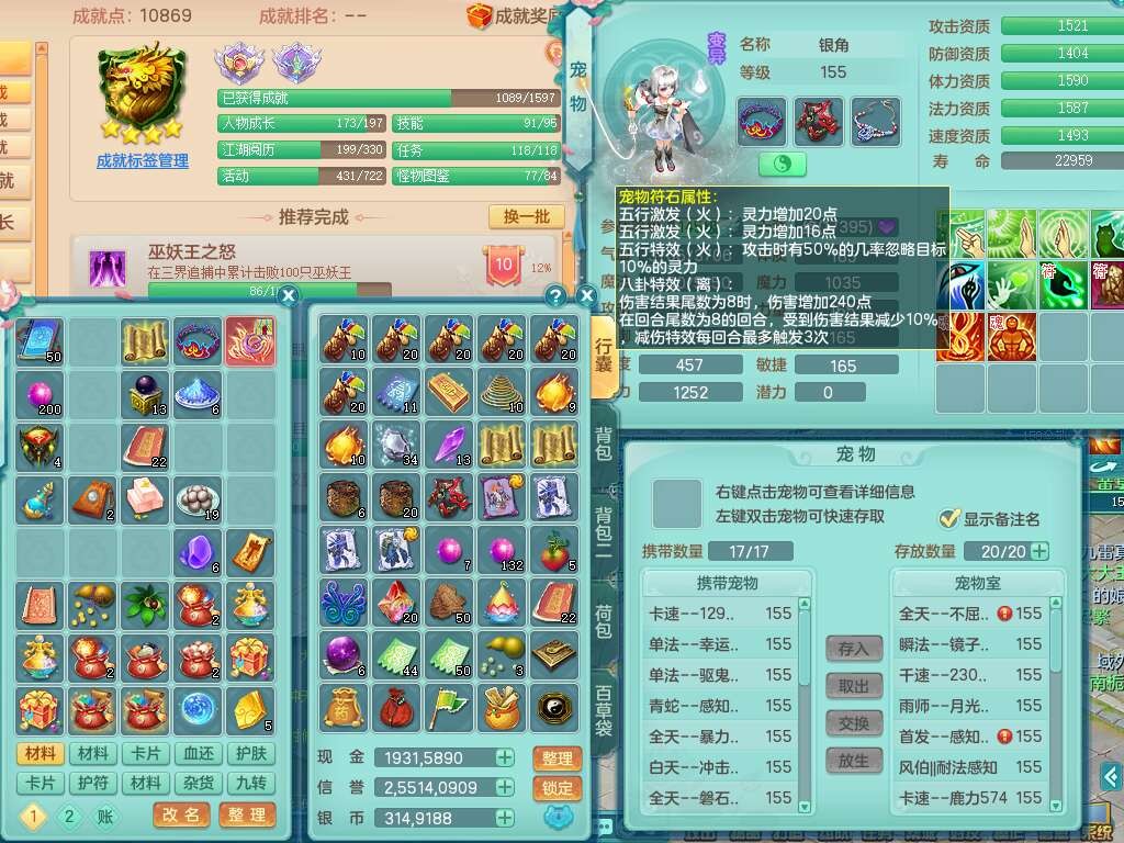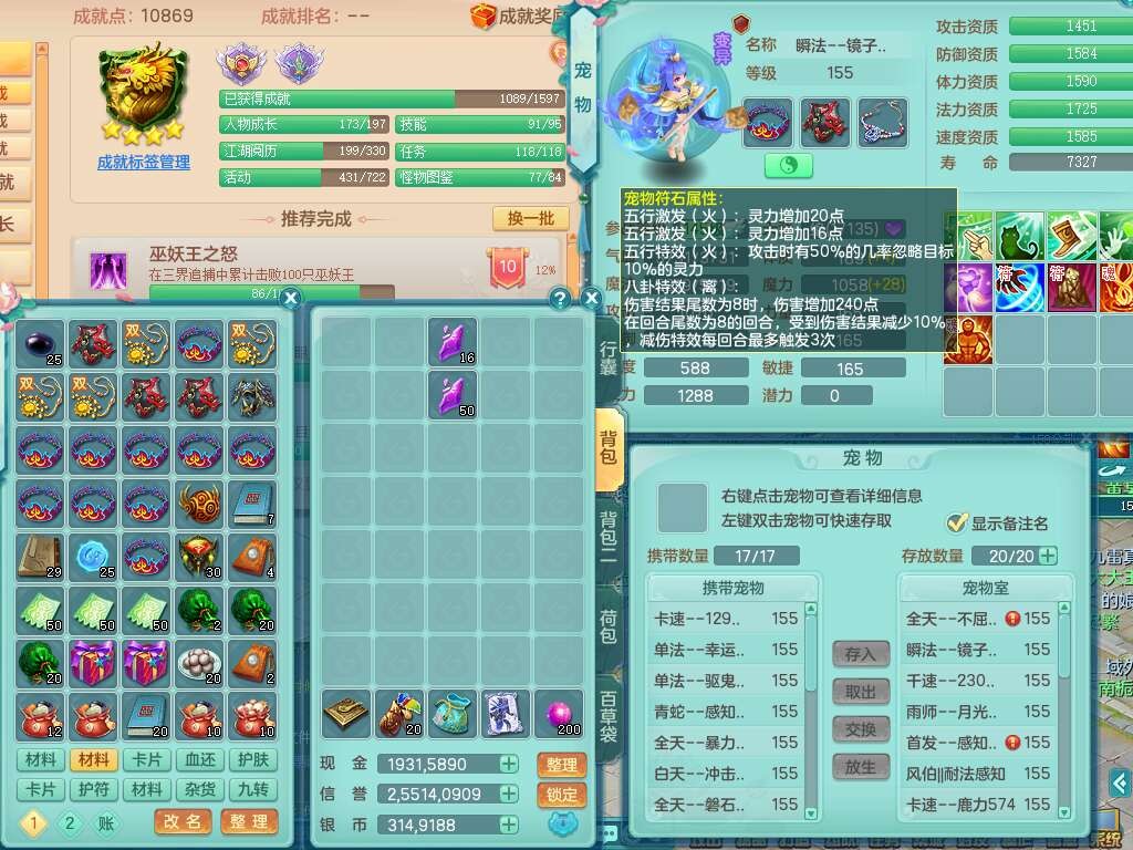 A22014任剑逍遥159女天策,精灵歌,1龙没内,准2内胆神(背包66神兽内丹碎片),2破镜,14只觉醒,8特殊(雷厉,止战,祈雨,坠天,青霜,烈焰,翻江,月光),4只六技能镜花灵,928易成长单加55武器,破血单加衣服,双红神佑蓄力一击单加56腰带,追捕易成长单加50鞋子,5.0基础鼎,15个格子,1个六字,5个五字,24只满果子,宠排在榜,经验修炼在榜,带4422金币,314W银币。