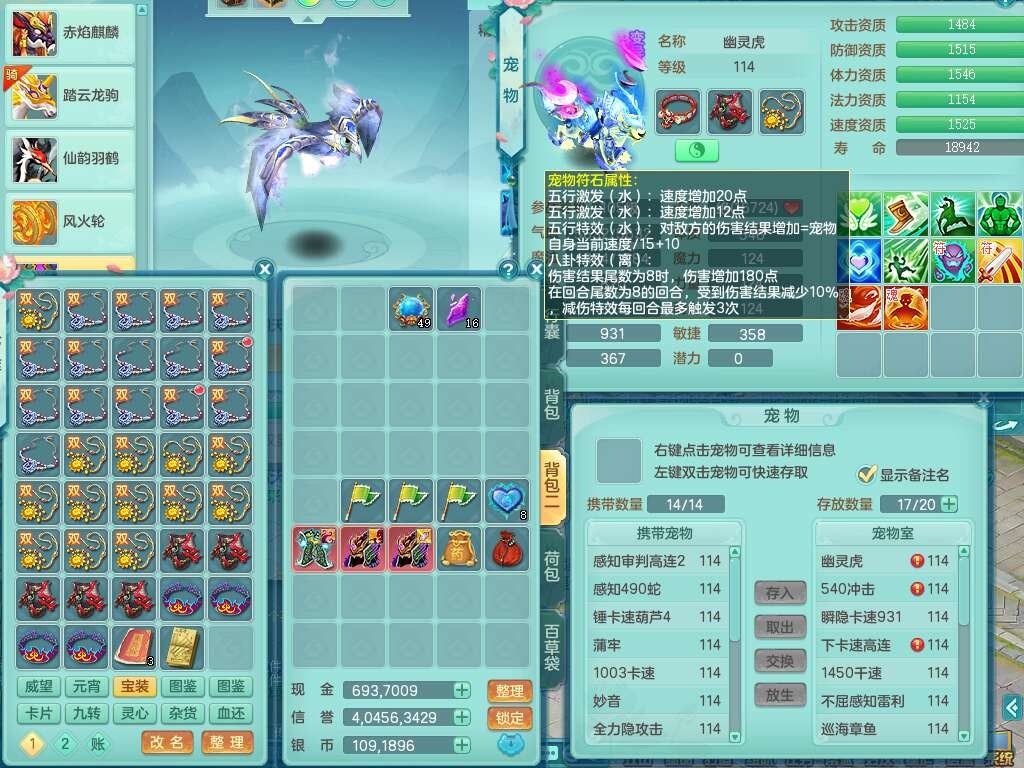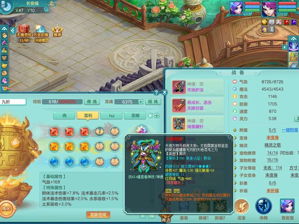 p22006扬名立万109男灵月山,精灵歌,1龙2内胆神,【7只觉醒,已潜龙】,8位靓号,2宠皮,愤怒晶清单加腰带,三红连击易成长四海单加武器,愤怒六特,2.5基础鼎,8个纯六字,20只满果子,宠排在榜,2只双人坐骑,背包49仙兽灵,月卡还有21天。