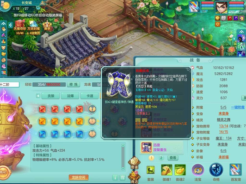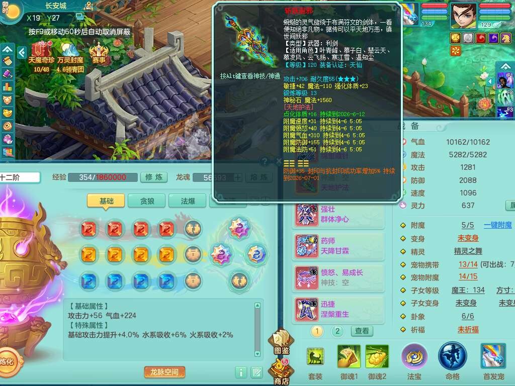 p21993风驰电掣129男方寸,精灵歌+舞,8龙2内胆神,2破镜,【12只觉醒,已潜龙】,3宠皮,4位靓号不含4,愤怒易成长单加41腰带,迅捷慈航单加44鞋子,有物理和法系装备,724必杀单加44武器,神佑单加链子,203易成长蓄力一击单加40项链,4.0基础鼎,14个纯六字,1个五字,25只满果子,仓库还有74个果子,宠排在榜,4个孩子,3个双人坐骑,原始暴龙洪荒,带539万神武币。
