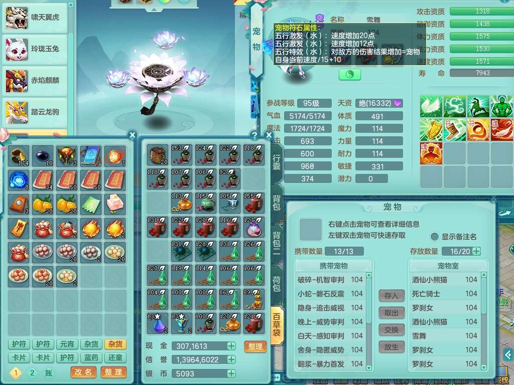 S21982今年勇99男天策,2内胆神,【已潜龙】,2宠皮,8位靓号不带4,554必杀破血武器,崩山衣服,神佑链子,愤怒易腰带,3.0基础鼎,7个纯六字,2个五字,19只满果子,背包51神兽内丹碎片,宠排在榜,5只双人坐骑,月卡还有111天。