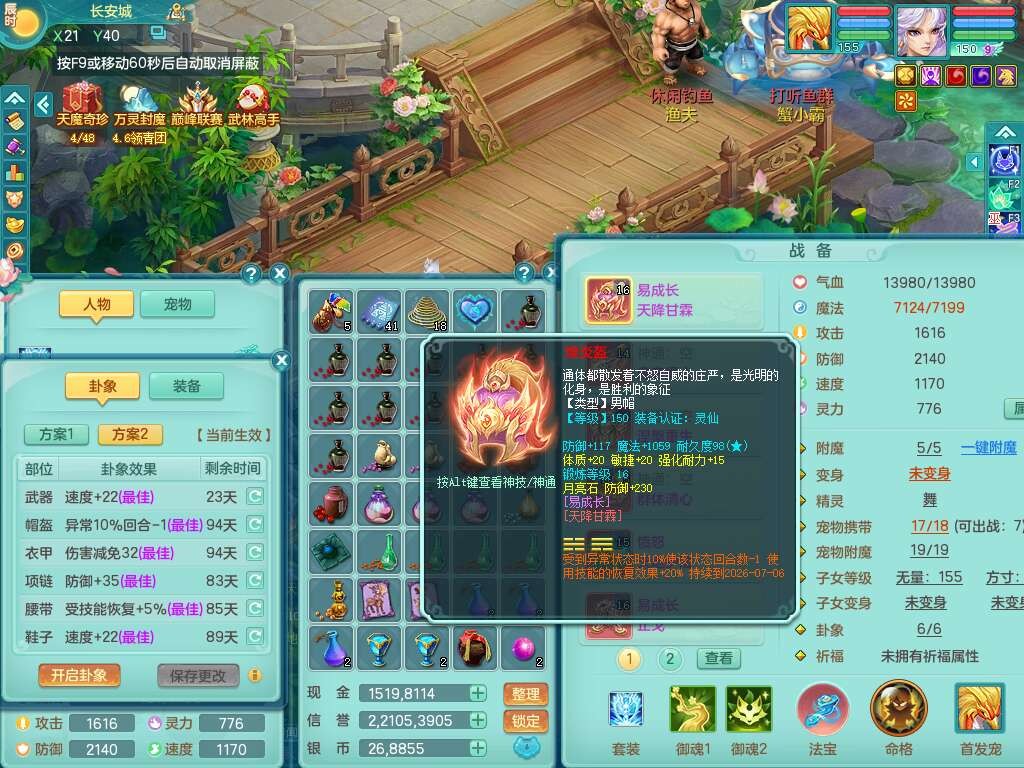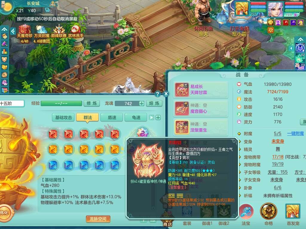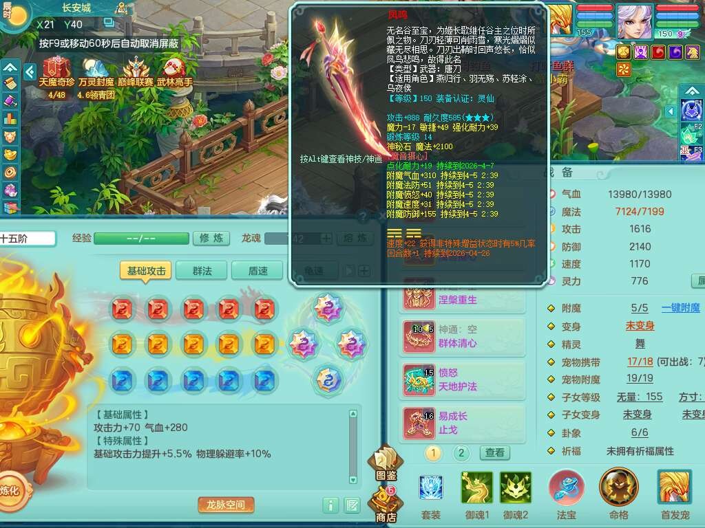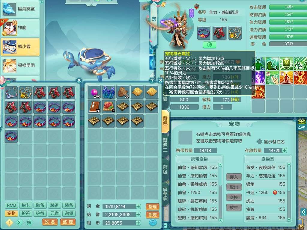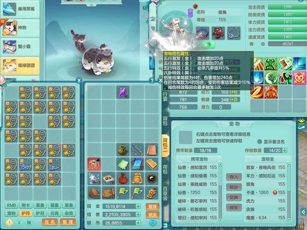 J21979扬名立万159男灵月山,精灵舞,4龙2内胆神,【12只觉醒,已潜龙】,6宠皮,4位靓号不含4,3只六技能镜花灵,2只6技能龙姬,3特殊(墨守,守护,翻江),愤怒六特,5.5基础鼎+70攻、280血,15个格子,11个纯六字,2个五字,23只满果子,宠排在榜,3只坐骑,神驹马到成功+火焰之力,月卡还有179天。带2个159奶粉。
