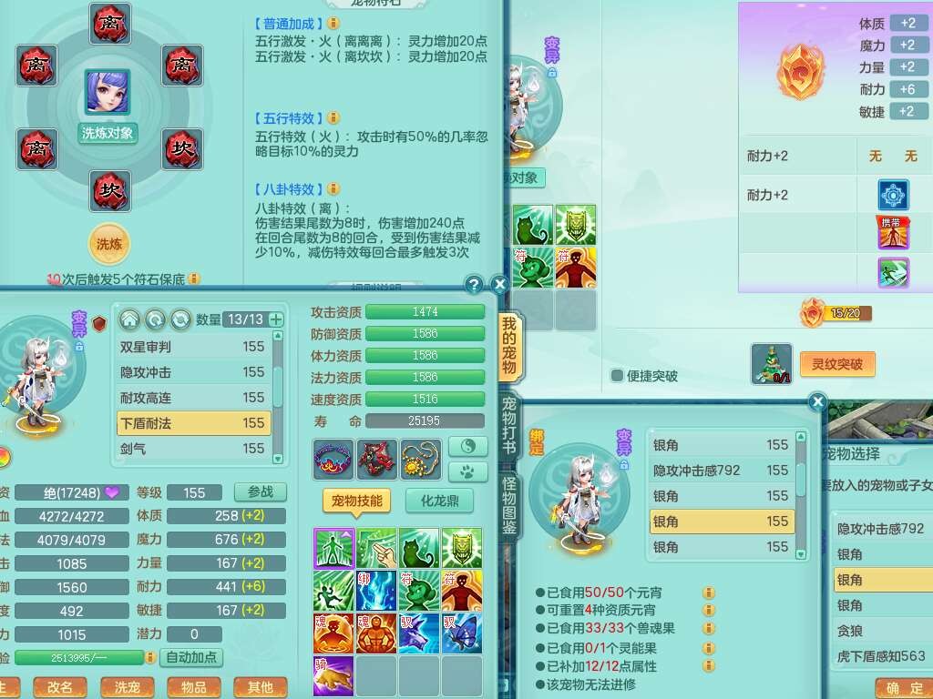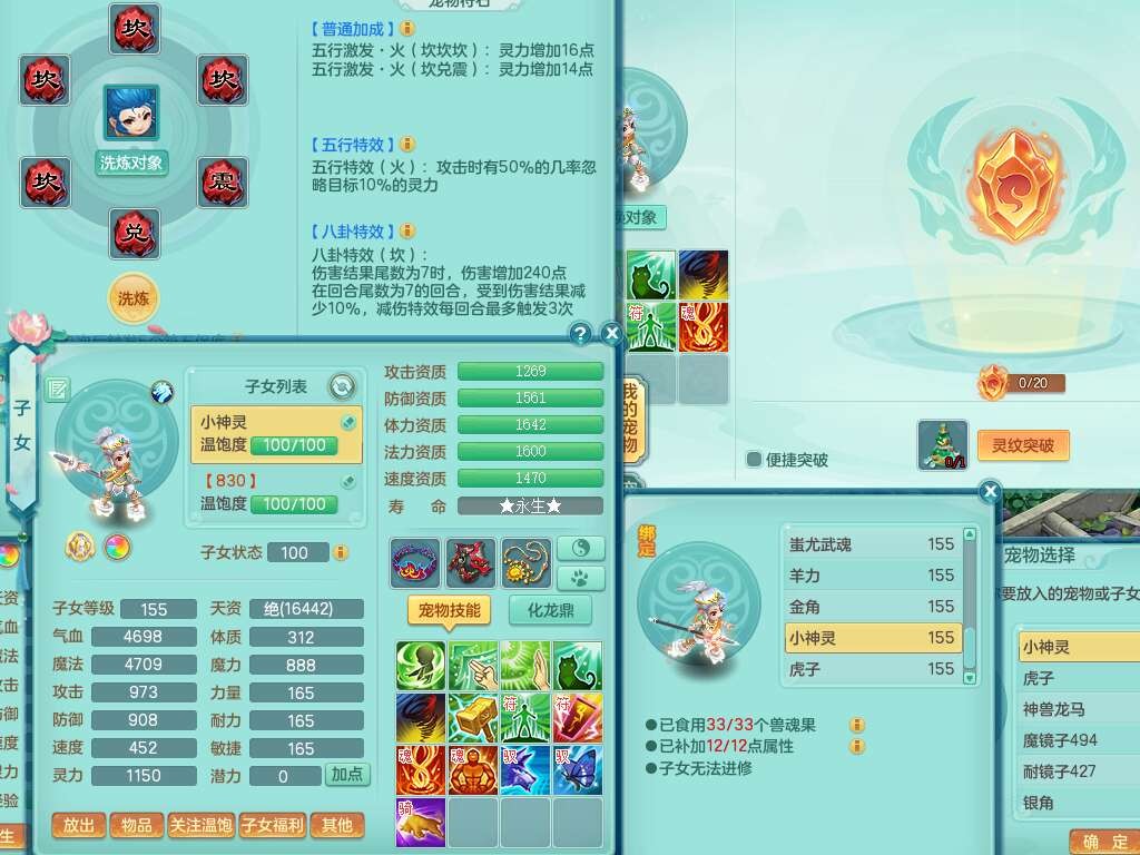 K22270浪淘沙159男无量,精灵歌,1内胆神,7觉醒(准潜龙,宝宝满足,符石只差3个主要,化龙鼎差1个赤炎龙纹,1个厚土龙纹),1宠皮,1特殊(双星),2只六技能镜花灵,双红回春疾速武器,三红幸运8愤怒清心术腰带,六特,有272易成长链子,5.5基础鼎,7个纯六字,2个五字,12只满果子,宠排在榜,双人坐骑,有50个仙兽蛋,41天月卡。