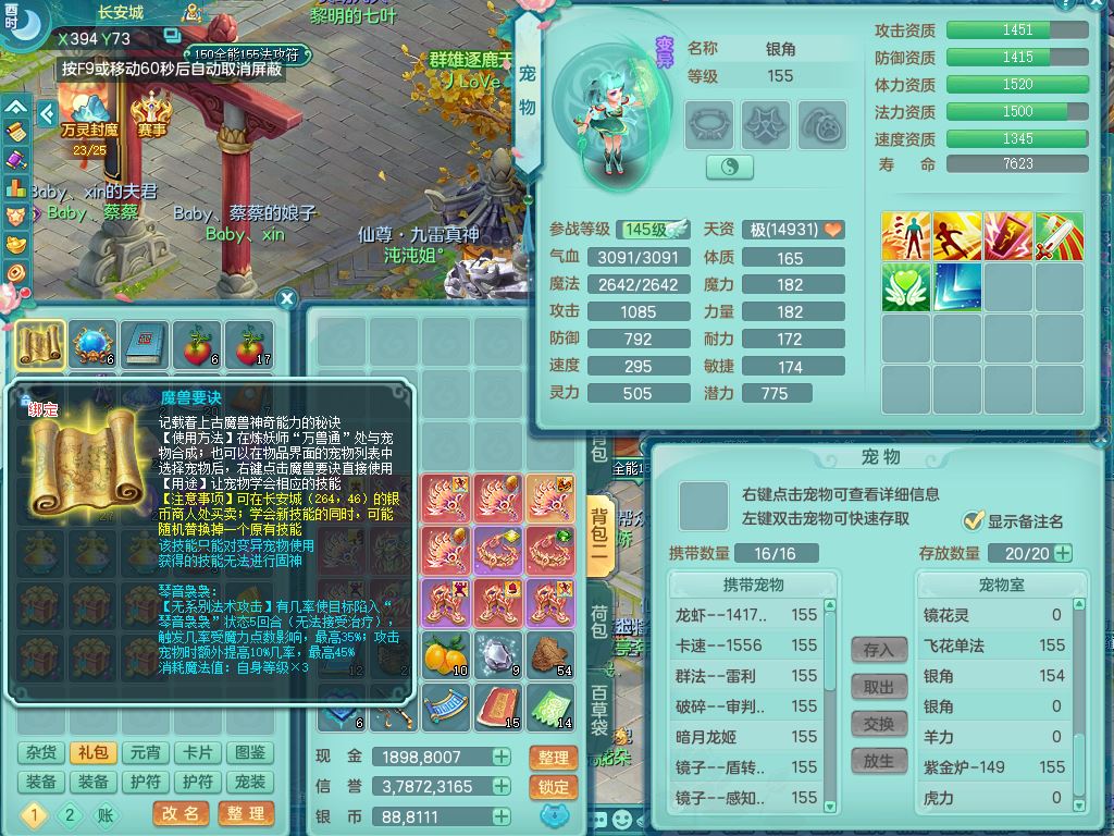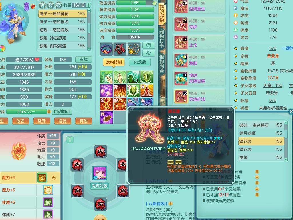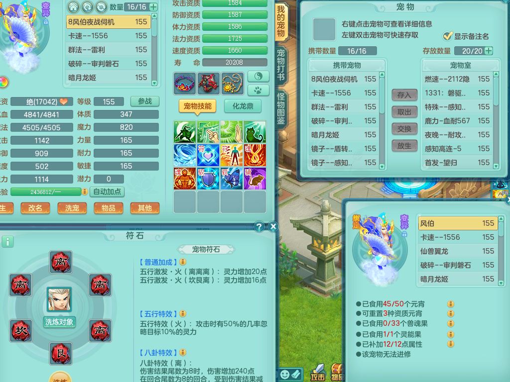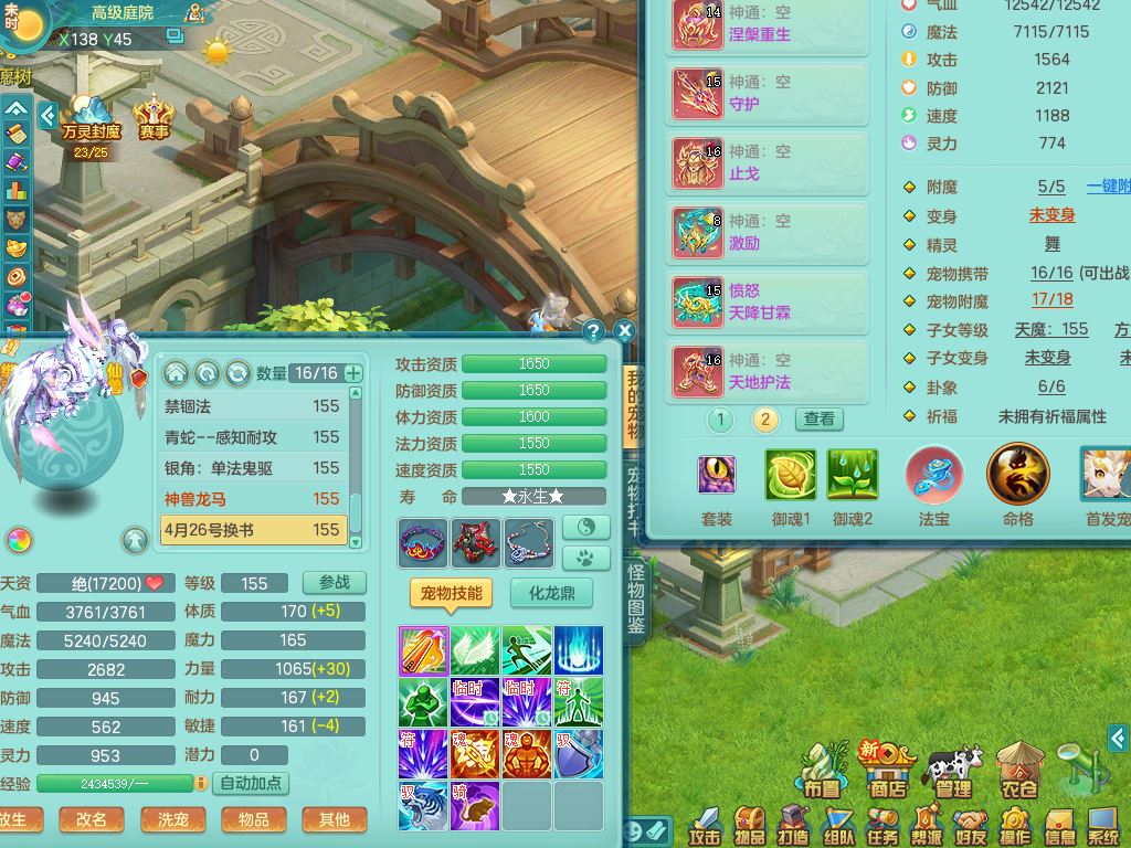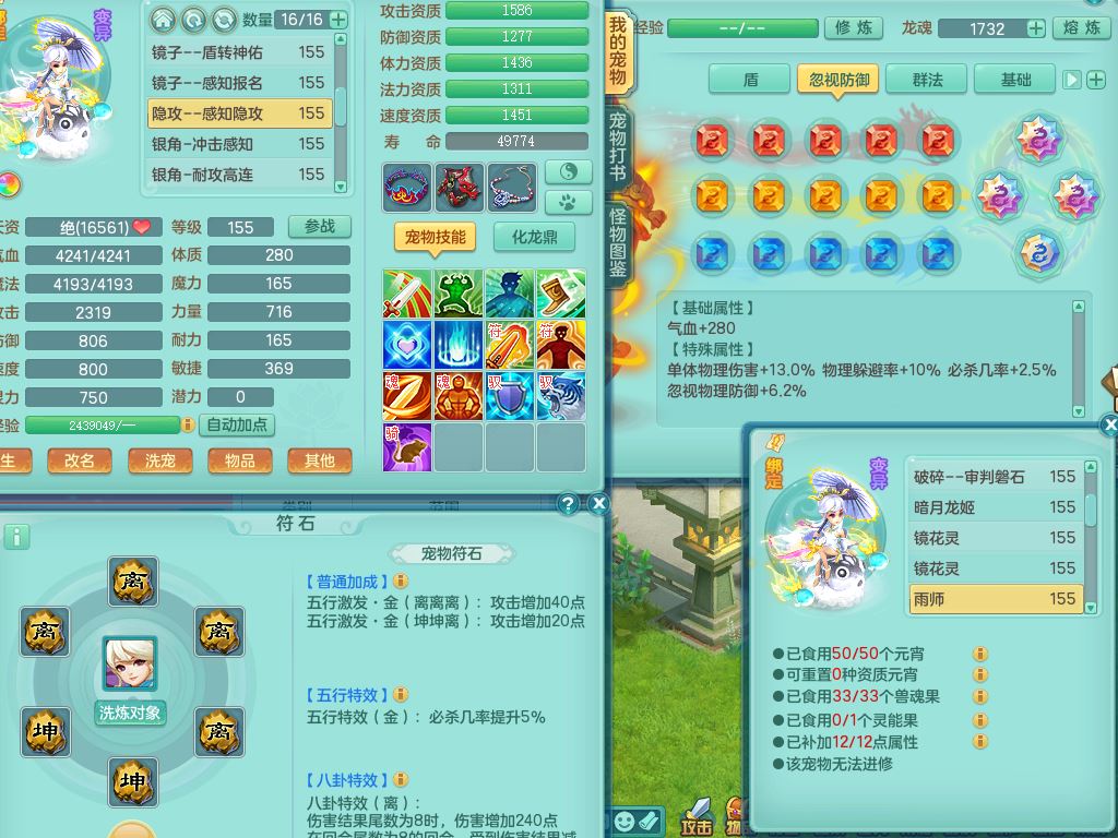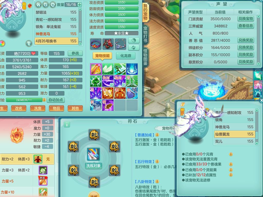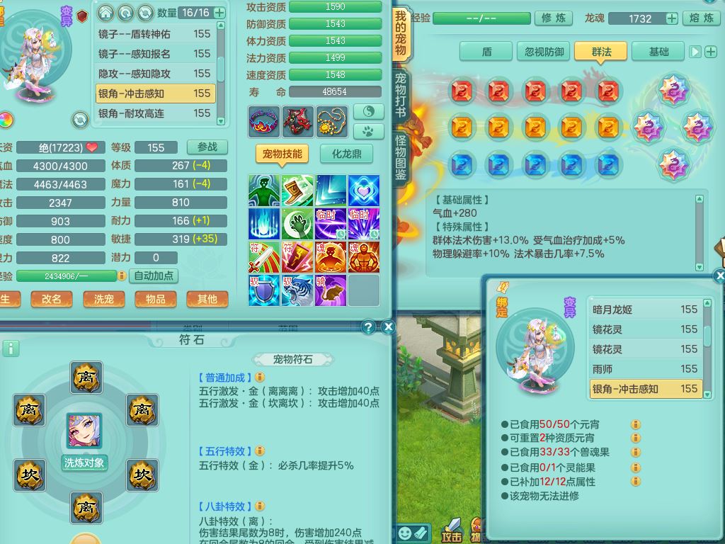 4370任剑逍遥159男普陀【潜龙过半】精灵舞,8字靓号,2内龙(换,1仙兽内丹)3内(1青蛇1龙马)3镜花1望归1特殊(禁锢、善恶,兽决琴音)4宠皮(1幻灵果),8觉醒8六字4五字9四字24只满果子,7红装备,愤怒四海腰带,鼎5.5+70+280,化龙鼎满足潜龙条件,2套符石,庭院163,房屋193,永久外观饰物、精灵皮肤,27内丹碎片,1168金币,3双人坐骑(1飞行)