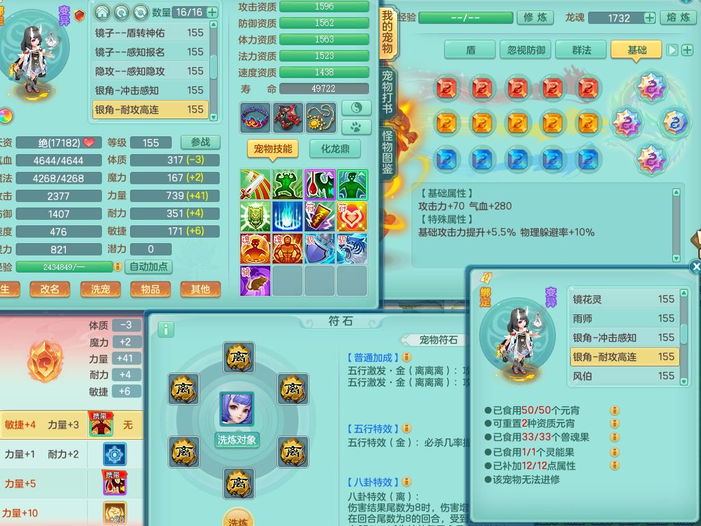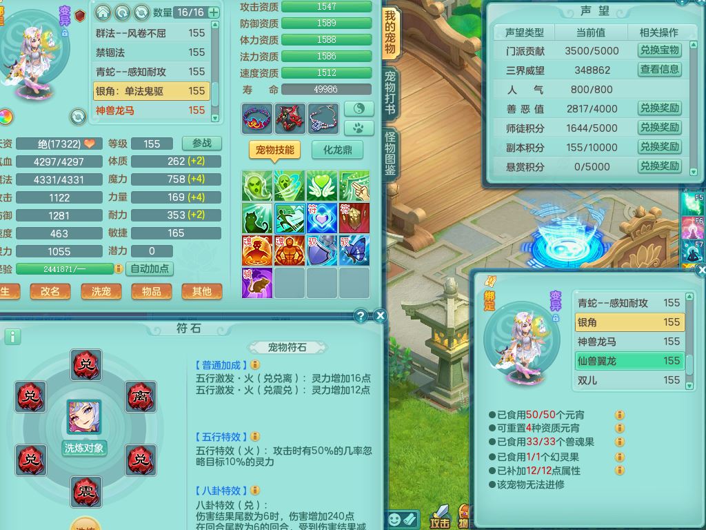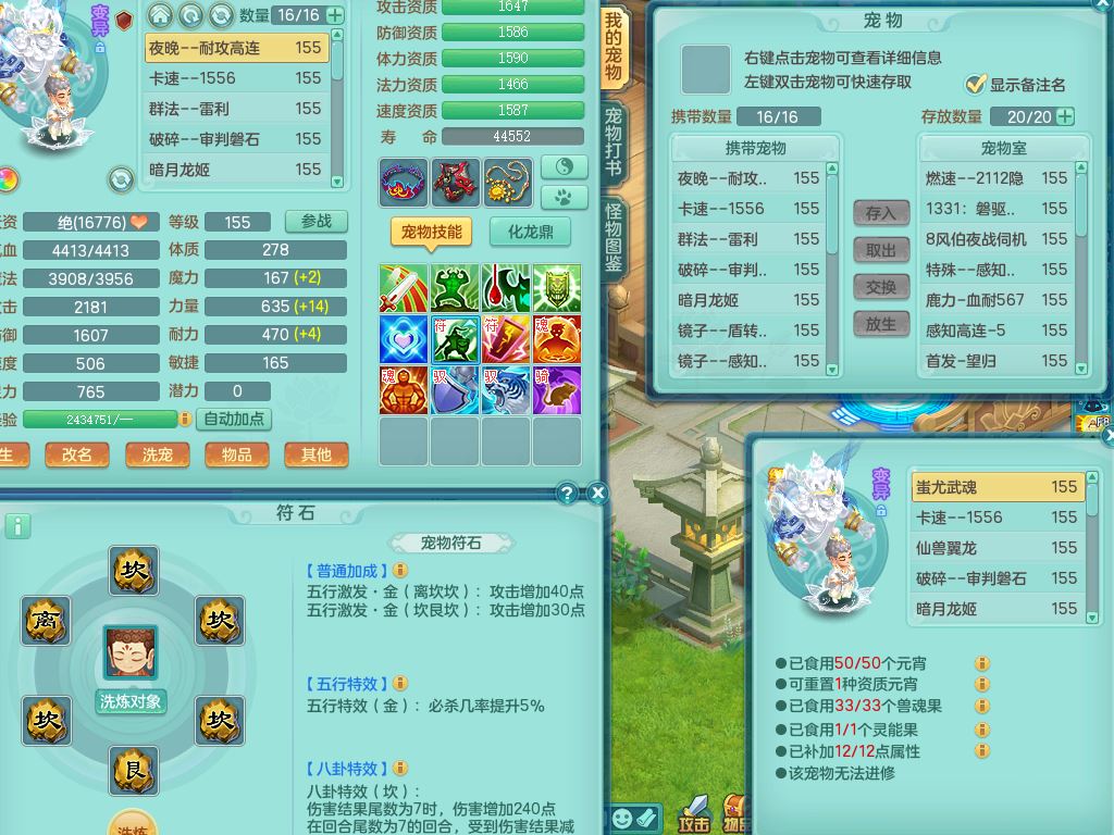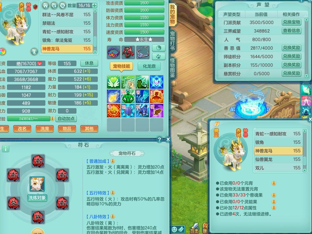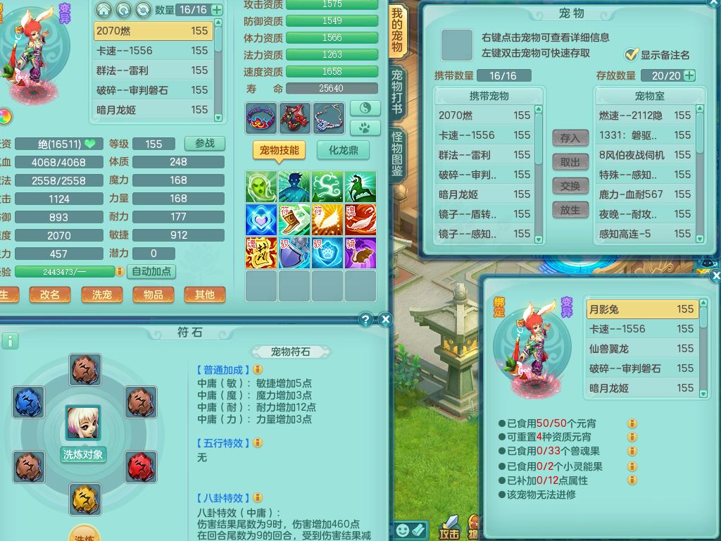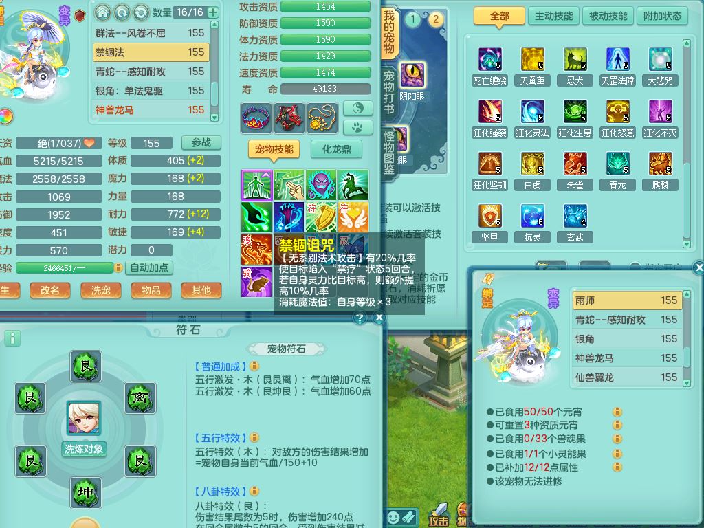4370任剑逍遥159男普陀【潜龙过半】精灵舞,8字靓号,2内龙(换,1仙兽内丹)3内(1青蛇1龙马)3镜花1望归1特殊(禁锢、善恶,兽决琴音)4宠皮(1幻灵果),8觉醒8六字4五字9四字24只满果子,7红装备,愤怒四海腰带,鼎5.5+70+280,化龙鼎满足潜龙条件,2套符石,庭院163,房屋193,永久外观饰物、精灵皮肤,27内丹碎片,1168金币,3双人坐骑(1飞行)