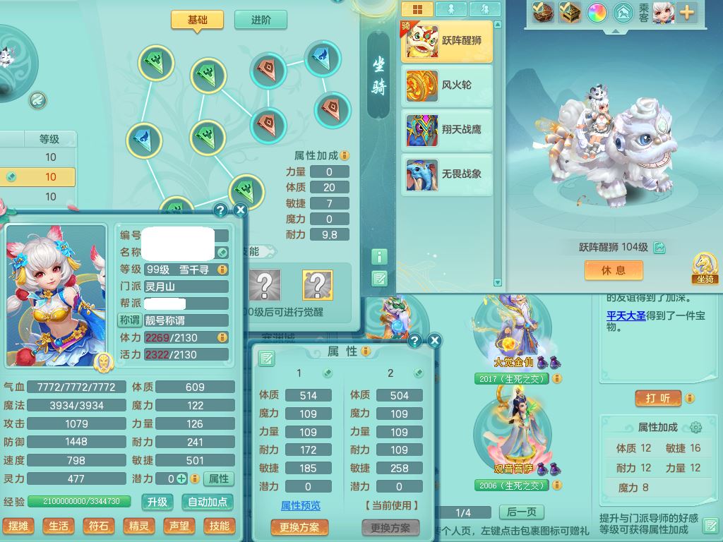 tx10375天下无双99女灵月3系精灵,8字靓号,1内丹青蛇2皮,13只满果子4觉醒11个4字2个5字1个6字,7红,单加五雷头,单加法爆双红武器,155单加Y项链,法缭鞋,鼎2.5,2套符石,庭院156,永久外观精灵皮肤,1045金币,16内丹碎片,双人坐骑