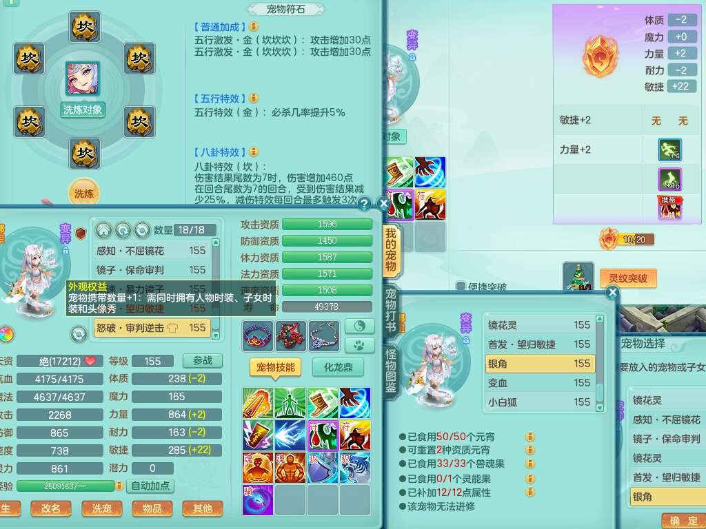 S22275今年勇159女普陀,精灵舞,6内胆龙,准4内胆神(1蛇2马,1神兽龙马+47神兽内胆碎片),3破镜,【9只觉醒,3系潜龙】,1宠皮,4只六技能镜花灵,2只六技能龙姬,3只多技能炼妖,2特殊(怒破,灵傀),愤怒六特,有回春群体守备武器,格挡单加51衣服,物理双破甲,破甲头,破甲五雷单加55鞋子,919易成长野兽单加53武器,崩山衣服、神佑项链全单加,6.0基础鼎+70攻+280血,15永久个格子,10个纯六字,4个五字,25只满果子,仓库还有31个果子,宠排在榜,经验修炼成就在榜,永久称谓,4个孩子,7只坐骑,神驹马上发财+火焰之力,带121天月卡。
