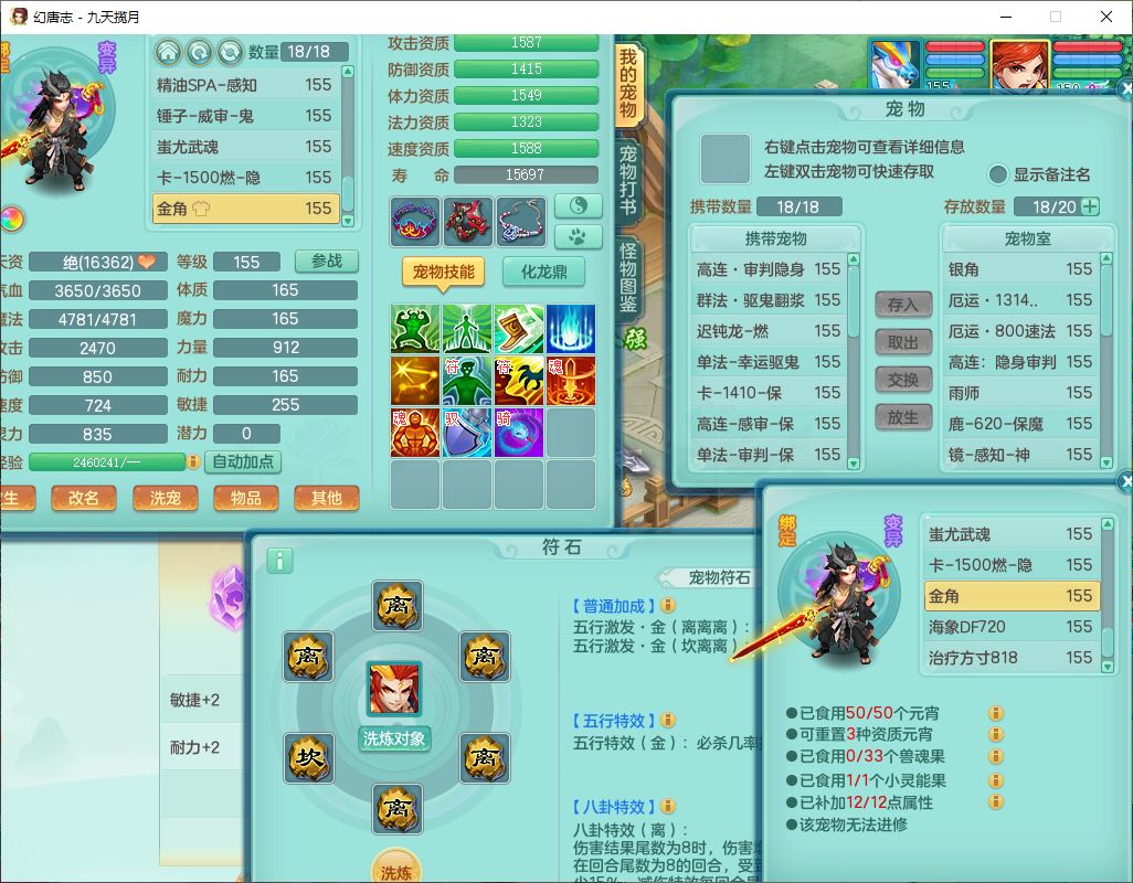 99789九天揽月159男方寸【潜龙号】精灵舞,8位靓号,6龙(1换1破境)2内(1龙马1青蛇,2破境)1望归4镜花1龙姬特殊(上善、流星)1金炉,12觉醒10宠皮(1幻灵果)14六字4五字6四字综合27只满果子,11红星辰之拥装备,封锁四海武器,Y药王玉清项链,愤怒Y腰带,迅捷守护鞋子,一套法系装备,法爆武器,Y四海帽子,266Y项链,五雷鞋子,鼎5.5+70+280,2套符石,75天月卡,永久外观、精灵皮肤,50个内丹碎片,4坐骑(1双人飞行),带159男魔王精灵歌,1觉醒1青蛇(无内)1镜花1龙姬2特殊兽决(焚心、烈焰),9红装备,愤怒五雷腰带,法缭幸运四灵鞋子,18个内丹碎片