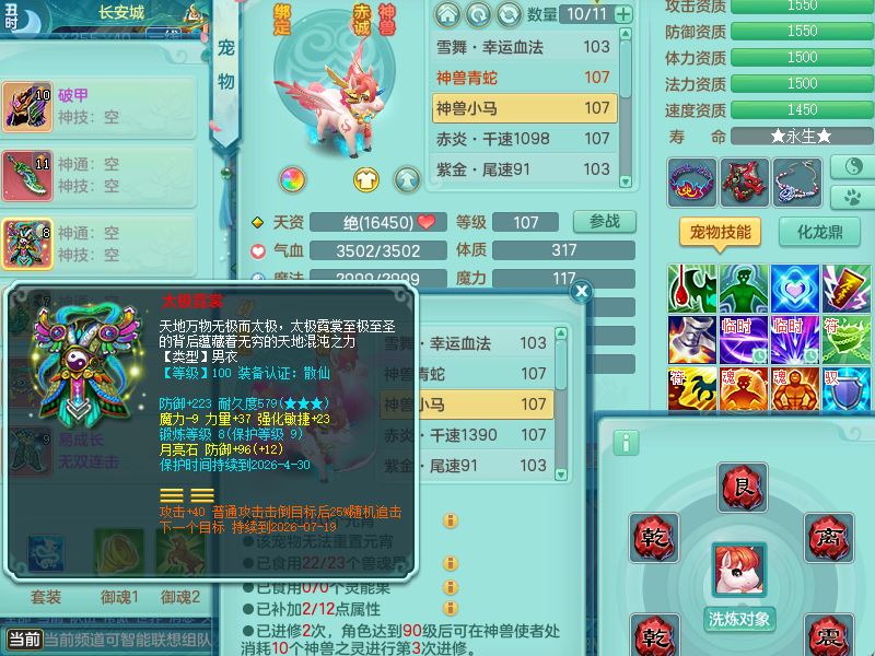 91444,2026区102男天策,泰坦暴龙+马上发财+火焰之力,2内(马+蛇),10高书宝宝,红心6技能飞羽,符石6附加,精灵10级,双孩子,100装备满段武器,破甲头,少年游29天,2满果子,外观拉满,不带双重