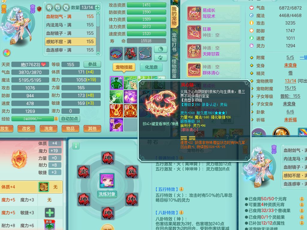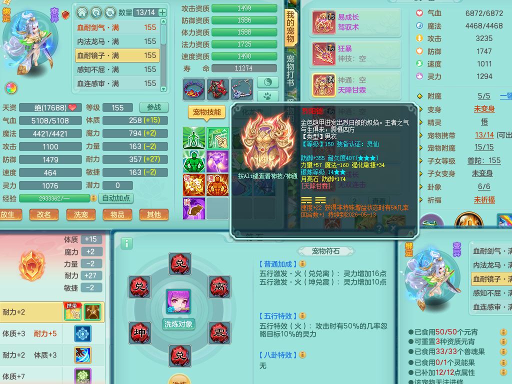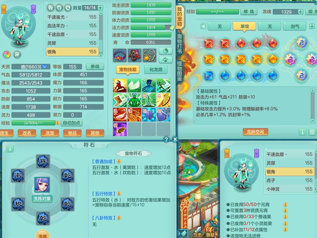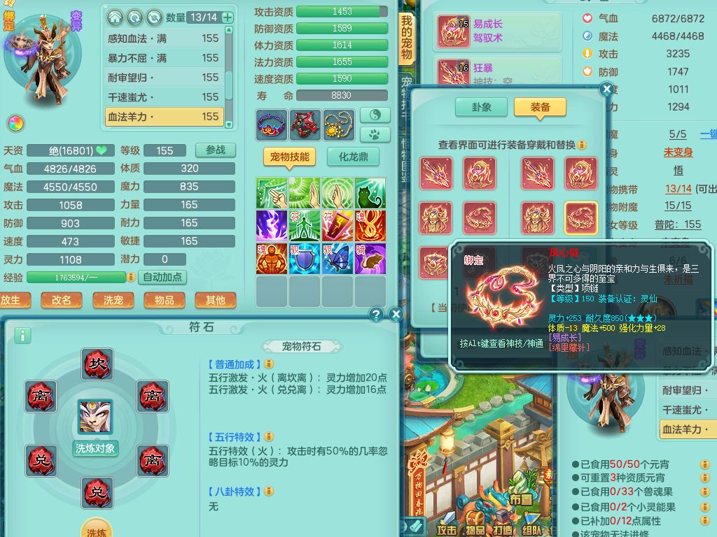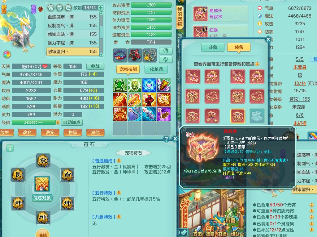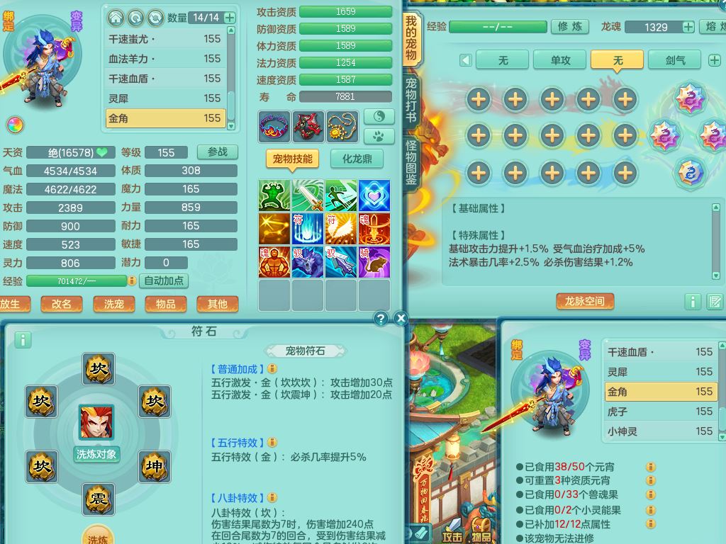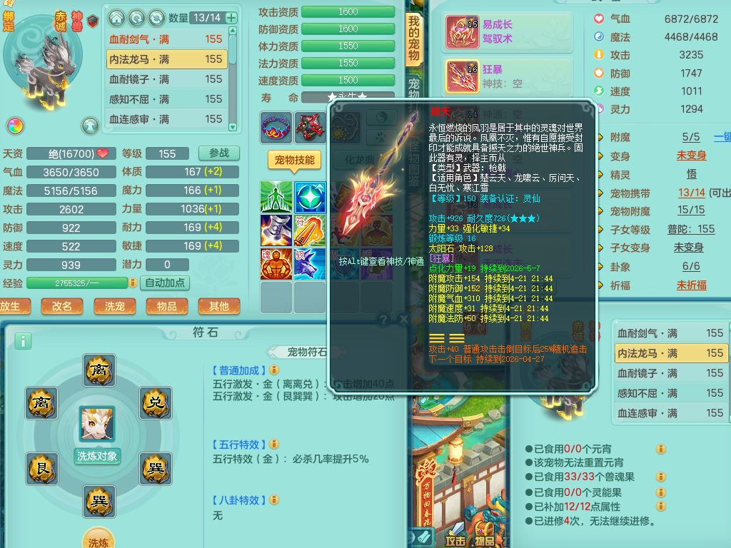 lt10384浪淘沙159男万兽精灵悟,满级共鸣,1内丹龙1内丹龙马2镜花灵,9只满果子1觉醒6个4字,8红,926狂暴武器,Y双红头,单加Y破血鞋,仓库单加回春双红武器,鼎4.5,34天月卡,机械庭院,31内丹碎片,飞行双人坐骑