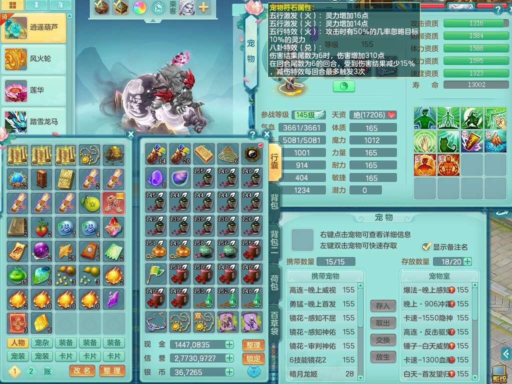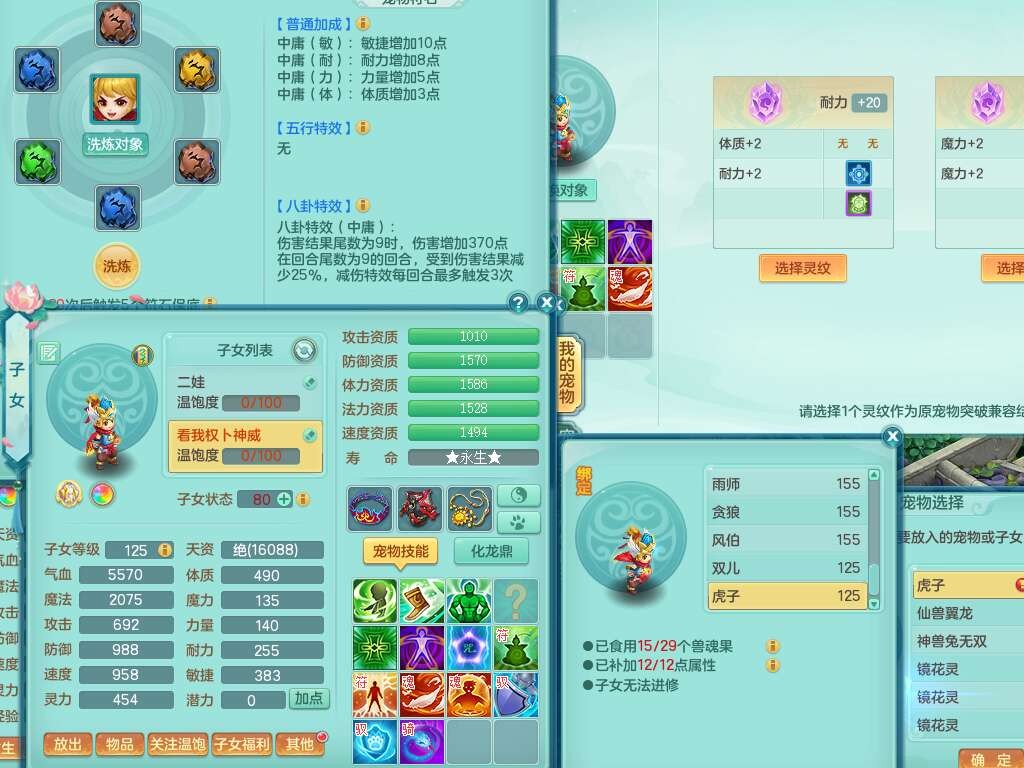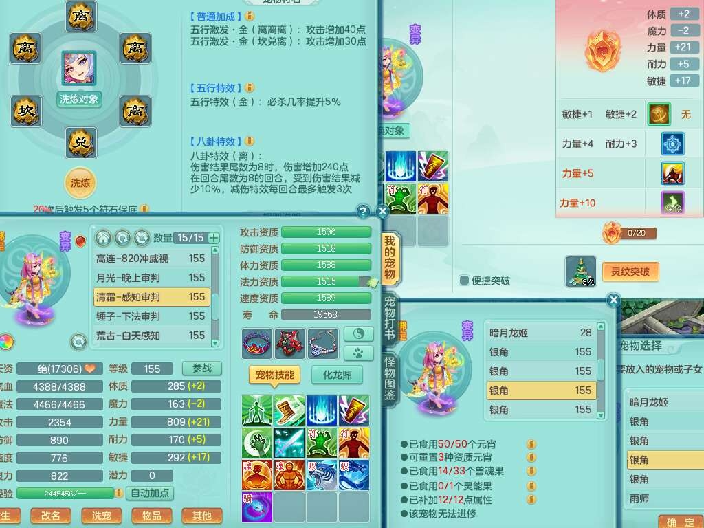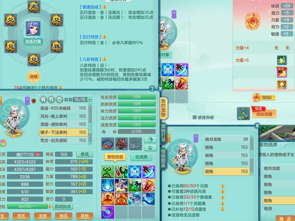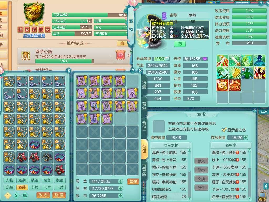 J22294醉生梦死159男万兽,精灵歌,1龙1内胆神,6觉醒,6宠皮,7特殊(夺命,流星,月光,清霜,锤子,荒古,藕断),5只六技能镜花灵,1只六技能龙姬,易成长单加53头,919狂暴单加武器,神佑单加链子,易成长单加50腰带,易成长崩山鞋子,5.0基础鼎,1个纯六字,1个五字,10只满果子,宠排在榜,双人坐骑。