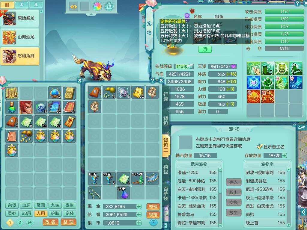 A22283少年游159男灵月山,精灵舞,5龙3内胆神,1神兽龙马+76神兽内丹碎片,7破镜,【23觉醒,已潜龙】,8位靓号不含4,10宠皮,1特殊(登云),3只六技能镜花灵,双红躲避四海衣服,愤怒天地护法腰带,六特,物理装备有易成长单加57头,930易成长单加51武器,崩山单加衣服,易成长真元护法单加57腰带,神佑坚毅项链都有,5.5基础鼎+70攻+280血,14个永久格子,17个纯六字,23只满果子,宠排在榜,双人坐骑,暴龙泰坦+西瓜冰武器,71天月卡。