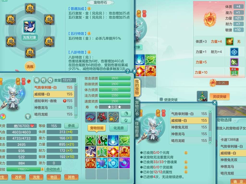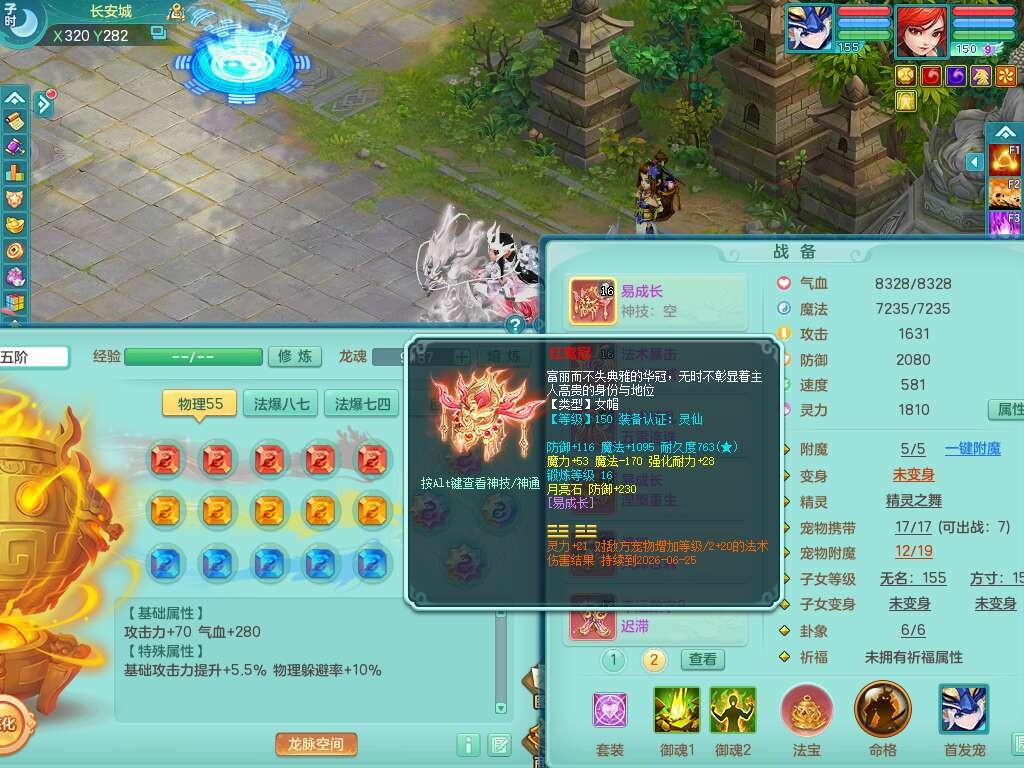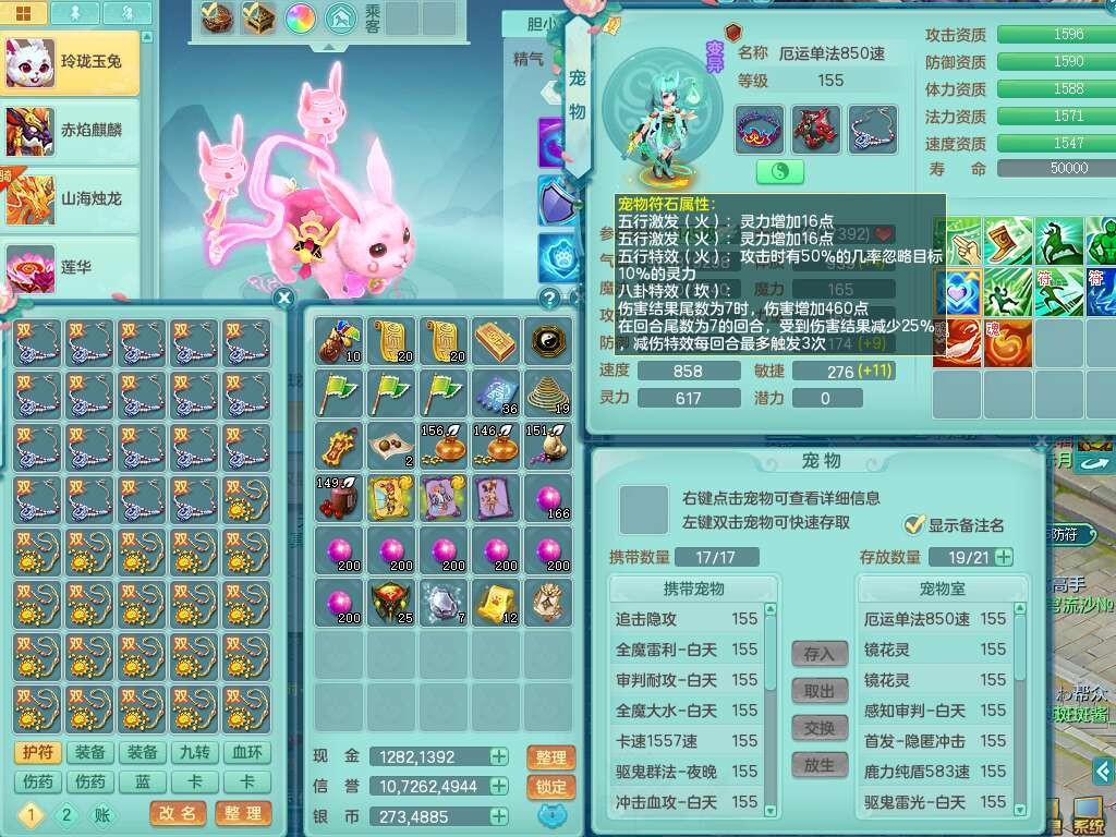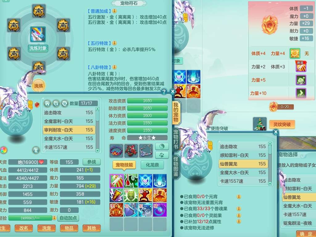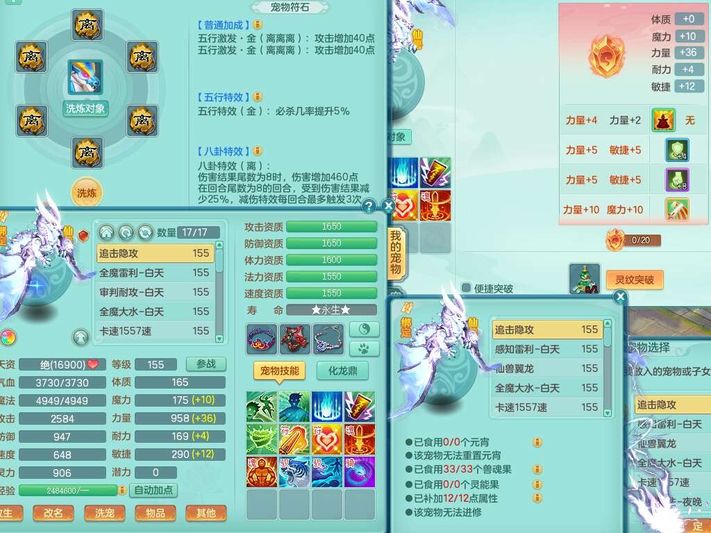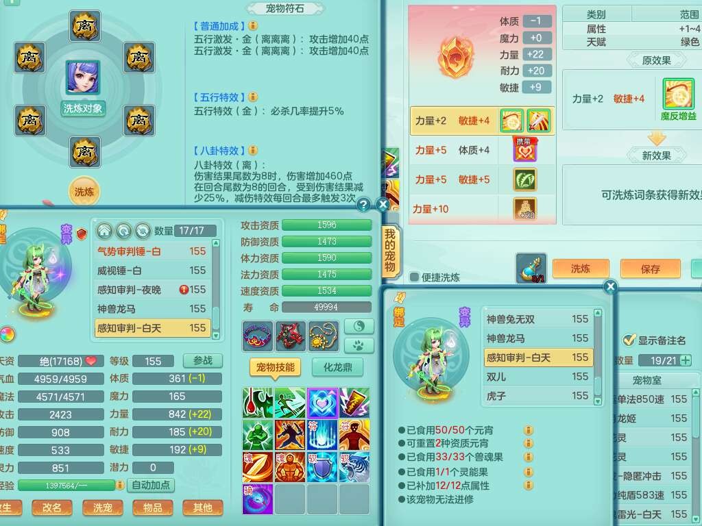S22289风华绝代159女魔王,精灵舞,12龙4内胆神,1破镜,【16只觉醒,已潜龙】,4位靓号不含4,2宠皮,4特殊(夺命,祈雨,藕断,烈焰),2只六技能镜花灵,1只六技能龙姬,法爆烽火武器,法缭五雷衣服,269易成长慈航项链,愤怒四海单加腰带,法系星辰之拥,5.5基础鼎+70攻+280血,物理躲避10%,法爆8.7%,15个永久格子,24个纯六字,1个五字,27只满果子,宠排在榜,永久称谓,4个坐骑,带273万神武币。带157男方寸奶粉,精灵舞。
