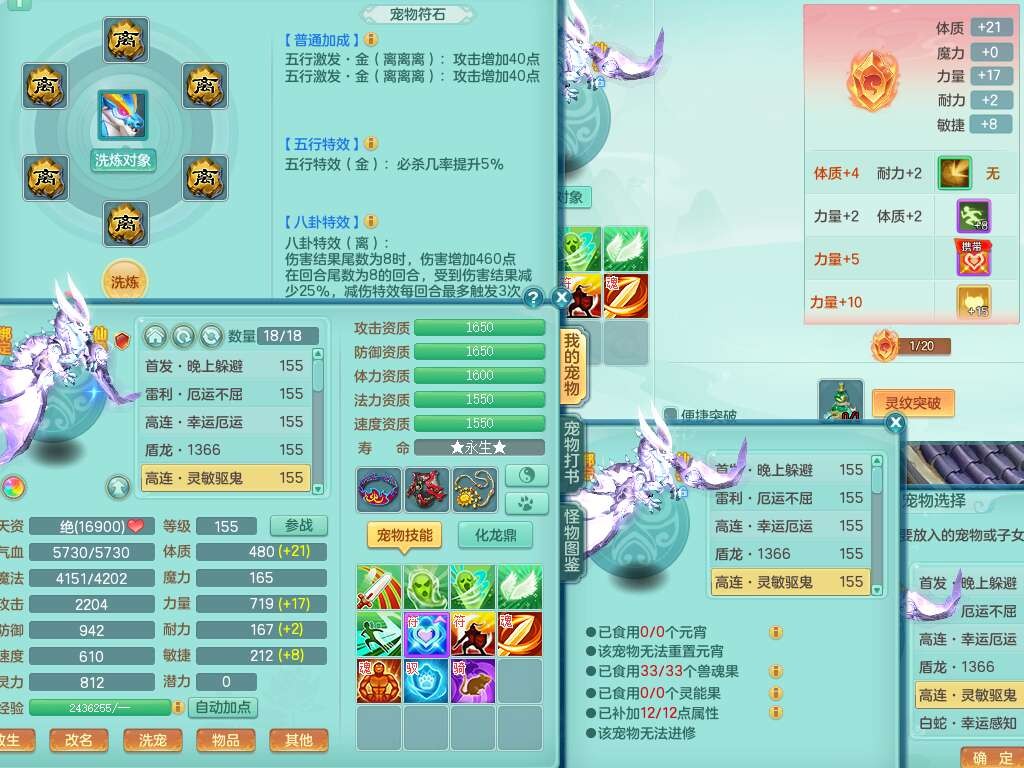 A22288壮志凌云159男方寸,精灵歌,6龙(1龙没内),1龙皮,3内胆神(2马1蛇),1神兽龙马+48神兽内胆碎片,5破镜,【22只觉醒,已潜龙】,4位靓号ABBA,10宠皮,1特殊(灵傀),5只六技能镜花灵,2只六技能龙姬,法爆回气术单加52武器,易成长四灵决单加57衣服,270易成长单加52项链,愤怒归气诀单加54腰带,五雷单加55头,法缭单加56鞋子,可双法缭,背包有法缭单加衣服,强化防御五雷单加55衣服,易成长四海单加54衣服,物理双破甲,破甲晶清单加50鞋子,918易成长单加55武器,930必杀武器,930必杀四海武器,崩山单加衣服,坚毅单加51项链,神佑单加50项链,易成长破血单加55头,幸运6崩山单加52鞋子,物法辅都可玩,两套潜龙符石,装备爆炸,6.0基础鼎+70攻+280血,8.7法爆,15个永久格子,19个纯六字,30只+满果子,仓库还有95个果子,宠排在榜,经验修炼在榜,永久称谓,7个坐骑,暴龙泰坦+神驹心想事成+马到成功+马上发财+红红火火+西瓜冰武器皮肤+火焰之力武器皮肤,超多库存,冰晶庭院,带142天月卡,6800金币。