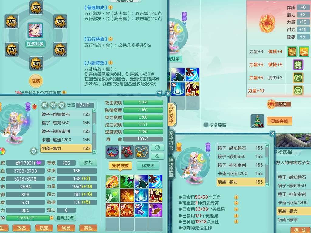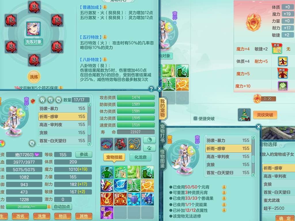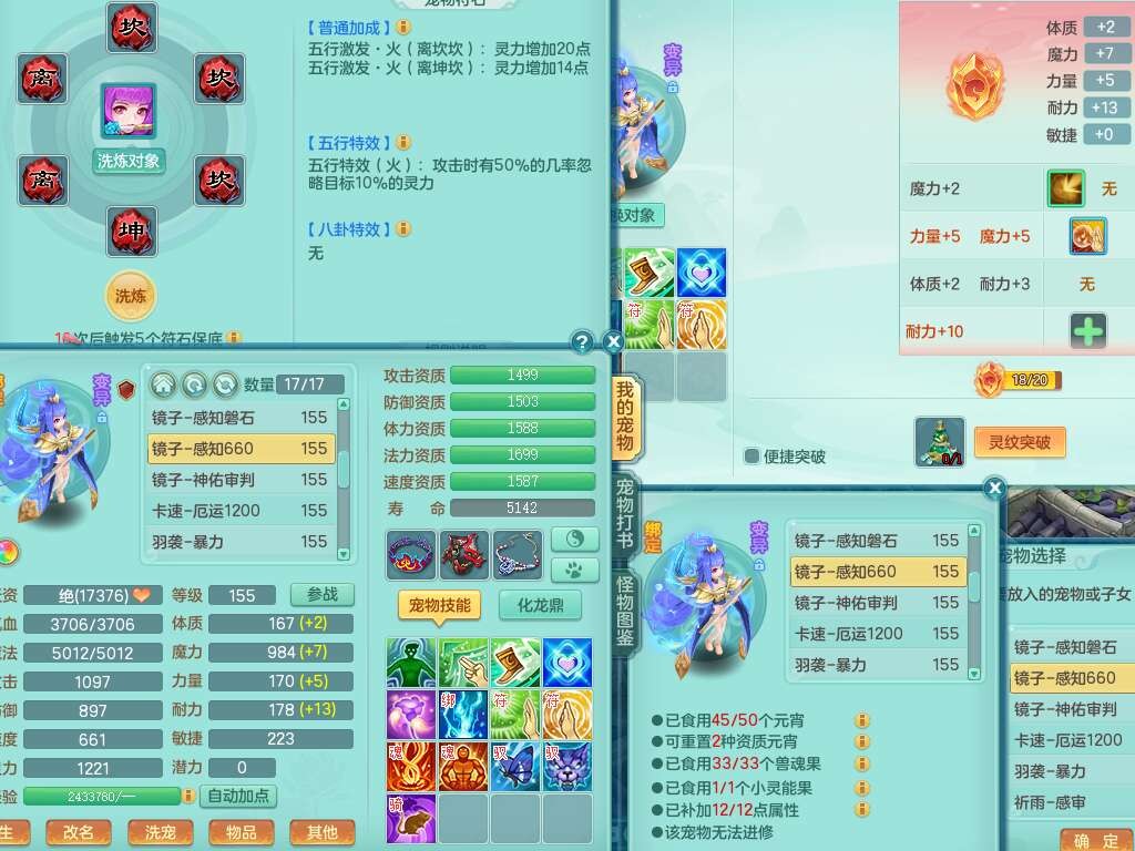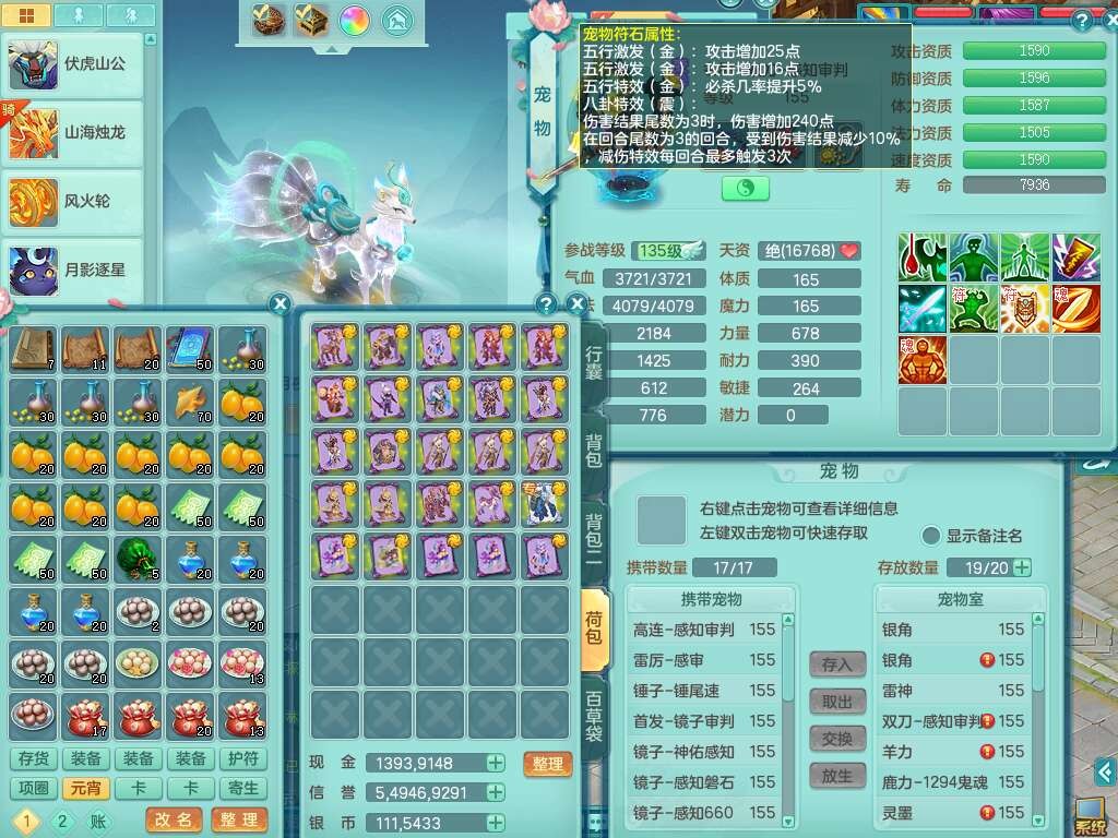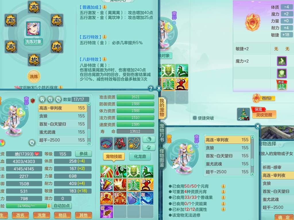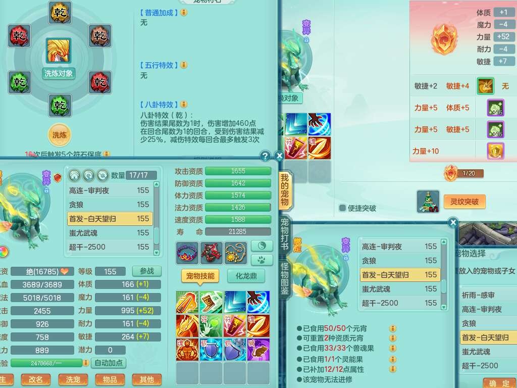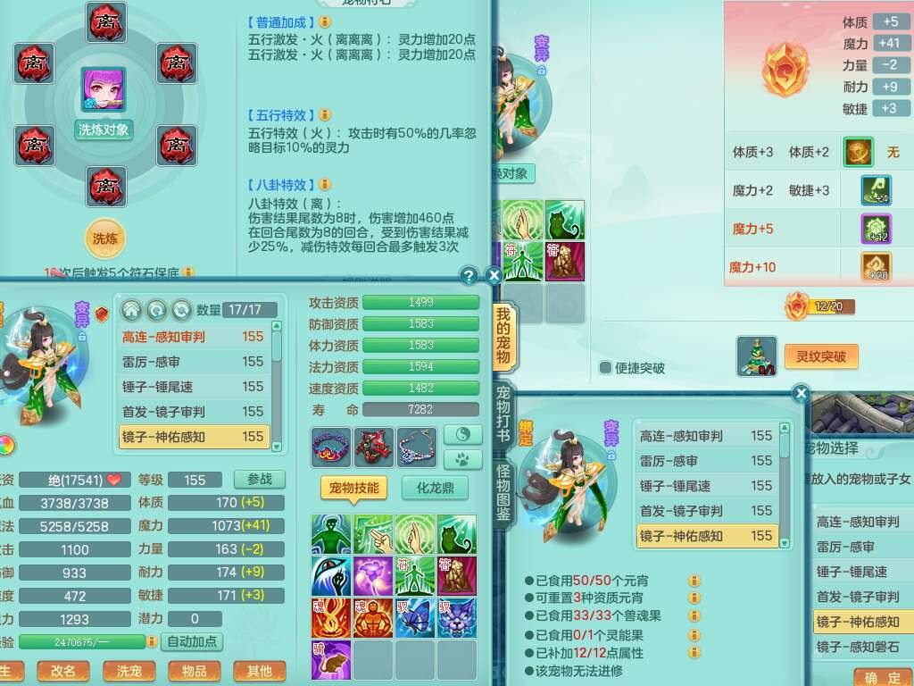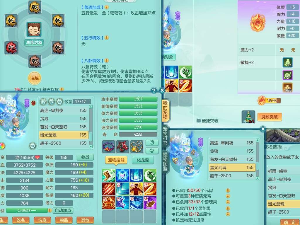 A22285风驰电掣159男盘丝,精灵舞,2龙1内胆神,1神兽+56个神兽内丹碎片,【9觉醒,已潜龙】,4位靓号,6宠皮,3特殊(羽袭,祈雨,号角),5只六技能镜花灵,1只六技能龙姬,双红封印精通群体安神头,双红奇珍四海单加50武器,三红愤怒易成长笑里单加腰带,迅捷群体守护单加鞋子,六特,法系装备有法暴单加53武器,265易成长单加51链子,法缭衣服,物理装备有,921易成长单加54武器,崩山衣服,易成长单价57头,神佑神佑坚毅项链都有,5.0基础鼎+70攻+280血,15个永久格子,7个纯六字,23只满果子,宠排在榜,经验在榜,双人坐骑,冰晶庭院,有70天月卡。