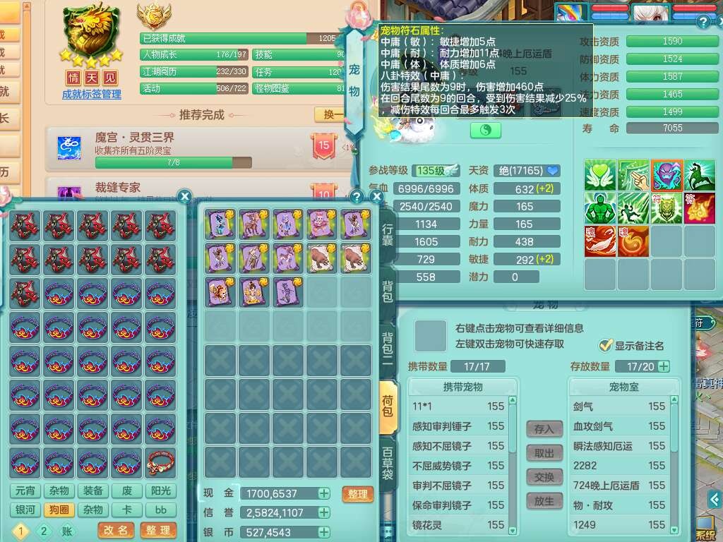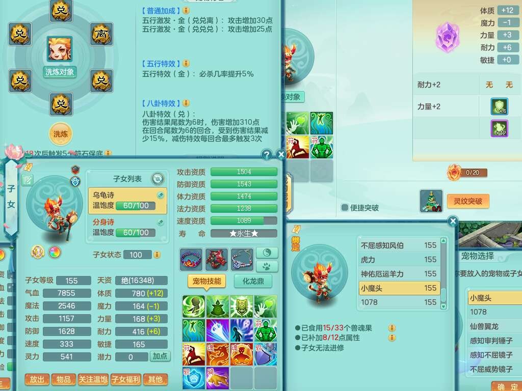 a22282普天同庆159女灵月山,精灵舞,1龙没内,1内胆神,【12觉醒,已潜龙】,4特殊(月光,枪出,雷厉,怒破),5只六技能镜花灵,1只六技能龙姬,愤怒四海单加腰带,迅捷单加54鞋子,五特,物理装备有916易成长单加52武器,,破甲皮敏式单加56头,崩山衣服,坚毅止戈链子,易成长震怒腰带,5.5基础鼎+70攻+280血,15个永久格子,13个纯六字,2个五字,18只满果子,仓库还有40个果子,宠排在榜,经验成就在榜,3个孩子,有34个神兽内丹碎片。➕157女魔王奶粉,1神兽,1只六技能镜花灵,1只六技能龙姬。