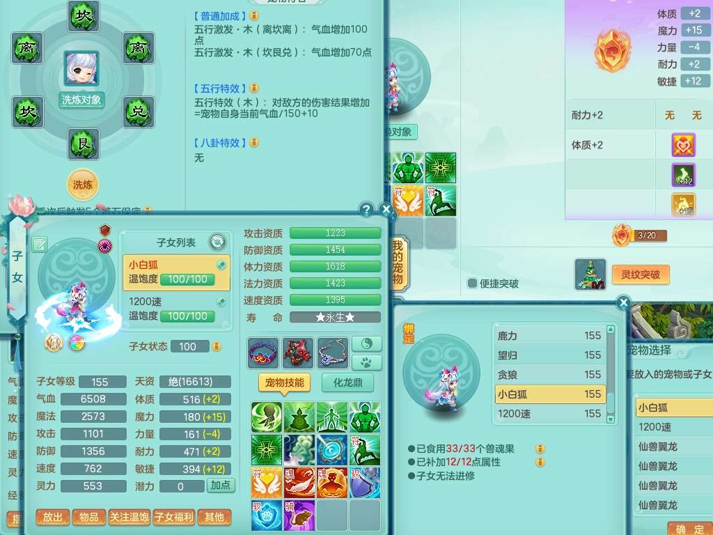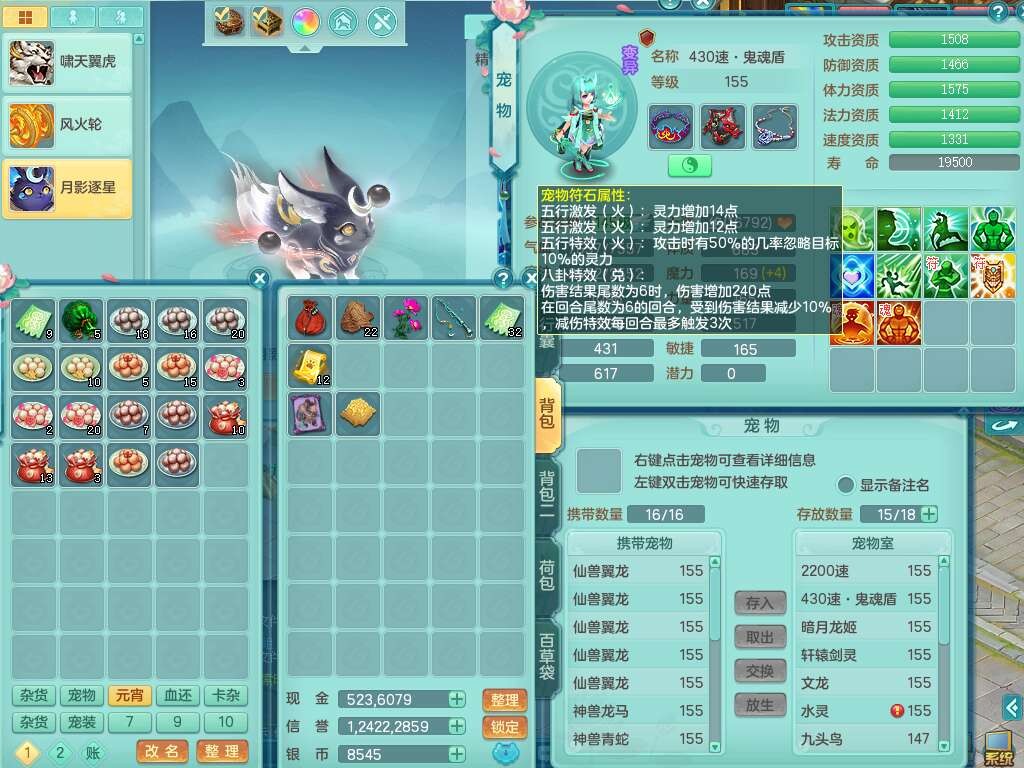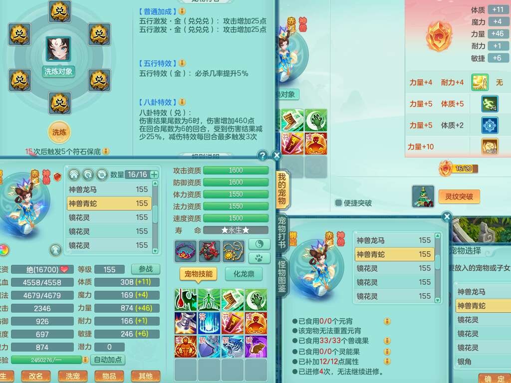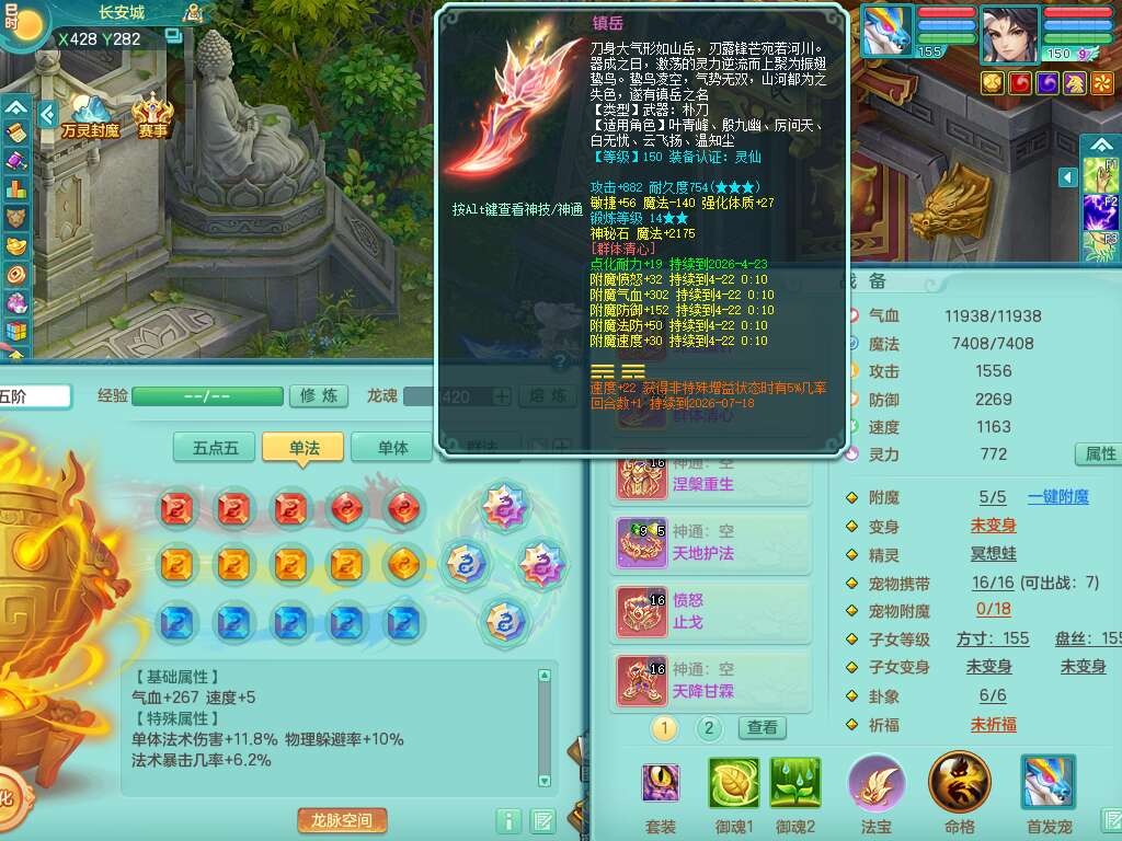 a22280少年游159男普陀,精灵舞,5龙1龙皮(1龙没内),2内胆神,1破镜,12只觉醒(准潜龙,宝宝满足,符石差3个主要,1个87魔法,化龙鼎差1个厚土龙纹),4位靓号不含4,2宠皮,2特殊(翻江,月光),3只六技能镜花灵,愤怒止戈单加腰带,六特,有三红匠心连击四海武器,5.5基础鼎+70攻,14个永久格子,7个纯六字,1个五字,17只满果子,宠排在榜,双人老虎,带29992金币,116天月卡。